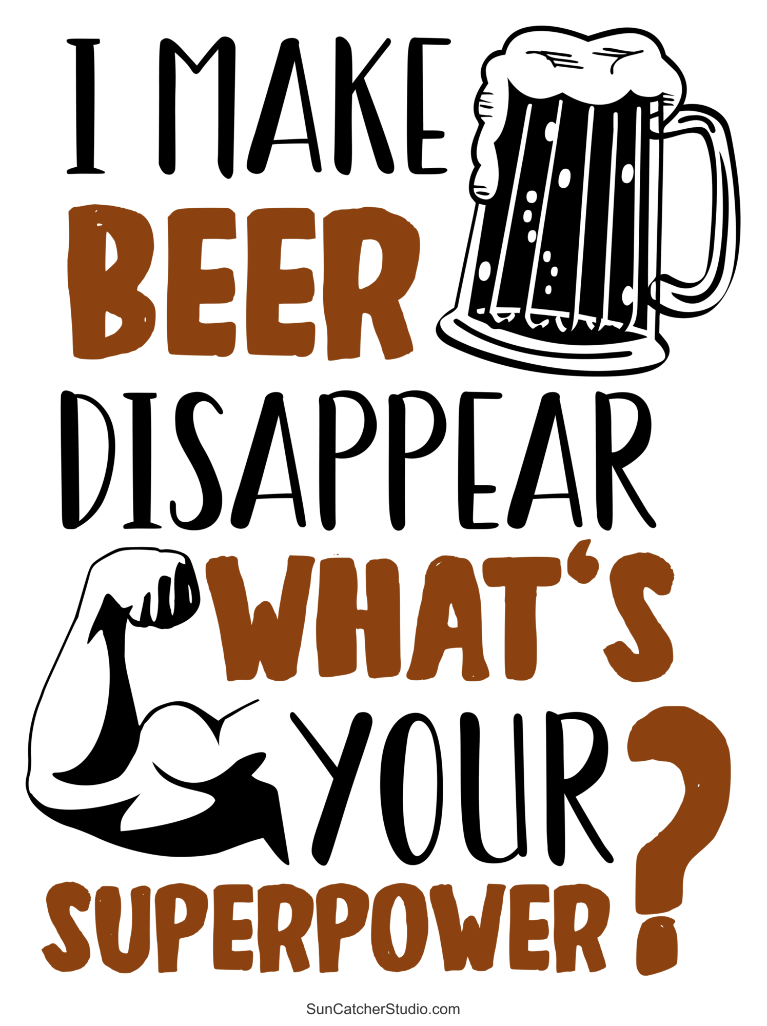 Use these short, funny, printable beer quotes, SVG files, beer sayings, and Cricut designs on shirts, cups, wall decorations, wall art, wall paintings, décor, and for crafts and DIY projects. Some of these designs (e.g., Irish I had another beer) are great for Saint Patrick’s Day.
