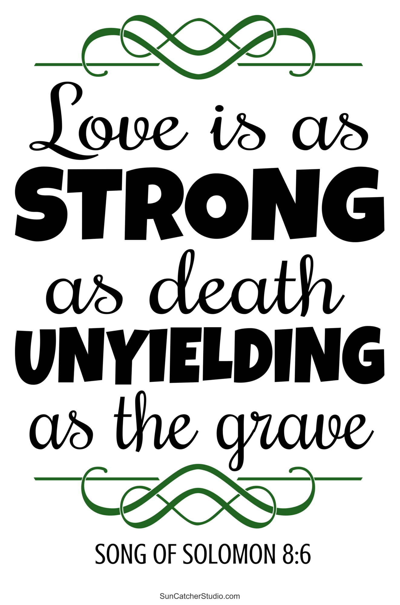 Free printable bundle of Bible verses about LOVE, scripture passages, designs, SVG cutting files for crafters and DIY projects. Use these short Bible quotes for patterns, templates, stencils, clip art, vinyl cutting, screen printing, embroidery, and cutting machines. For more ideas see bible verse designs or all svg cutting designs.