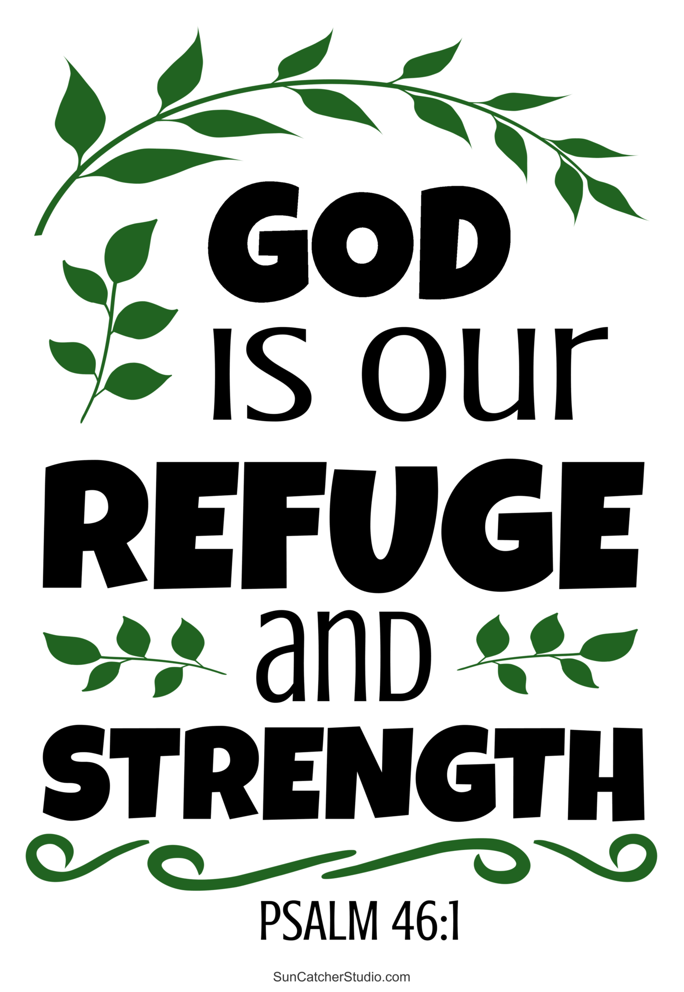 Psalm 46:1. God is our refuge and strength. Free, printable, Bible verse, Bible quote, Christian, faith, religious, scripture verse, passages, Cricut design, clip art, svg file, template, pattern, stencil, silhouette, cut file, design, vector, shirt, cup, DIY crafts and projects, embroidery, pdf, vector, print, download.