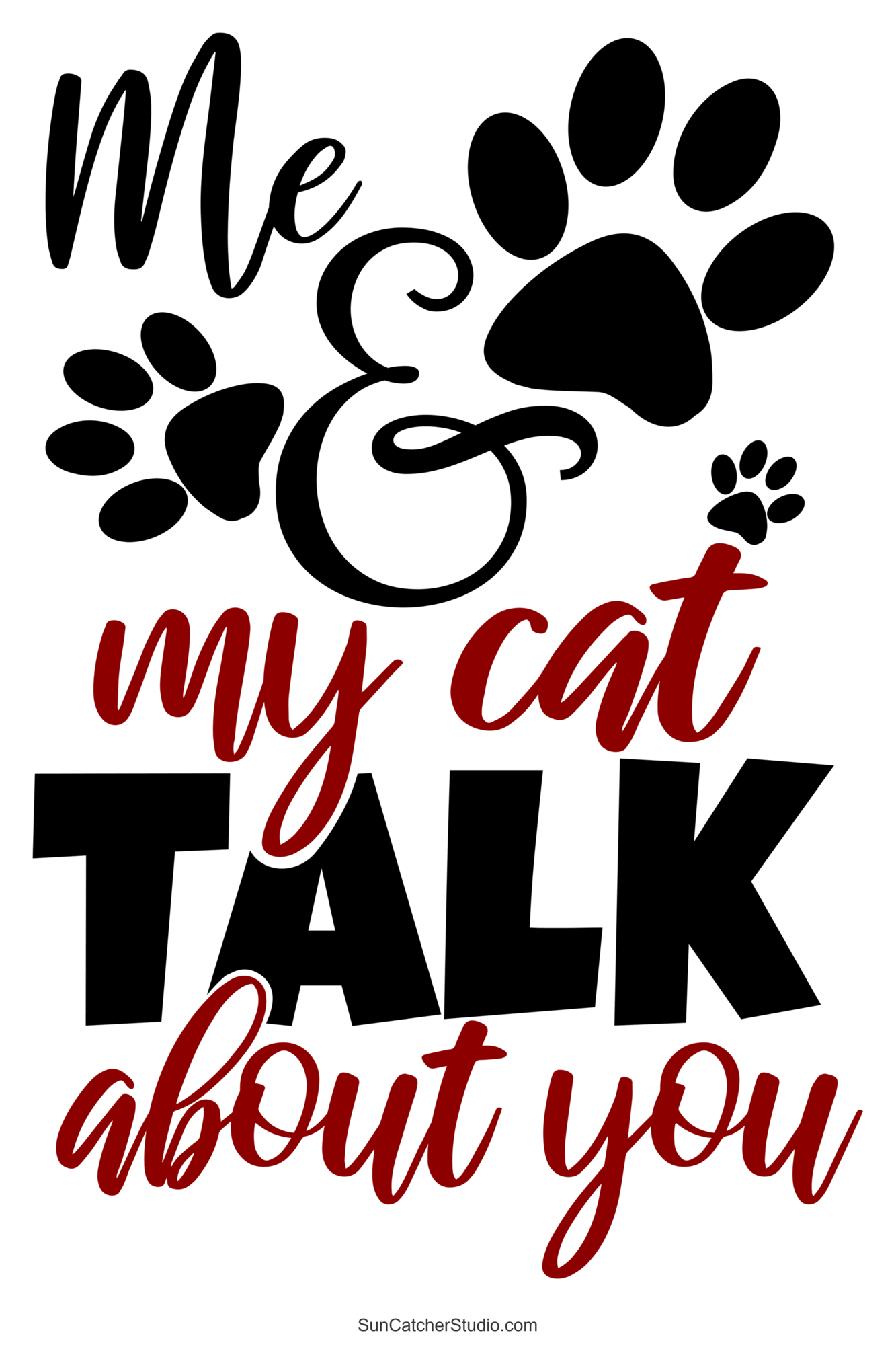 Use these short, funny, printable cat quotes, SVG files, cat sayings, and Cricut designs on shirts, cups, wall decorations, wall art, wall paintings, decor, and for crafts and DIY projects.