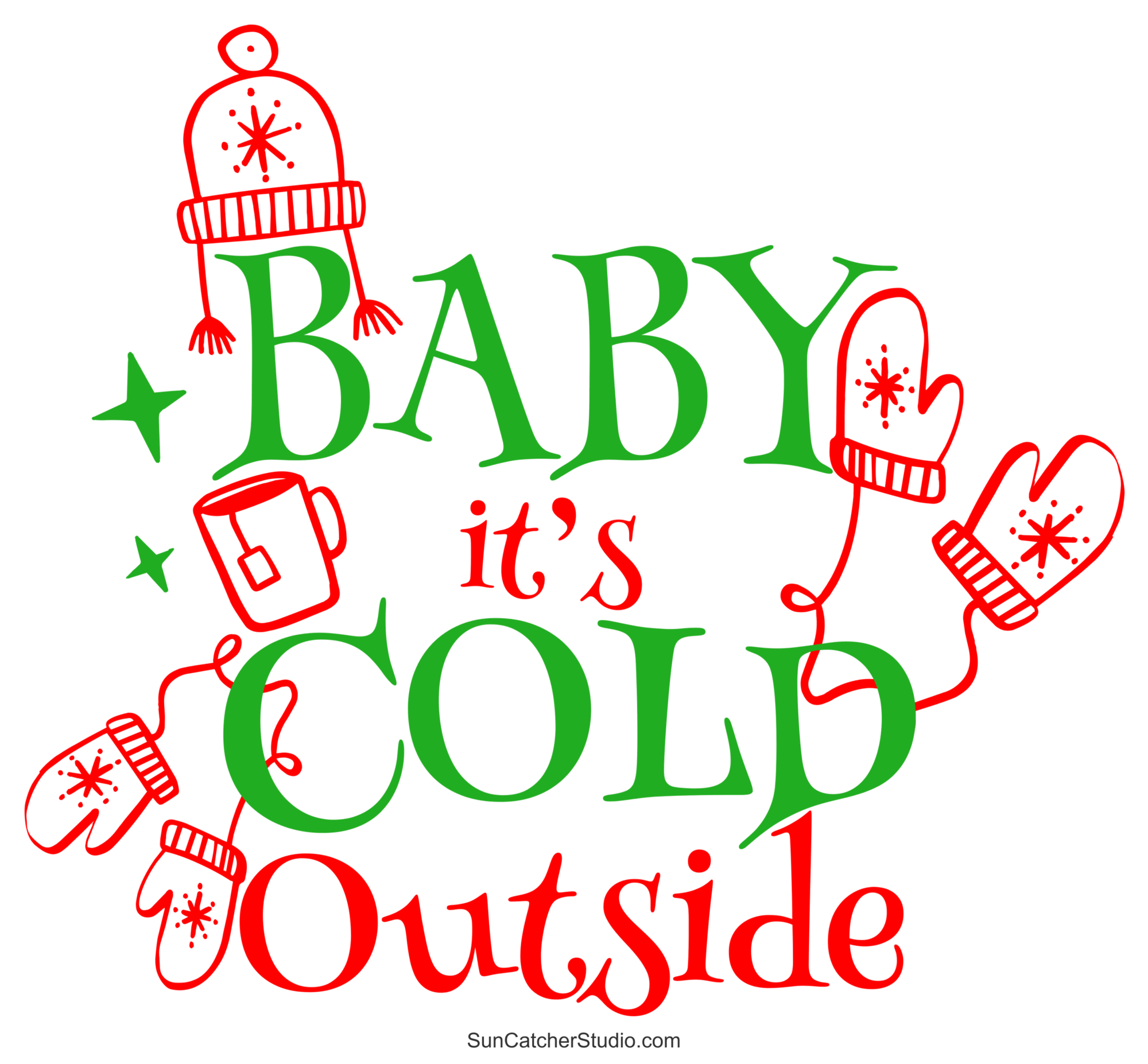 Baby it's cold outside. Free, printable, Christmas quote, Christmas saying, holiday, decoration, winter, Cricut design, clip art, svg, template, pattern, stencil, silhouette, cut file, design, vector, shirt, cup, DIY crafts and projects, embroidery, pdf, vector, print, download.