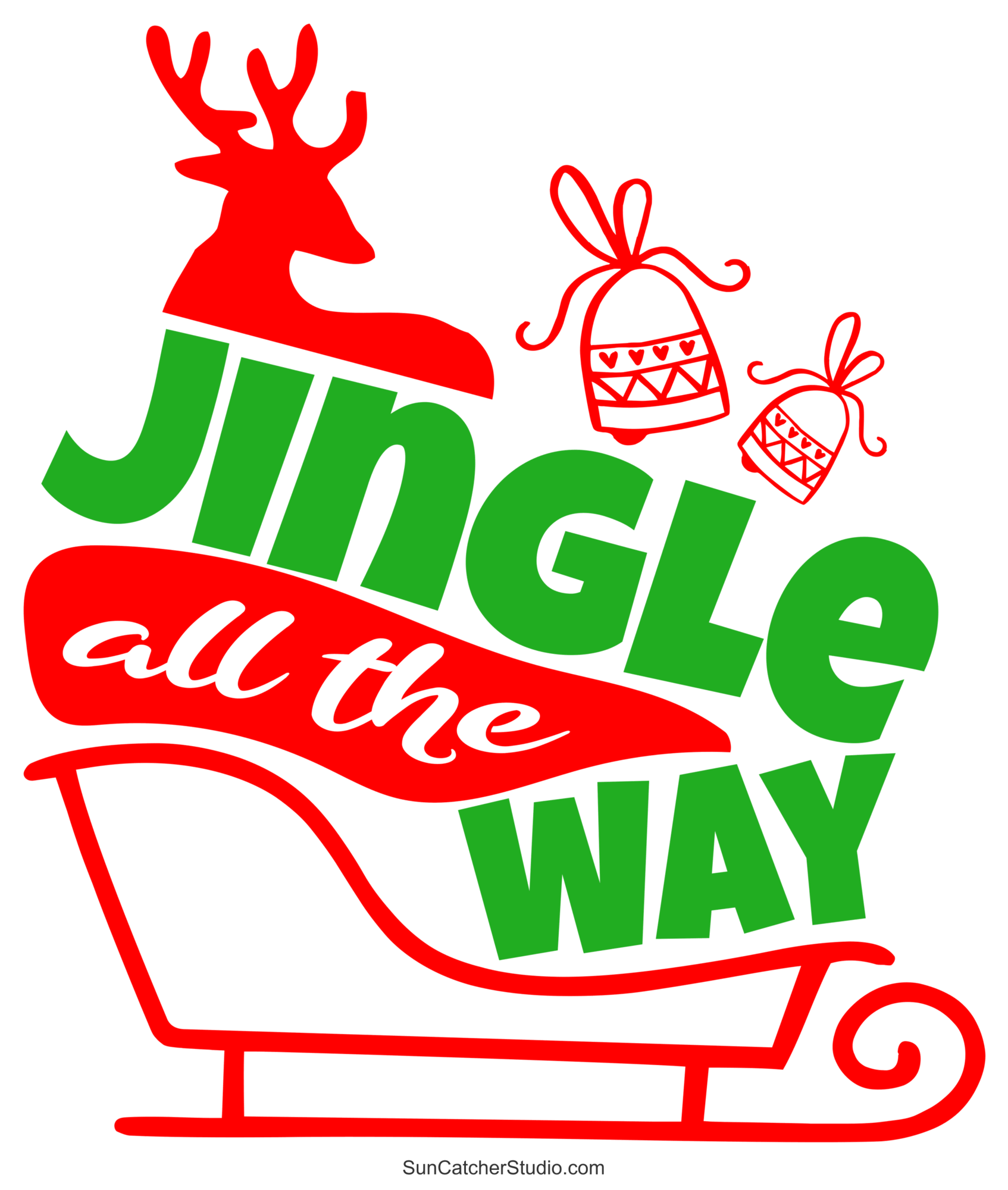 Jingle all the way. Free, printable, Christmas quote, Christmas saying, holiday, decoration, winter, Cricut design, clip art, svg, template, pattern, stencil, silhouette, cut file, design, vector, shirt, cup, DIY crafts and projects, embroidery, pdf, vector, print, download.
