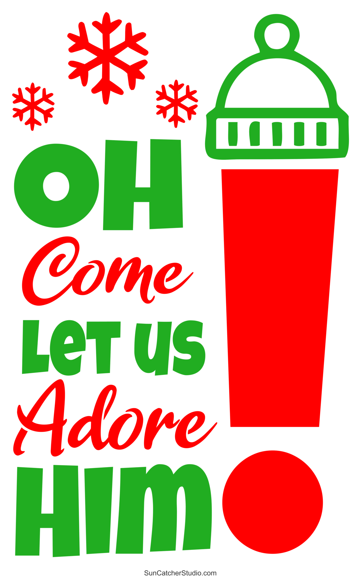 Oh Come Let us adore him. Free, printable, Christmas quote, Christmas saying, holiday, decoration, winter, Cricut design, clip art, svg, template, pattern, stencil, silhouette, cut file, design, vector, shirt, cup, DIY crafts and projects, embroidery, pdf, vector, print, download.