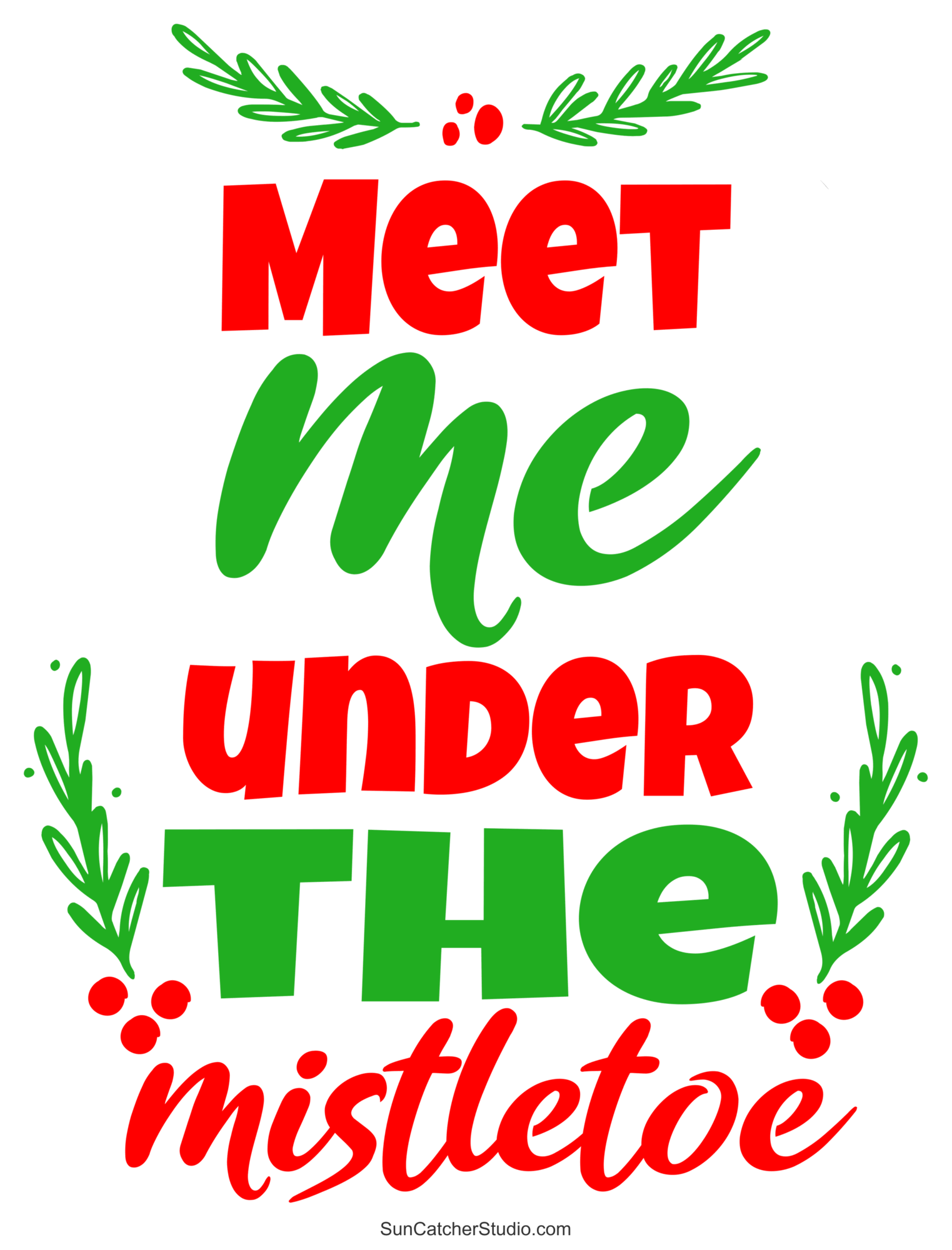 Meet me under the mistletoe. Free, printable, Christmas quote, Christmas saying, holiday, decoration, winter, Cricut design, clip art, svg, template, pattern, stencil, silhouette, cut file, design, vector, shirt, cup, DIY crafts and projects, embroidery, pdf, vector, print, download.
