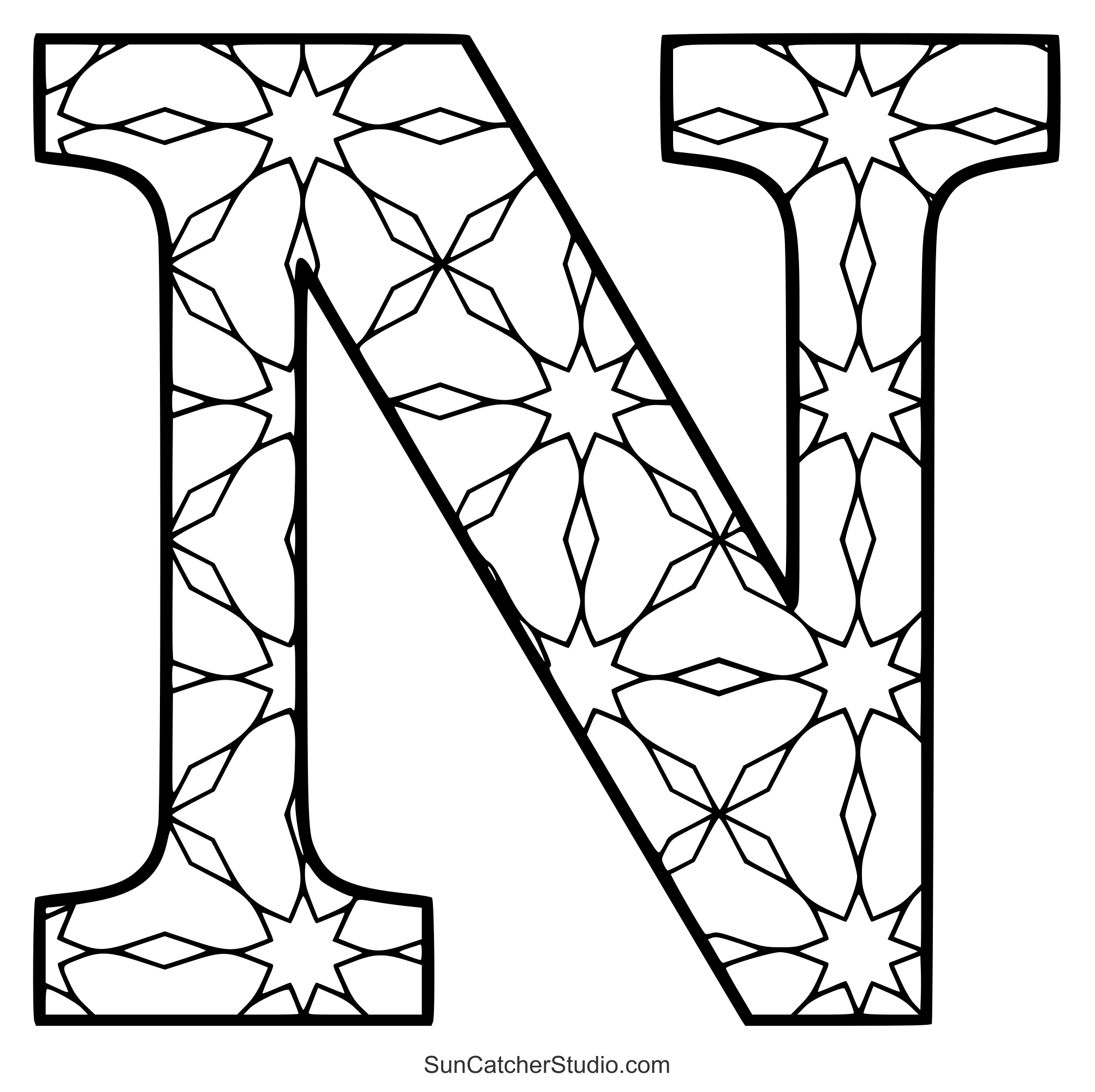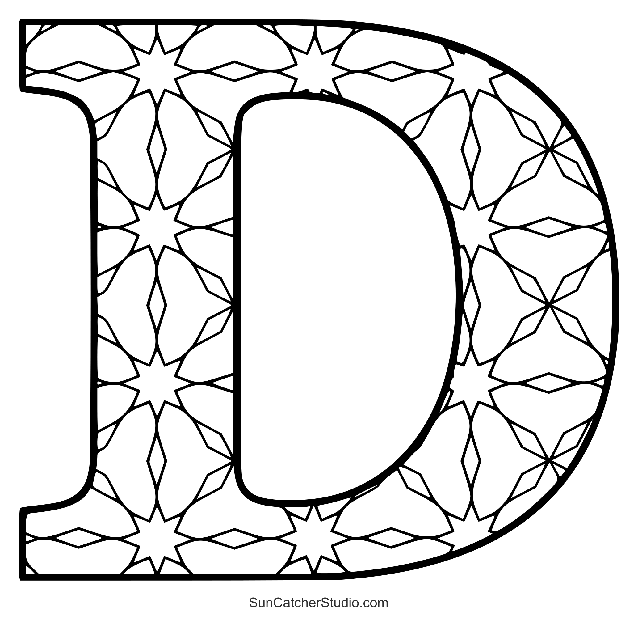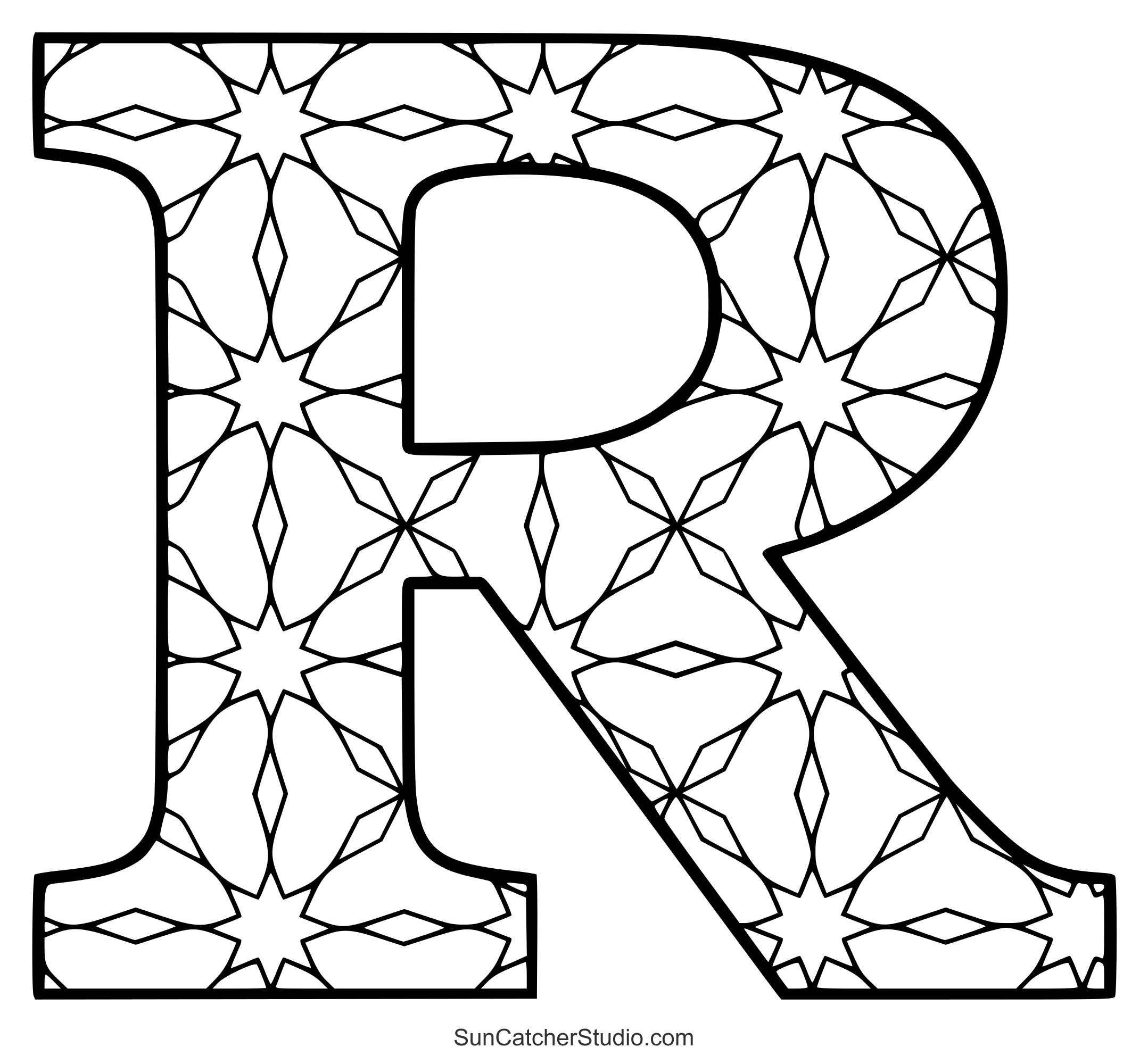 The intricate designs and patterns will give even grown-ups a chance to reduce anxiety, decrease stress, and increase self-esteem. Use these letters to make handmade cards or spell out the name of a person or holiday (e.g., “Merry Christmas”). Print off some patterns and take this hobby wherever you go. Additionally see: Stained glass letter patterns and ABC Coloring pages.