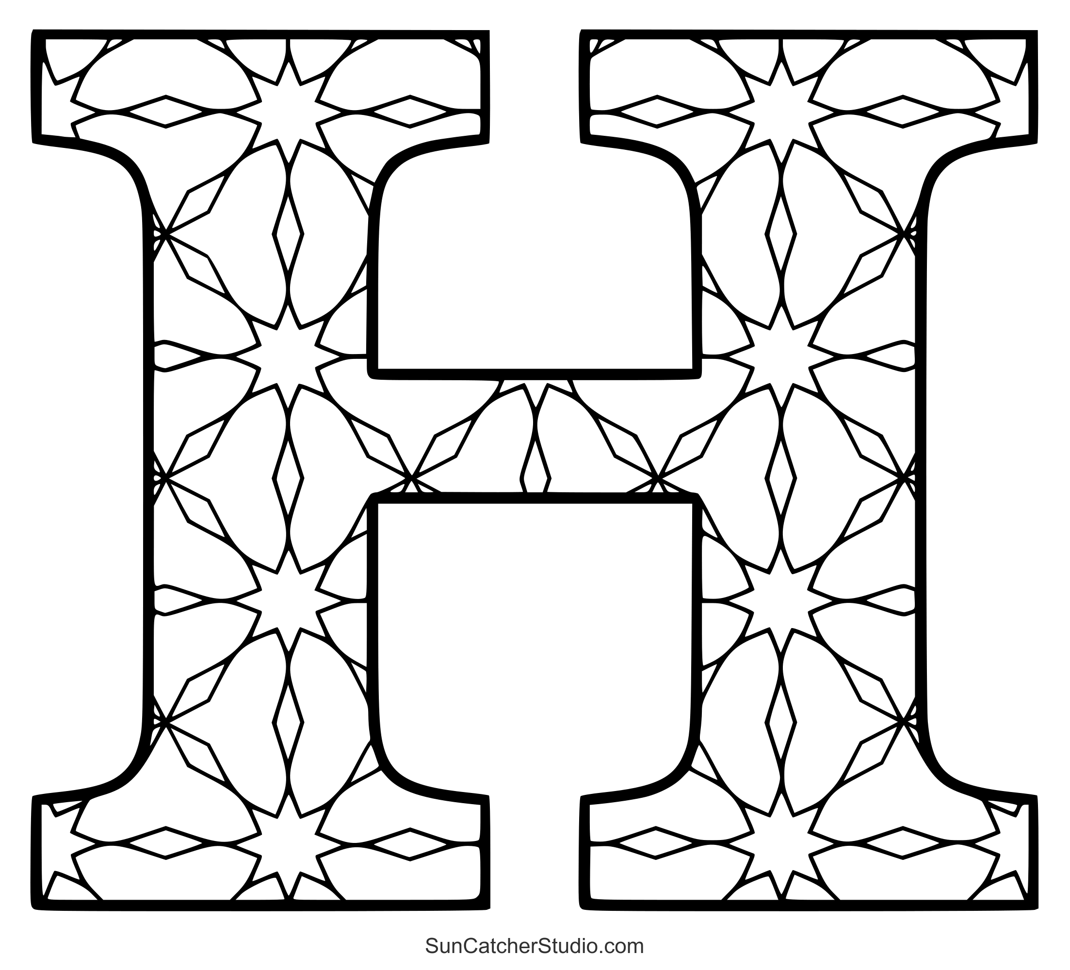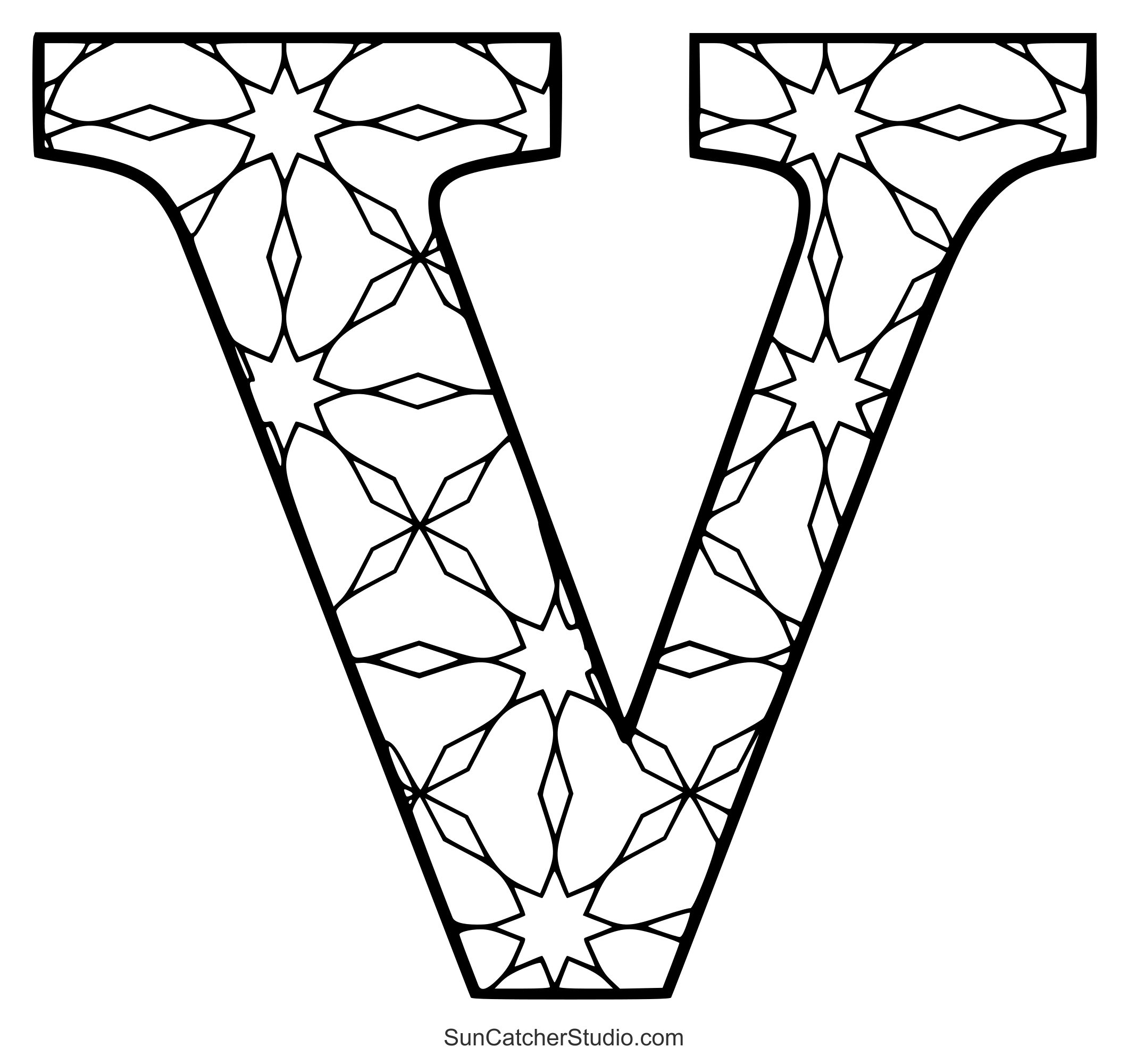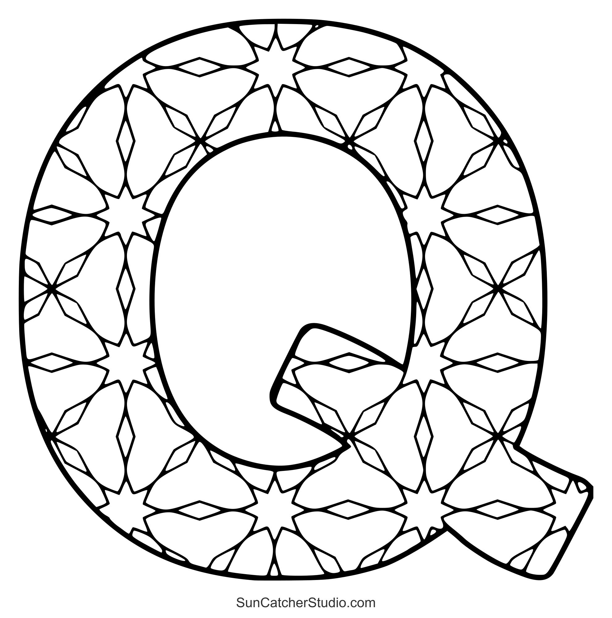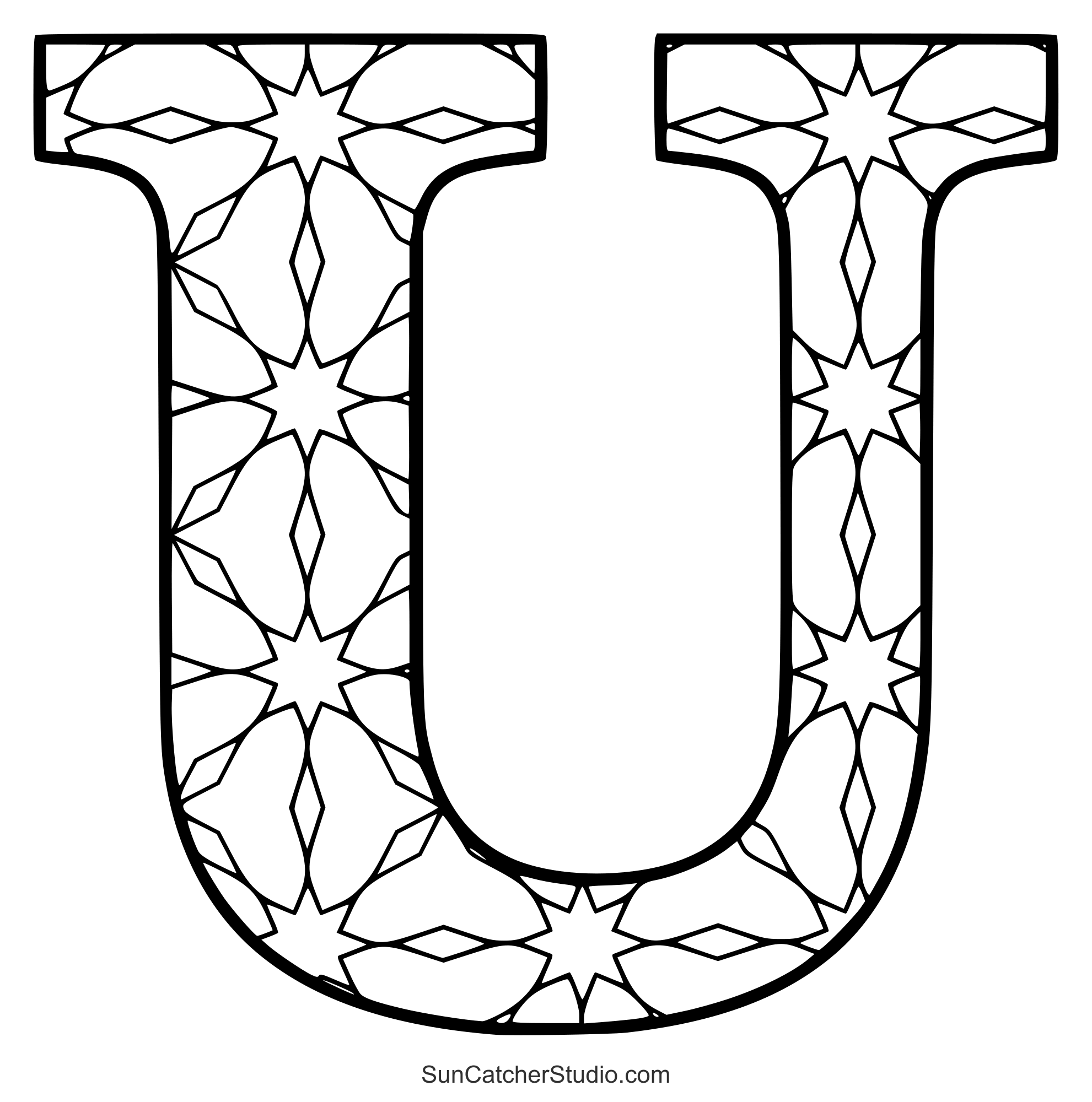The intricate designs and patterns will give even grown-ups a chance to reduce anxiety, decrease stress, and increase self-esteem. Use these letters to make handmade cards or spell out the name of a person or holiday (e.g., “Merry Christmas”). Print off some patterns and take this hobby wherever you go. Additionally see: Stained glass letter patterns and ABC Coloring pages.