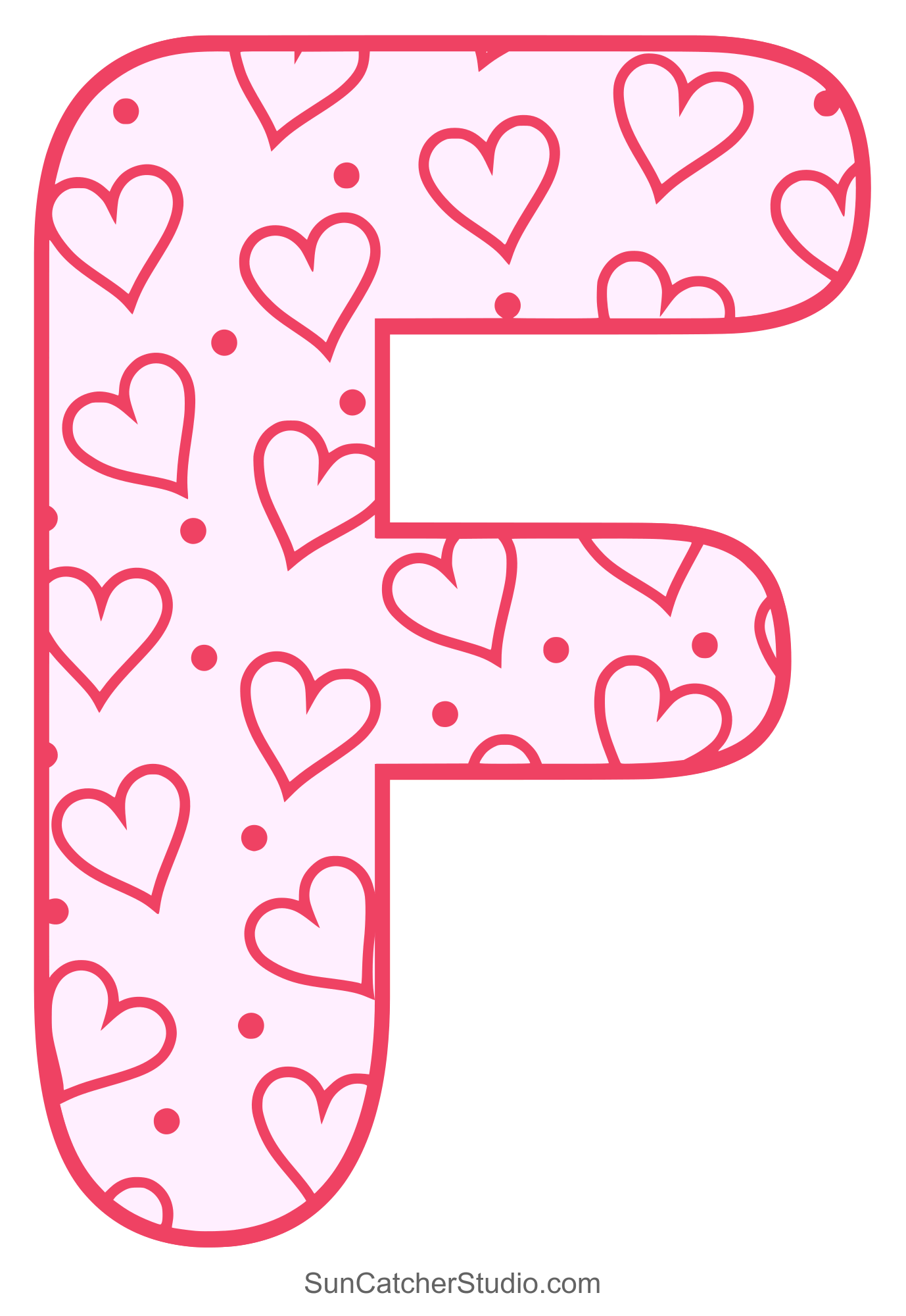 F - letter stencil. Heart, Valentine's Day, red, hearts, love, monogram, font, free, printable, holiday, alphabet, abc, letter, lettering, pattern, template, stencil, outline, printable, clipart, decoration, design, vector, svg, print, download.