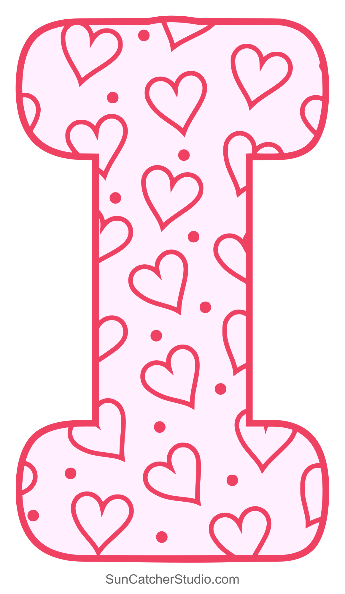 I - letter stencil. Heart, Valentine's Day, red, hearts, love, monogram, font, free, printable, holiday, alphabet, abc, letter, lettering, pattern, template, stencil, outline, printable, clipart, decoration, design, vector, svg, print, download.