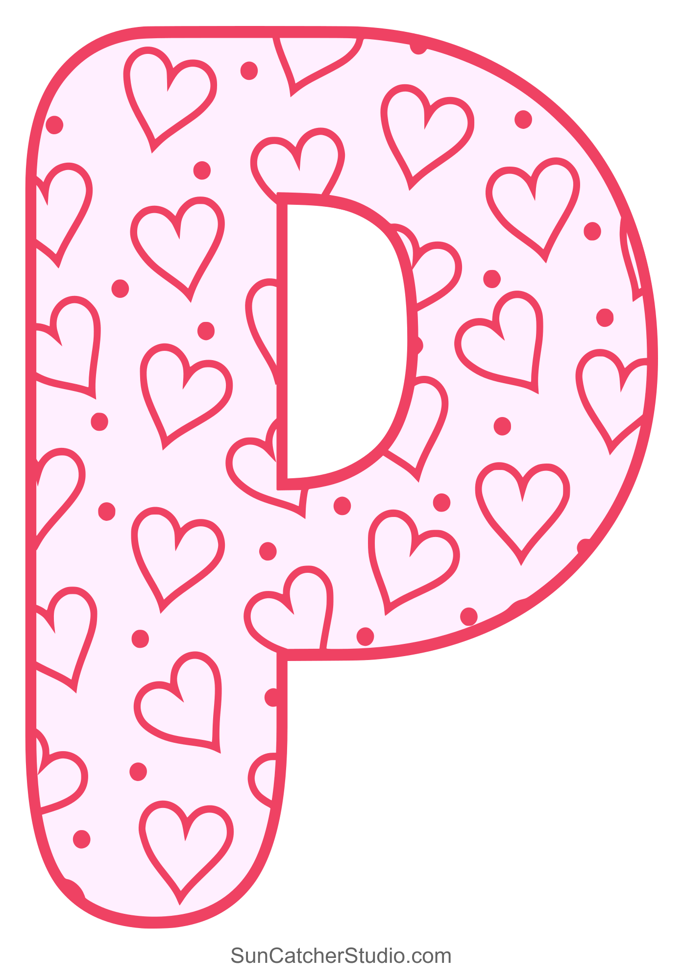 P - letter stencil. Heart, Valentine's Day, red, hearts, love, monogram, font, free, printable, holiday, alphabet, abc, letter, lettering, pattern, template, stencil, outline, printable, clipart, decoration, design, vector, svg, print, download.