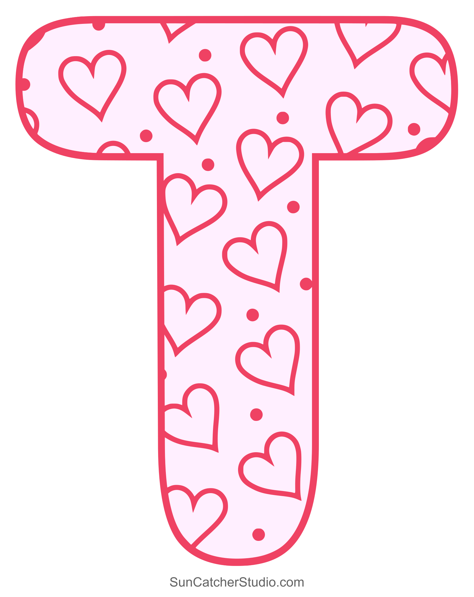 T - letter stencil. Heart, Valentine's Day, red, hearts, love, monogram, font, free, printable, holiday, alphabet, abc, letter, lettering, pattern, template, stencil, outline, printable, clipart, decoration, design, vector, svg, print, download.