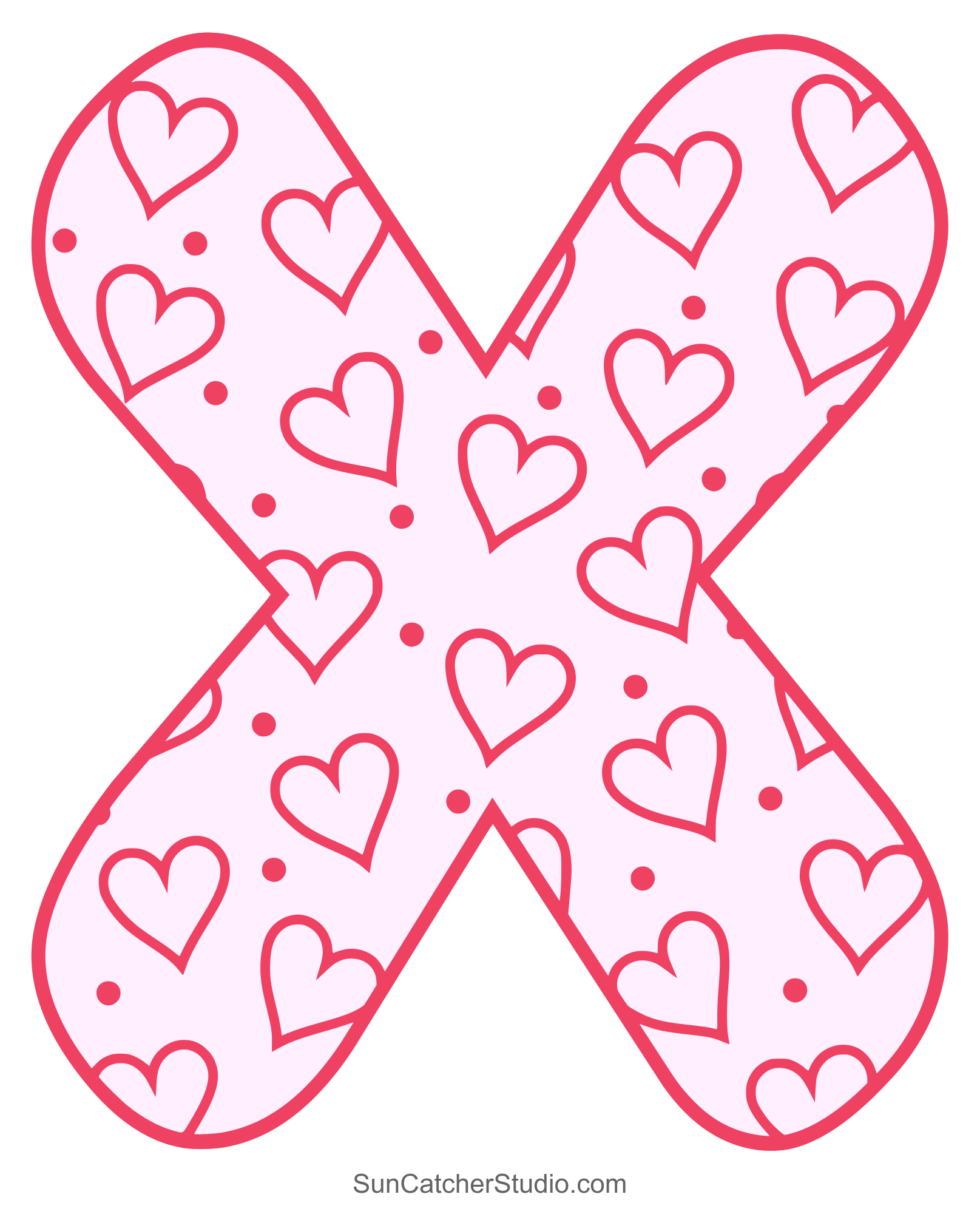 X - letter stencil. Heart, Valentine's Day, red, hearts, love, monogram, font, free, printable, holiday, alphabet, abc, letter, lettering, pattern, template, stencil, outline, printable, clipart, decoration, design, vector, svg, print, download.