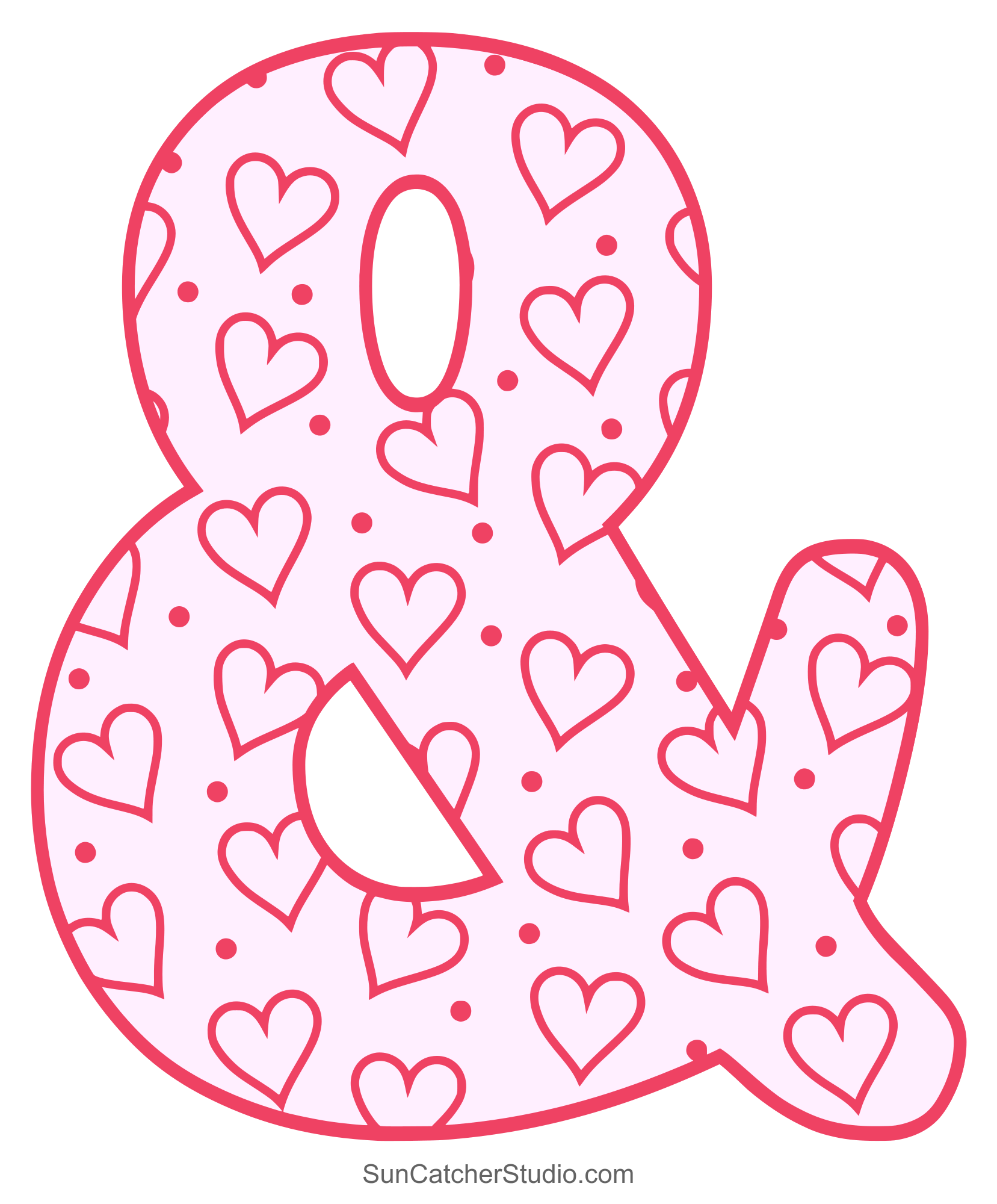 Ampersand. Heart, Valentine's Day, red, hearts, love, monogram, font, free, printable, holiday, alphabet, abc, letter, lettering, pattern, template, stencil, outline, printable, clipart, decoration, design, vector, svg, print, download.