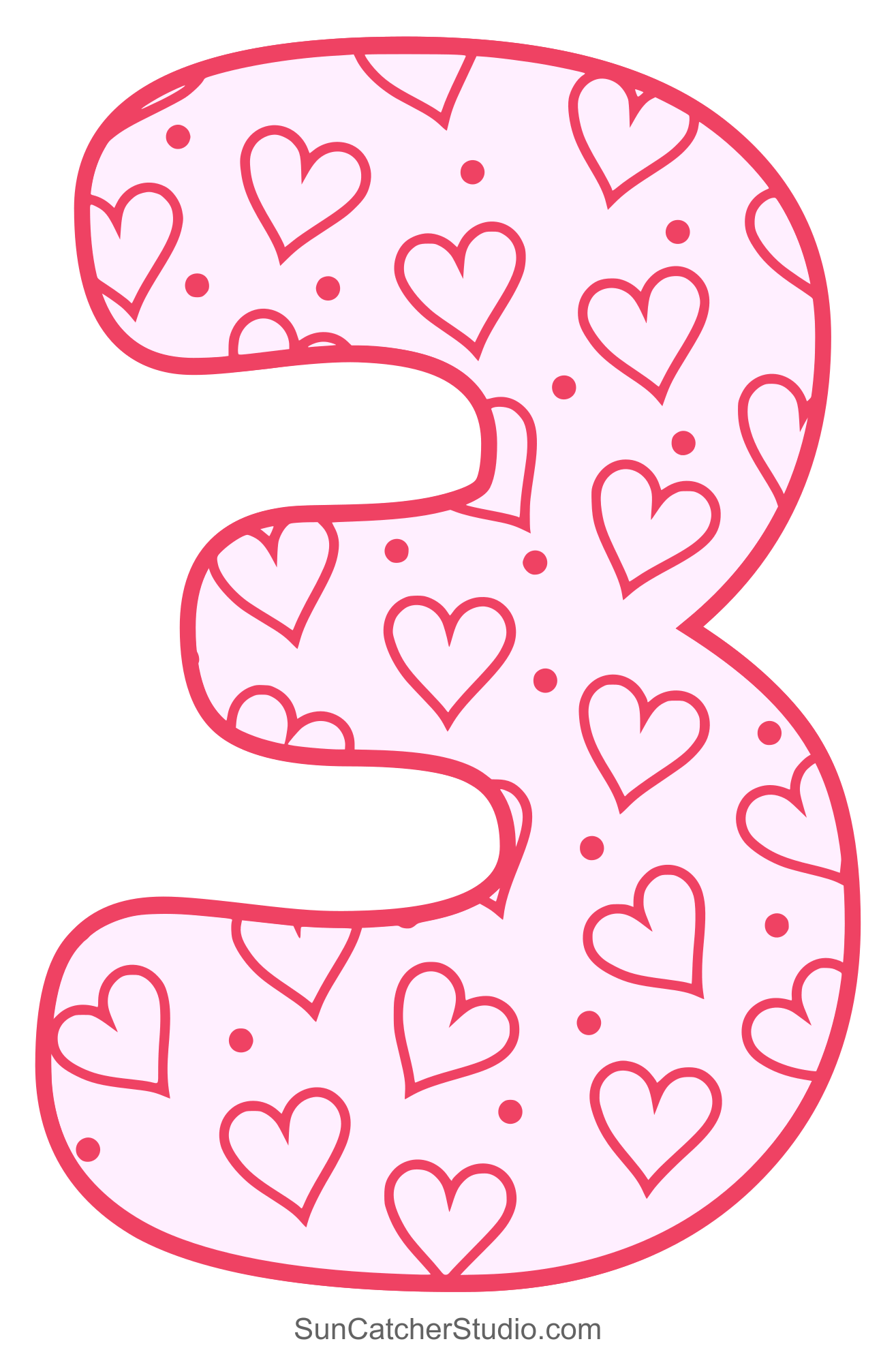 3 - pattern. Heart, Valentine's Day, red, hearts, love, monogram, font, free, printable, holiday, alphabet, abc, letter, lettering, pattern, template, stencil, outline, printable, clipart, decoration, design, vector, svg, print, download.