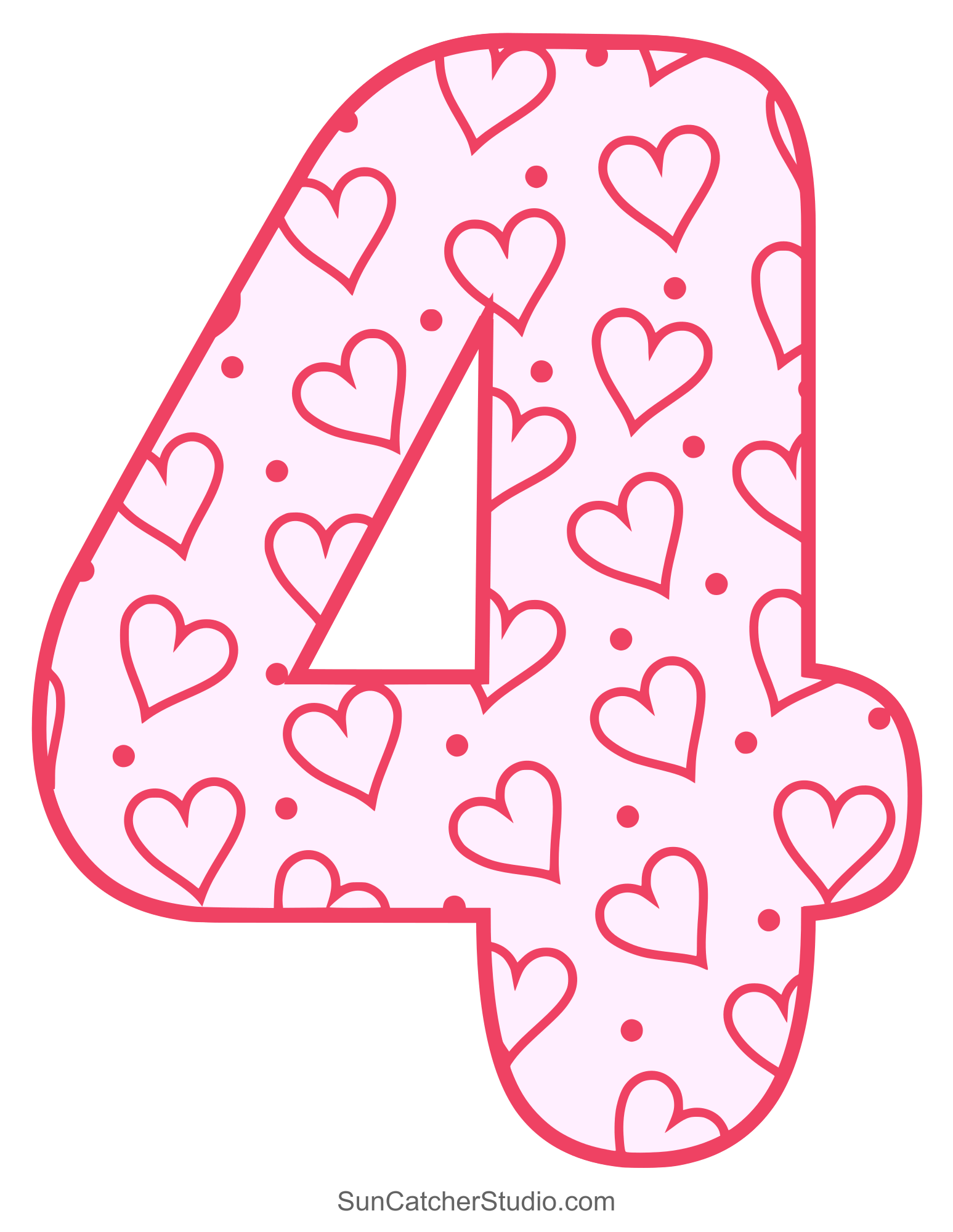 4 - pattern. Heart, Valentine's Day, red, hearts, love, monogram, font, free, printable, holiday, alphabet, abc, letter, lettering, pattern, template, stencil, outline, printable, clipart, decoration, design, vector, svg, print, download.
