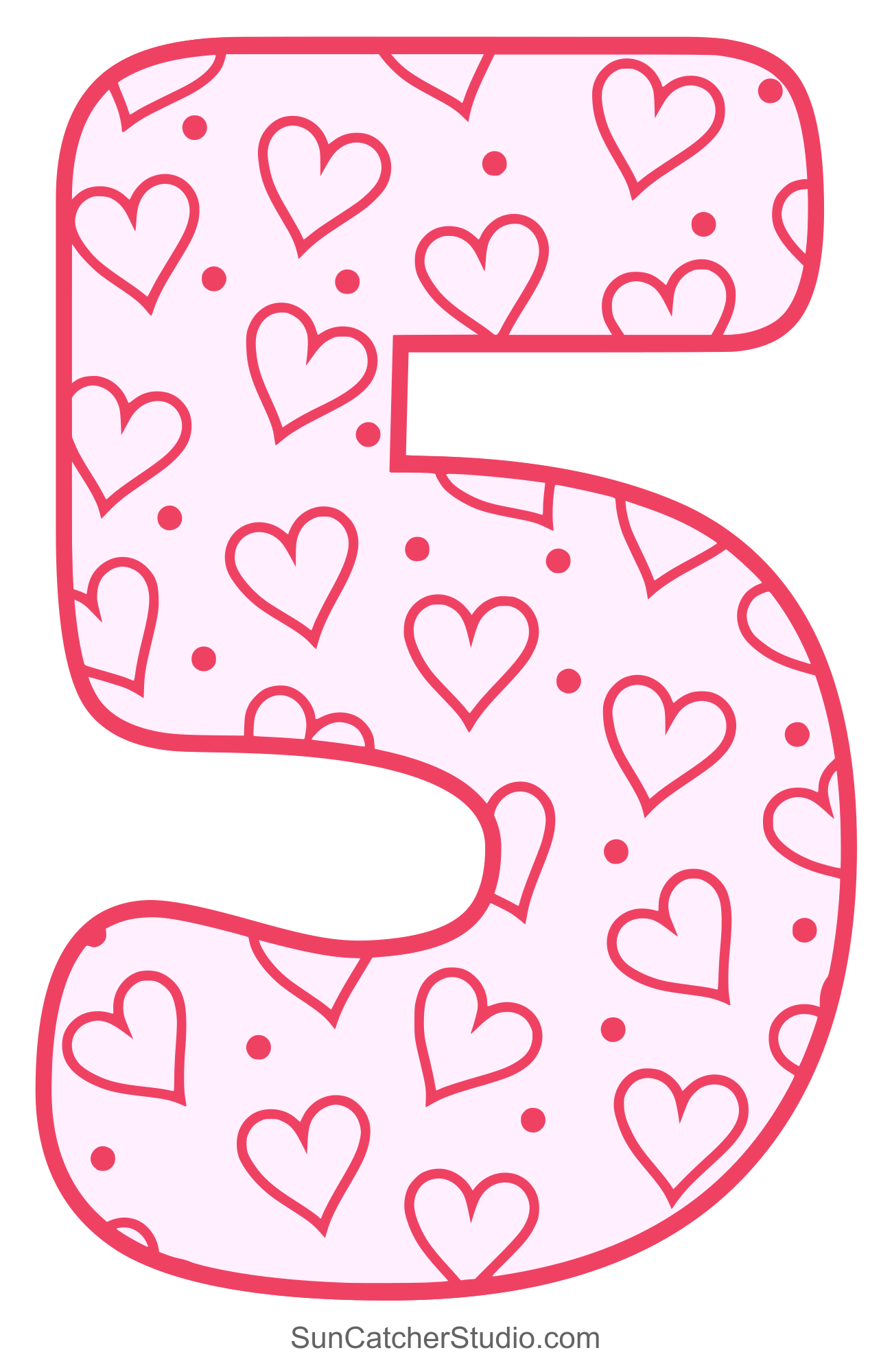 5 - template. Heart, Valentine's Day, red, hearts, love, monogram, font, free, printable, holiday, alphabet, abc, letter, lettering, pattern, template, stencil, outline, printable, clipart, decoration, design, vector, svg, print, download.