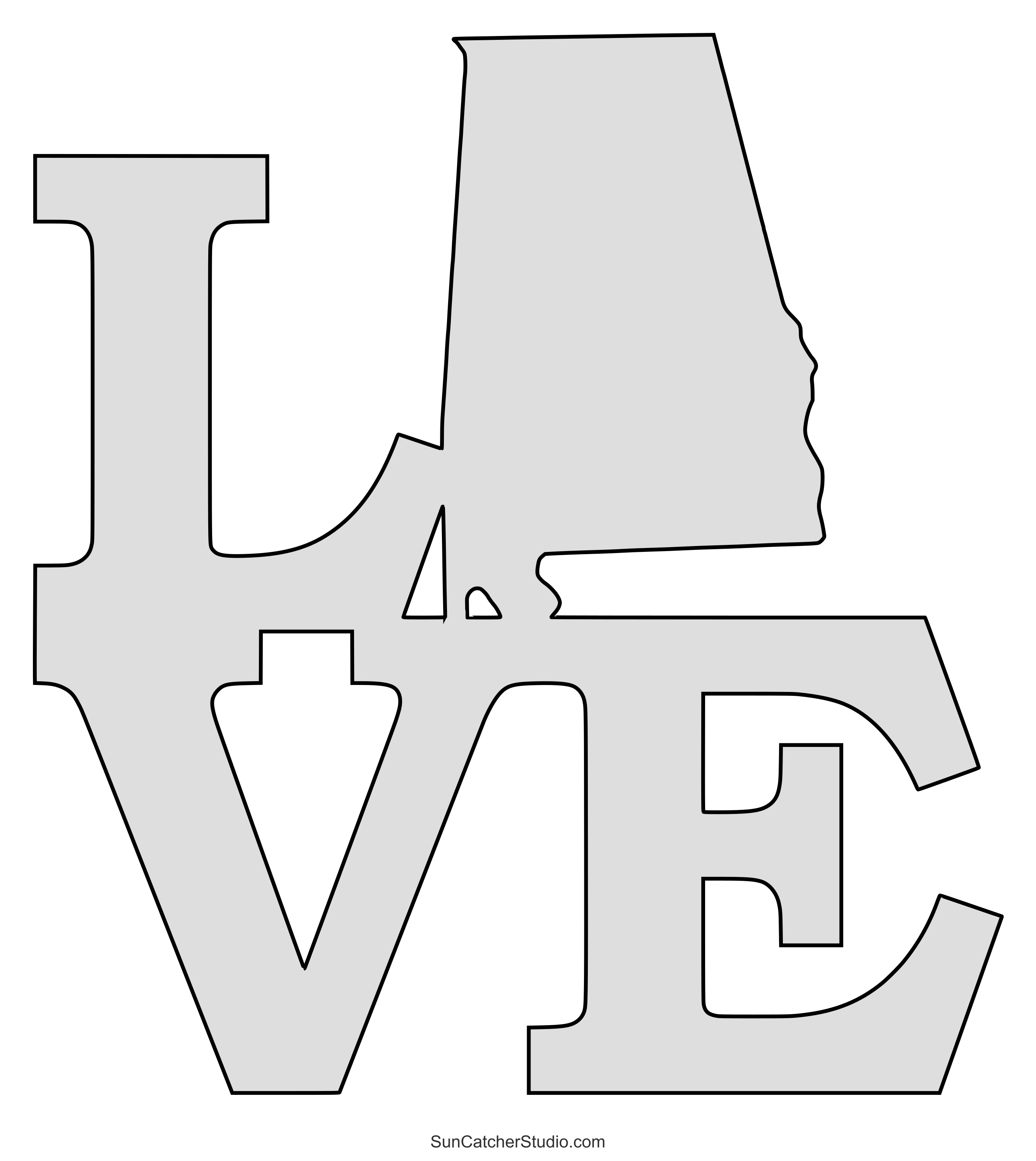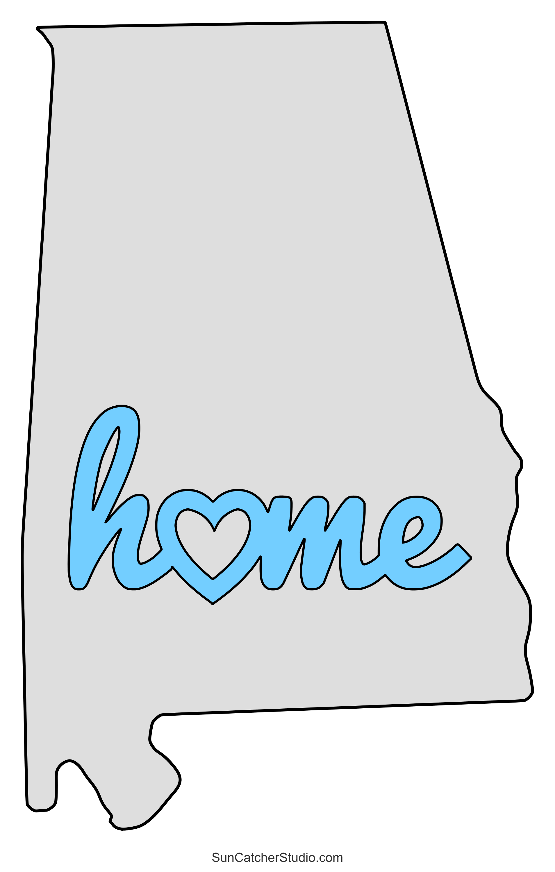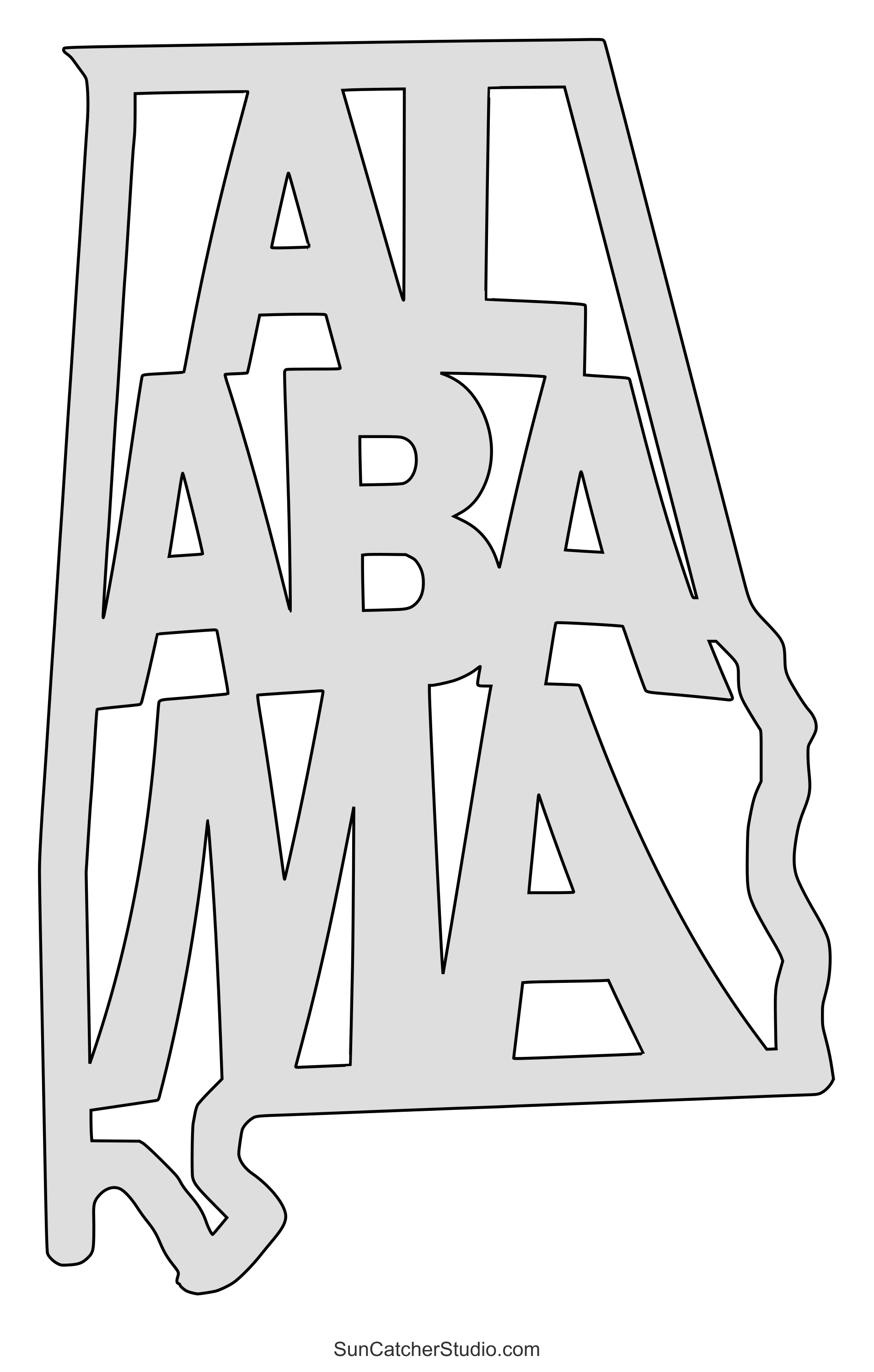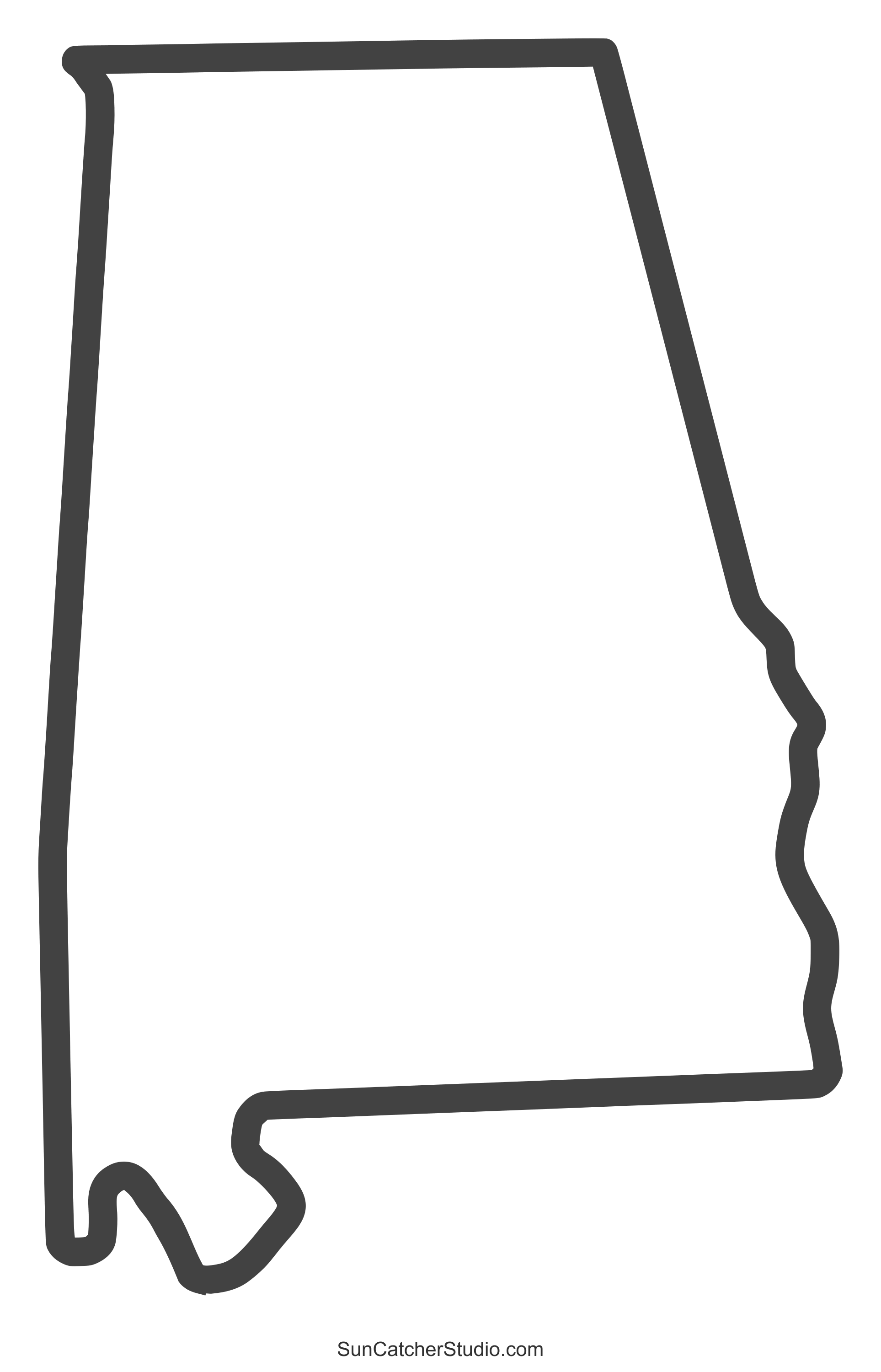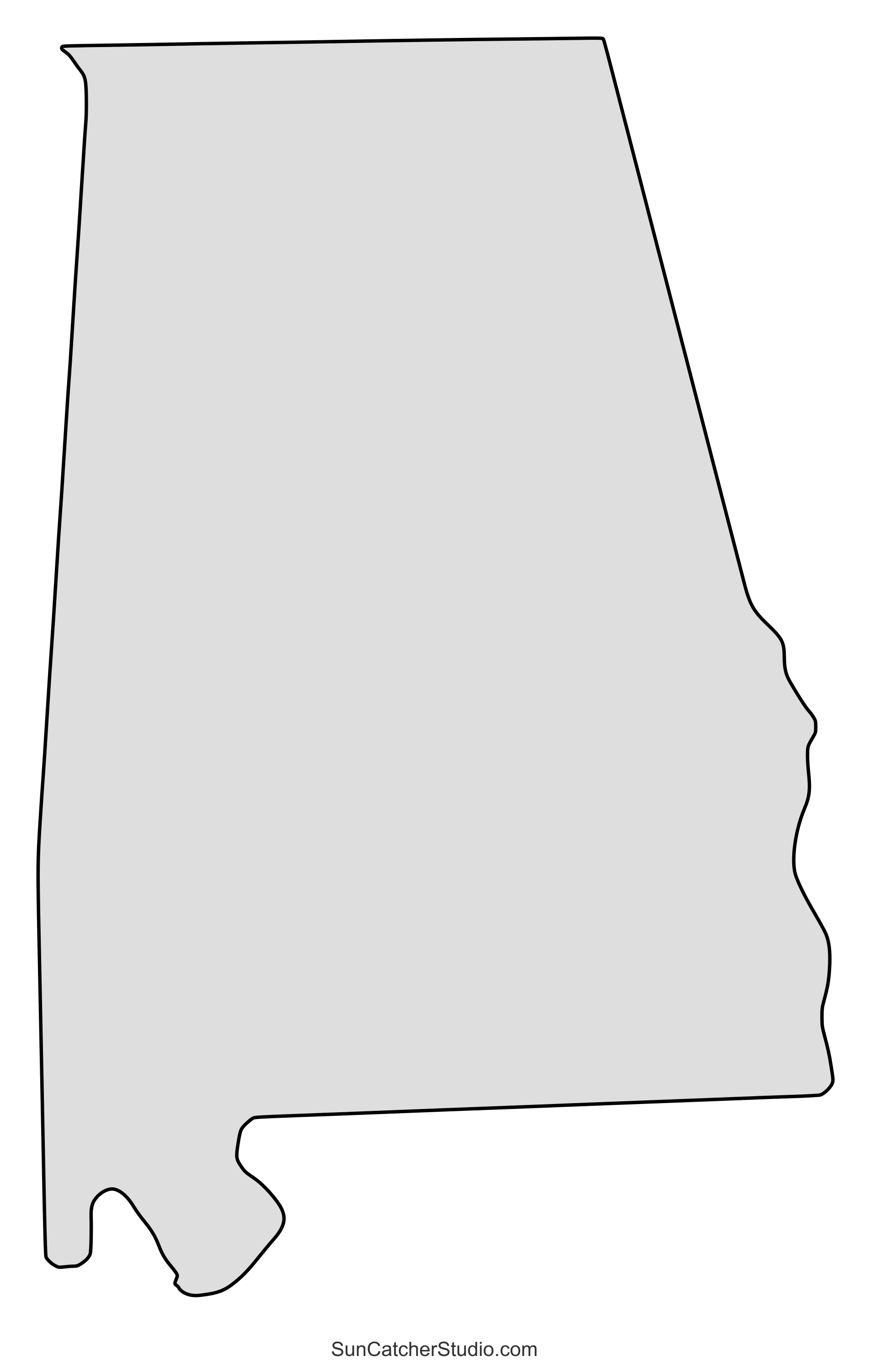 Alabama – Map Outline, Printable State, Shape, Stencil, Pattern