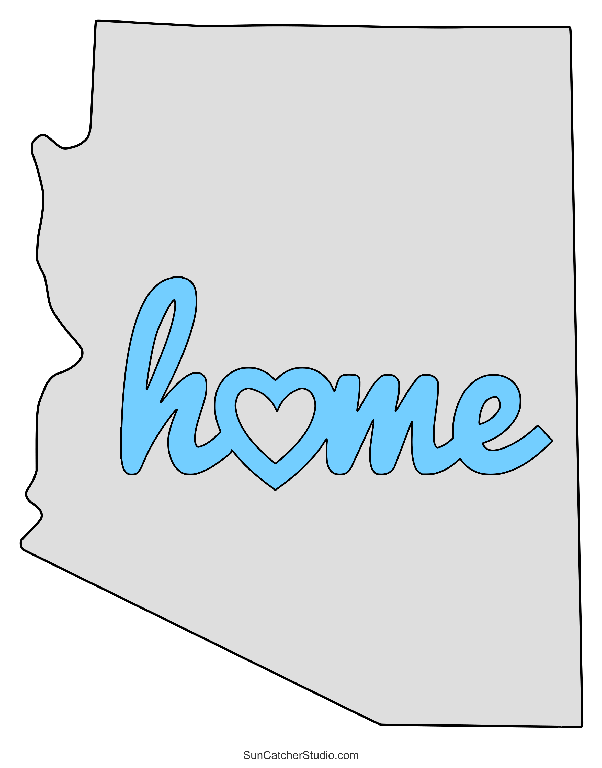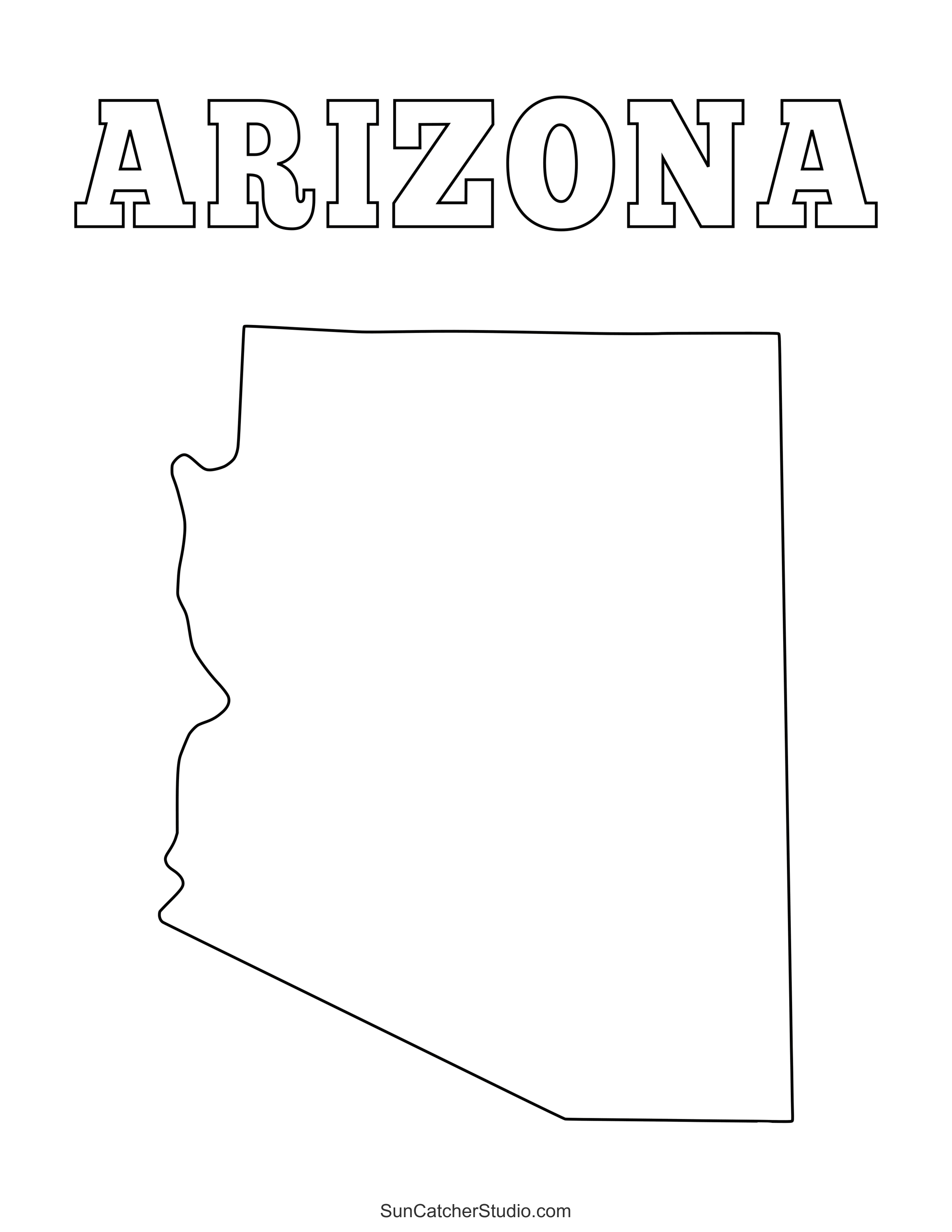 Arizona – Map Outline, Printable State, Shape, Stencil, Pattern