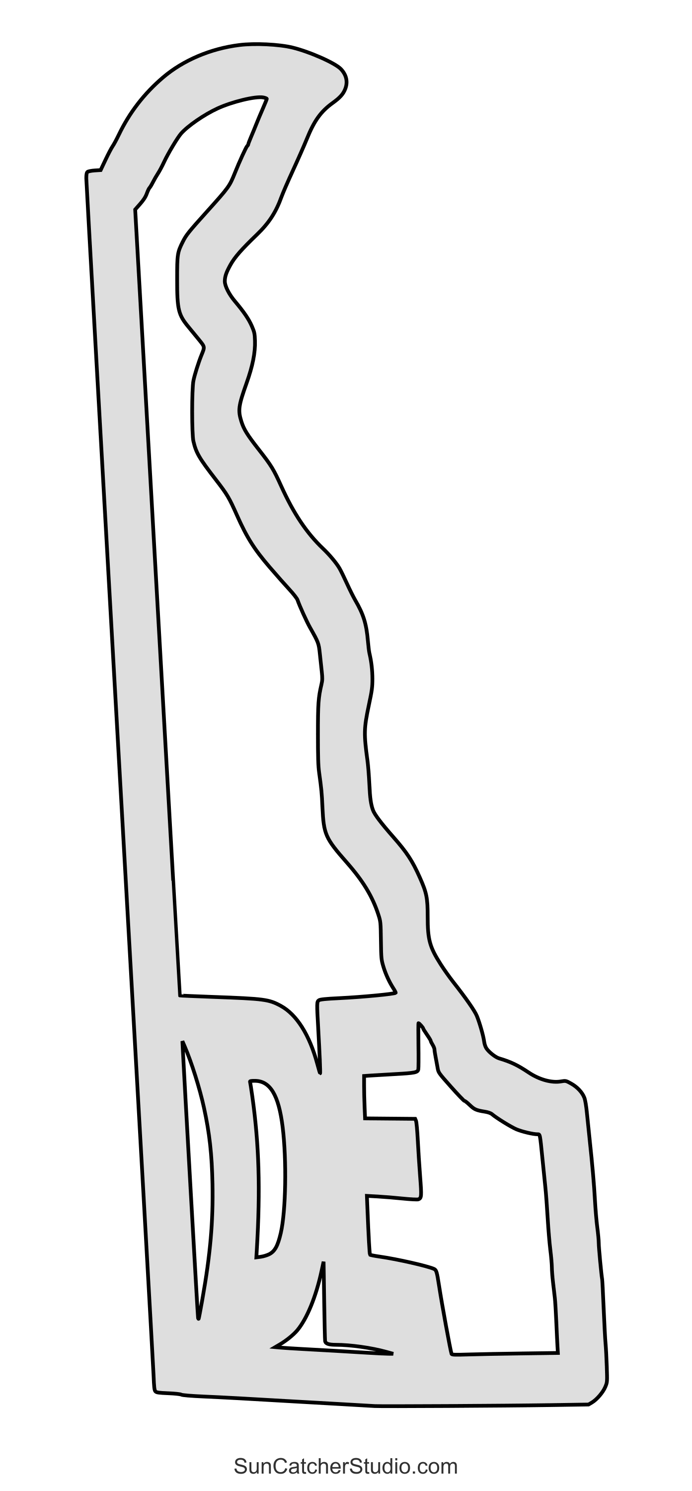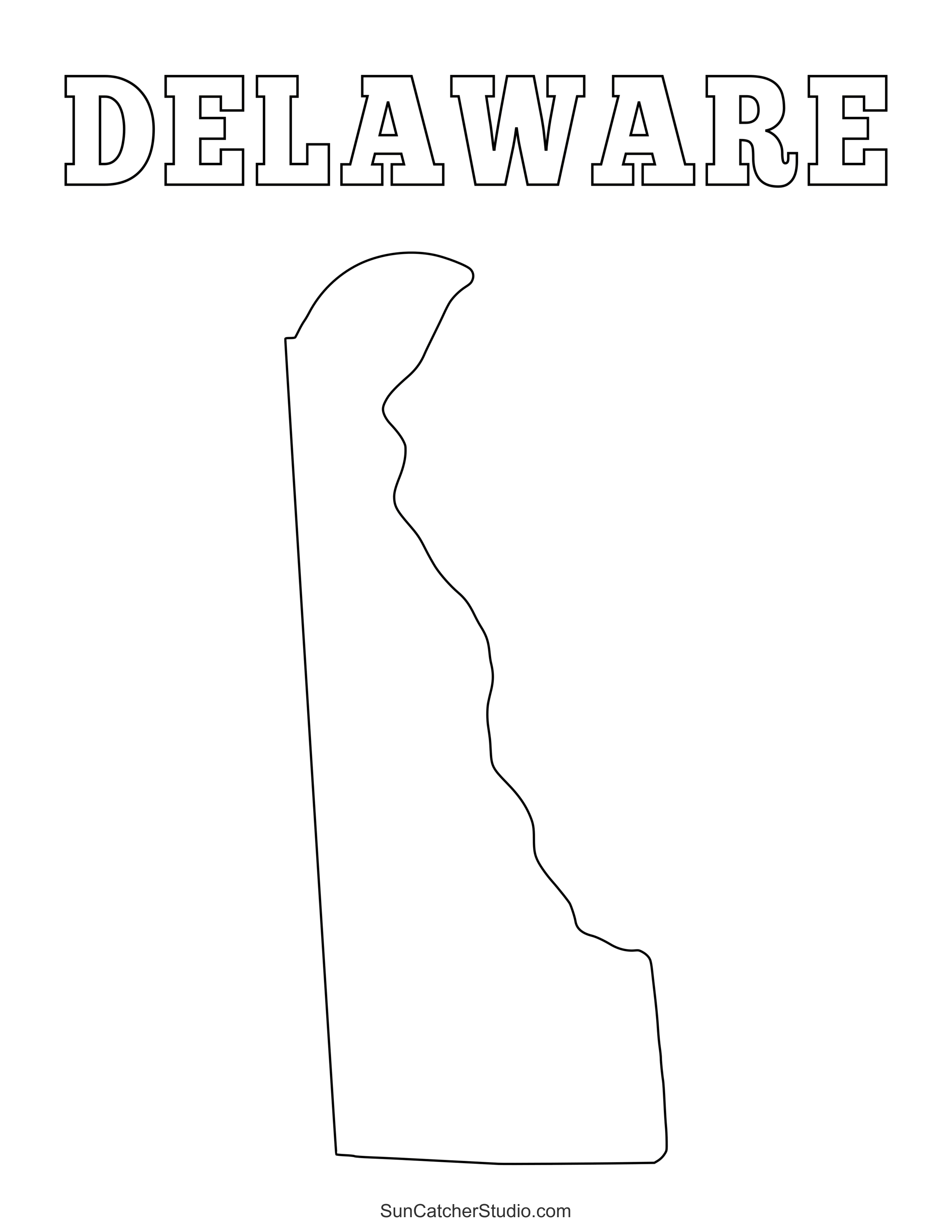 Delaware – Map Outline, Printable State, Shape, Stencil, Pattern