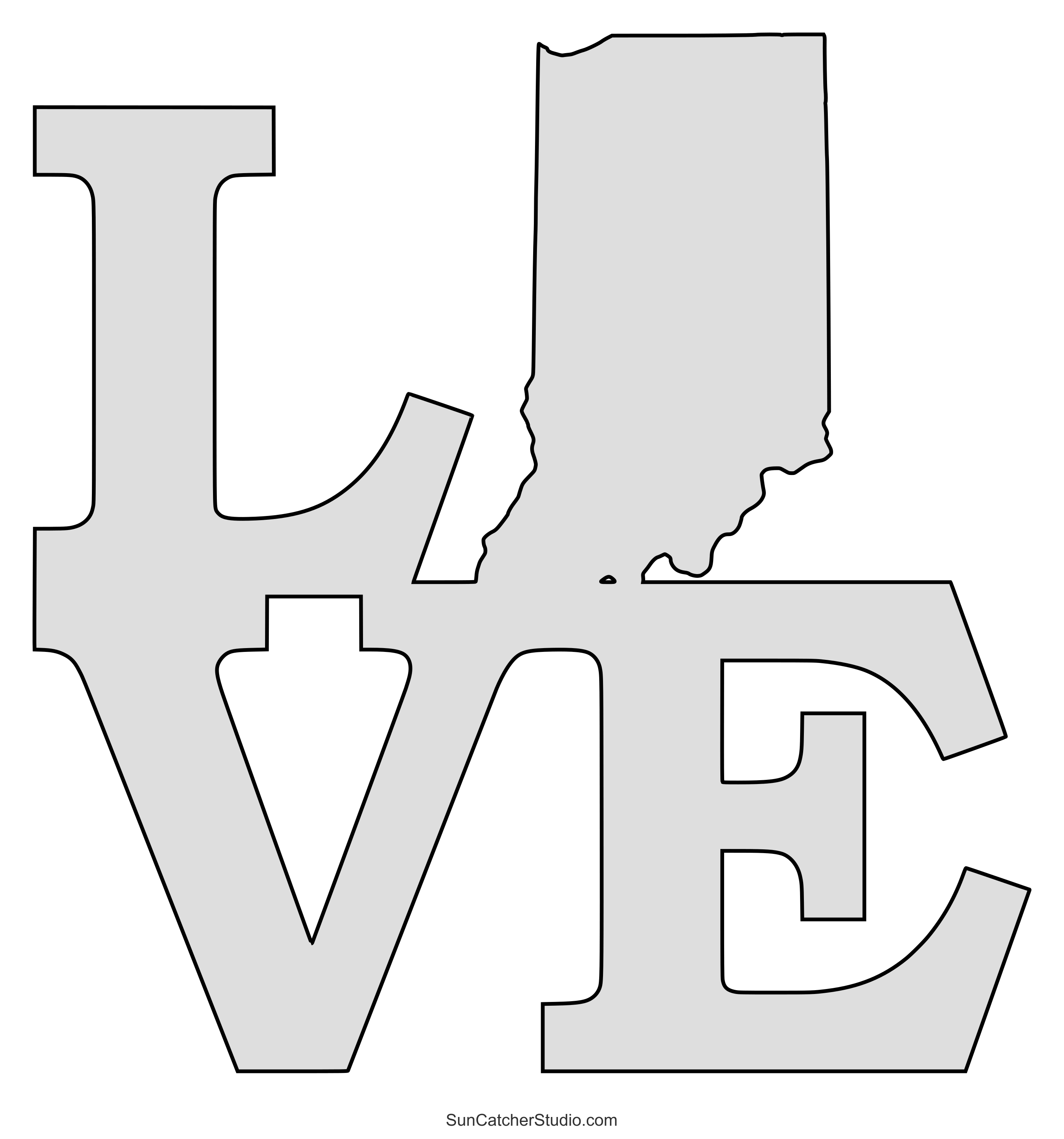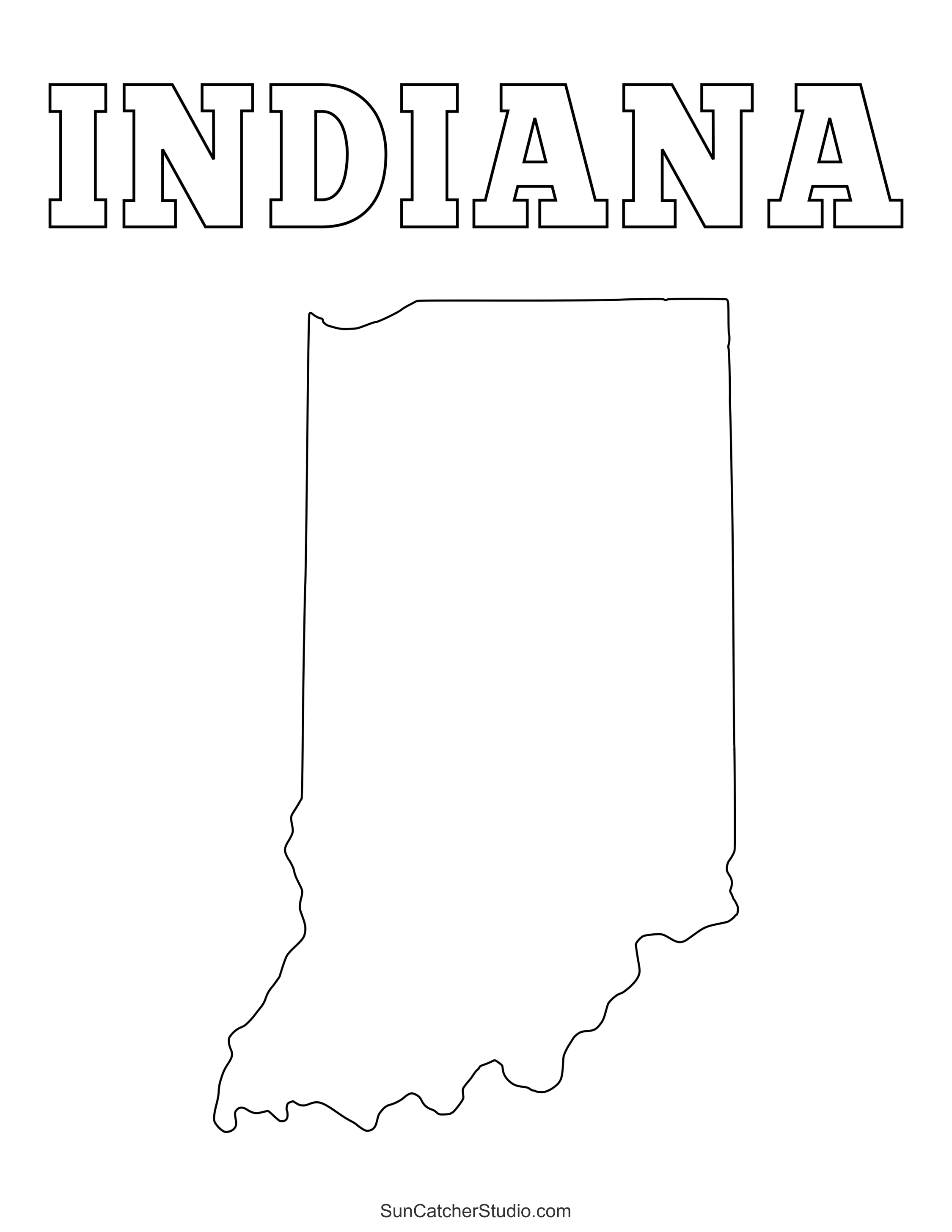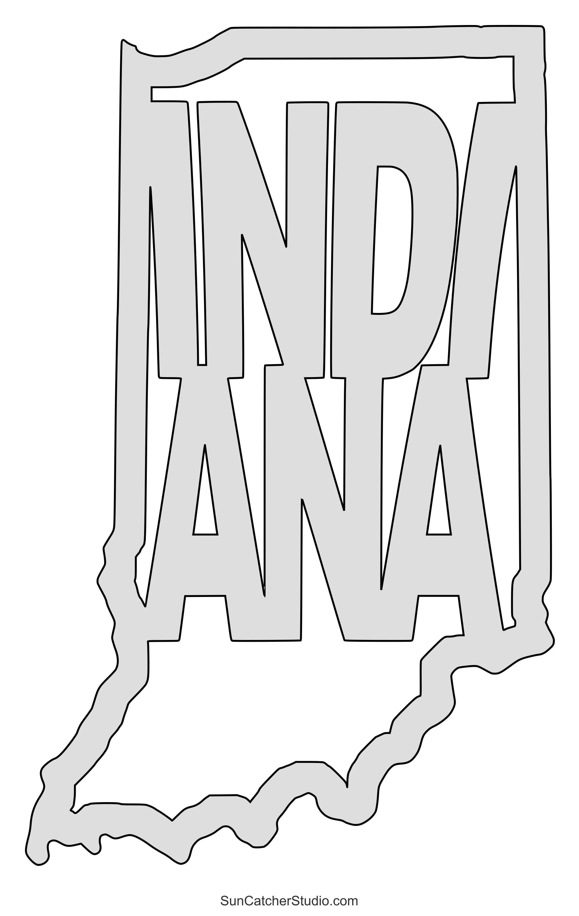 Indiana – Map Outline, Printable State, Shape, Stencil, Pattern