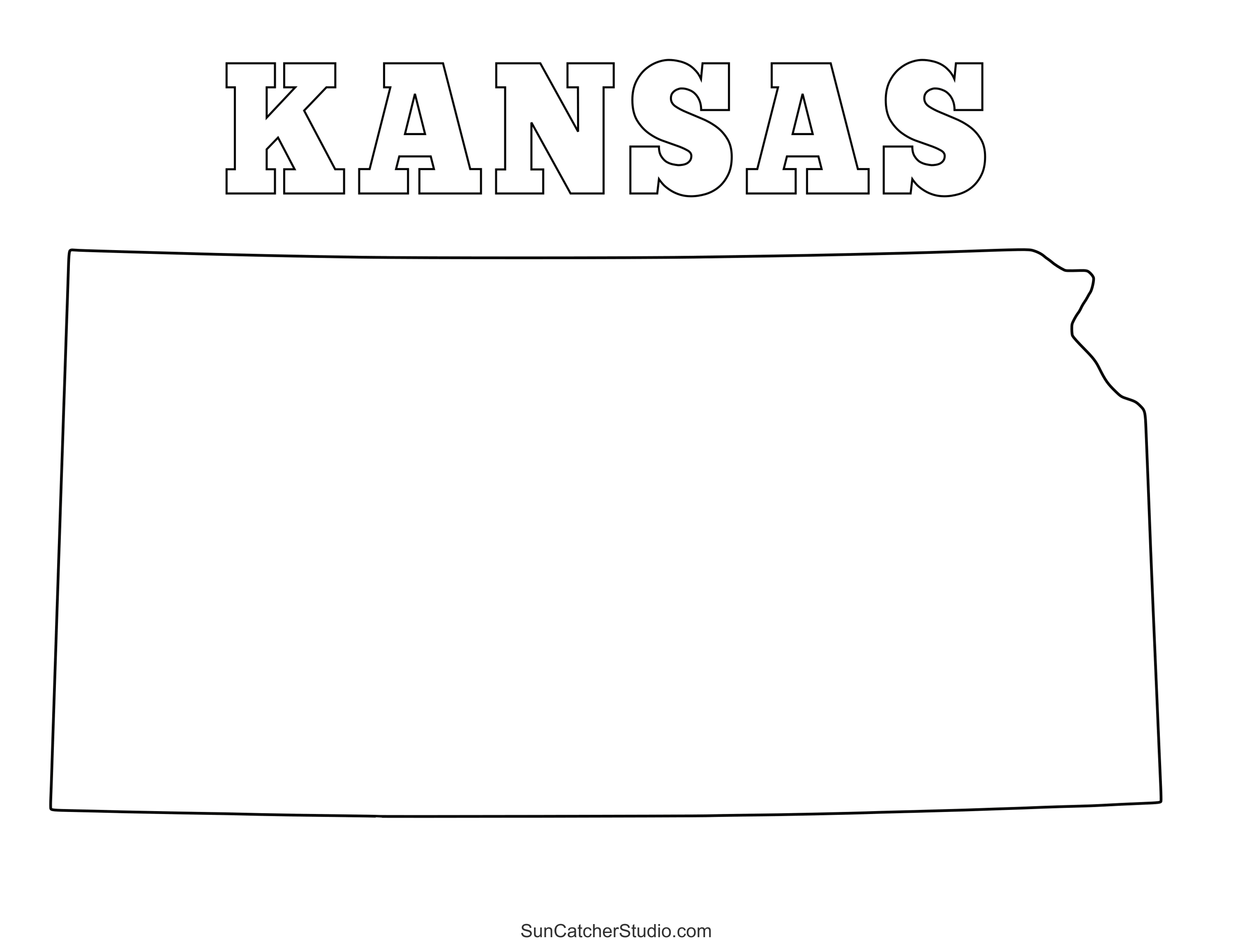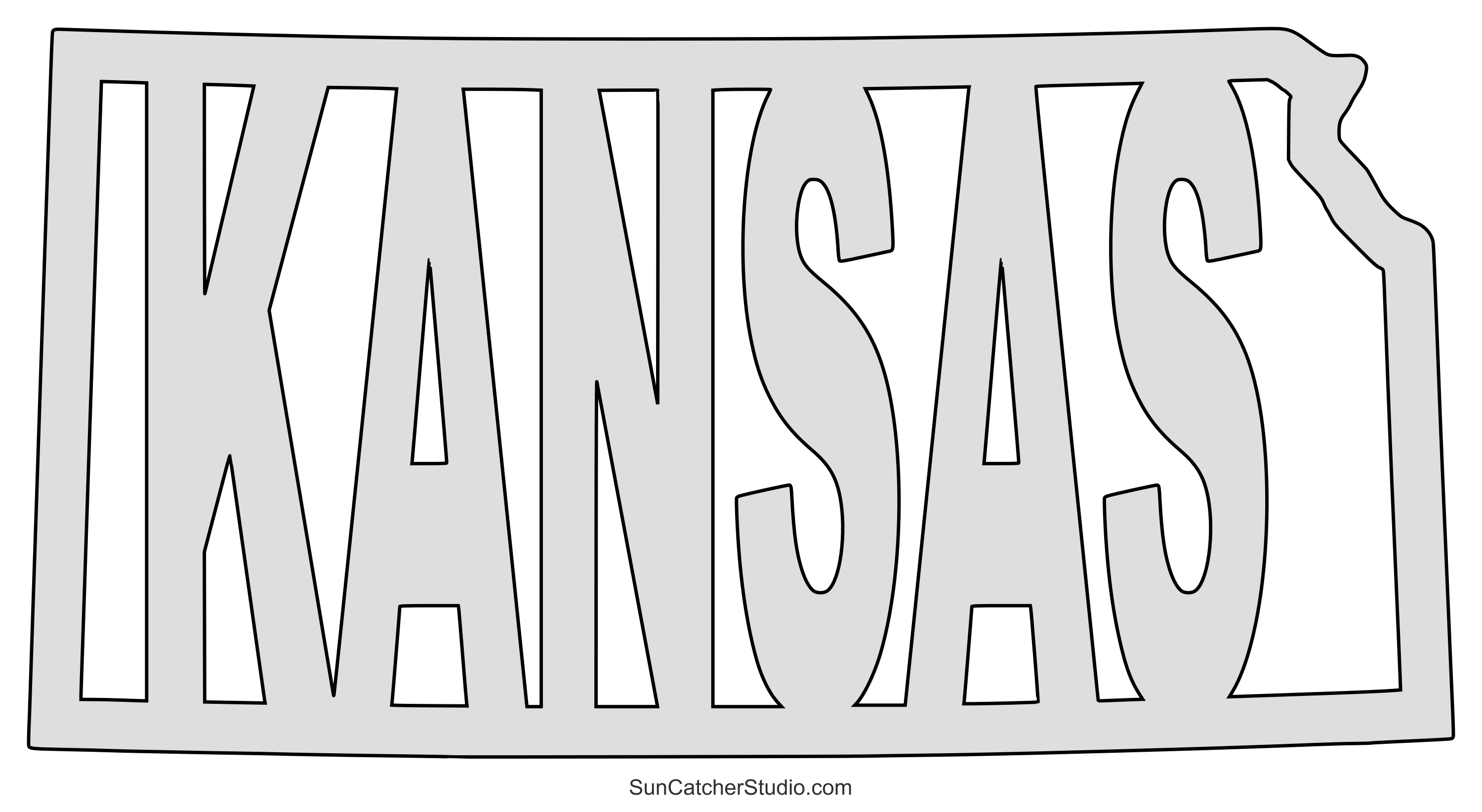Kansas – Map Outline, Printable State, Shape, Stencil, Pattern