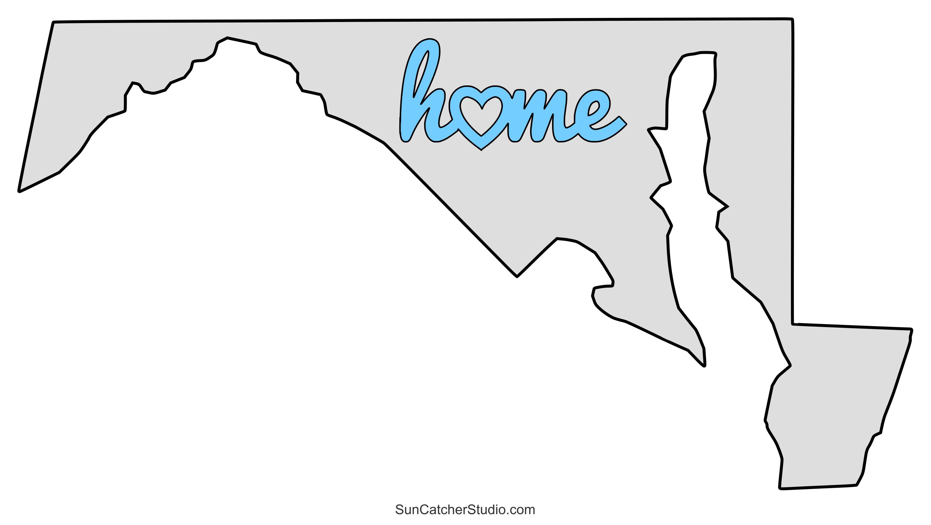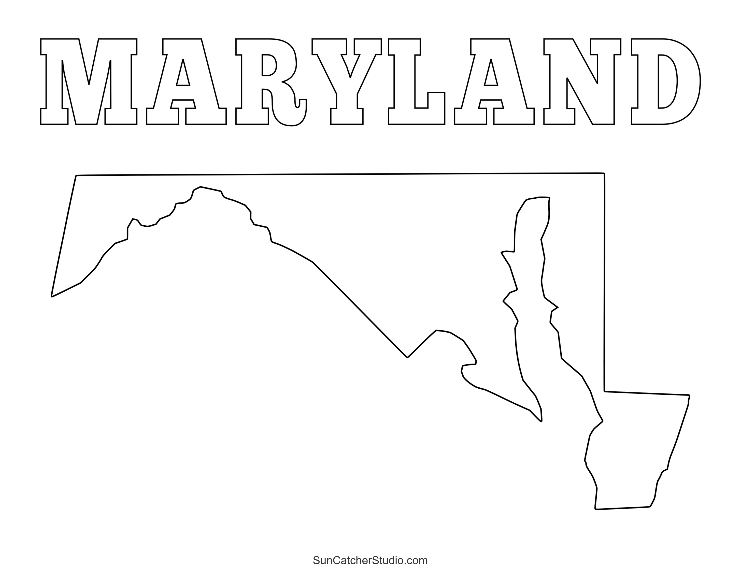 Maryland – Map Outline, Printable State, Shape, Stencil, Pattern