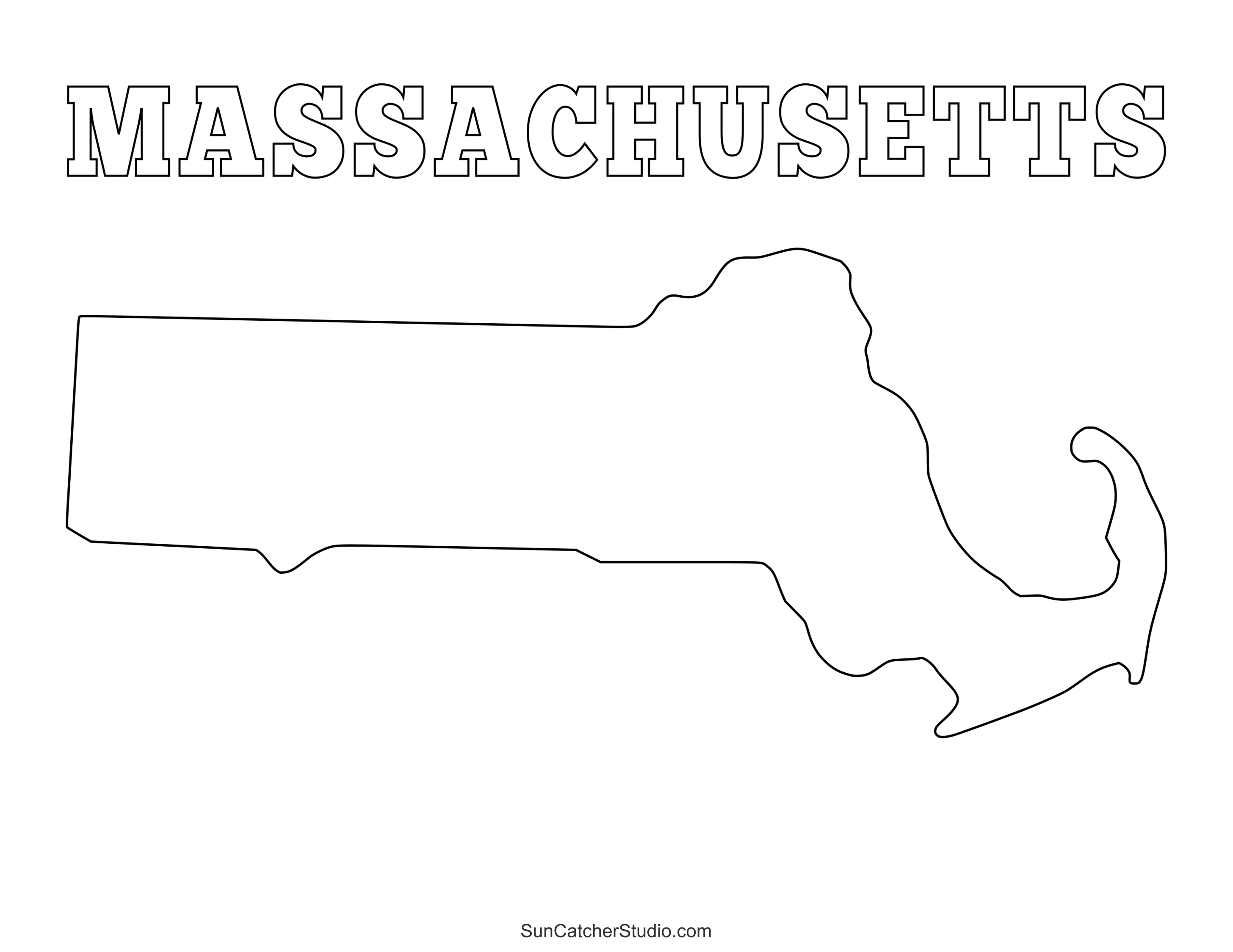 Massachusetts – Map Outline, Printable State, Shape, Stencil, Pattern