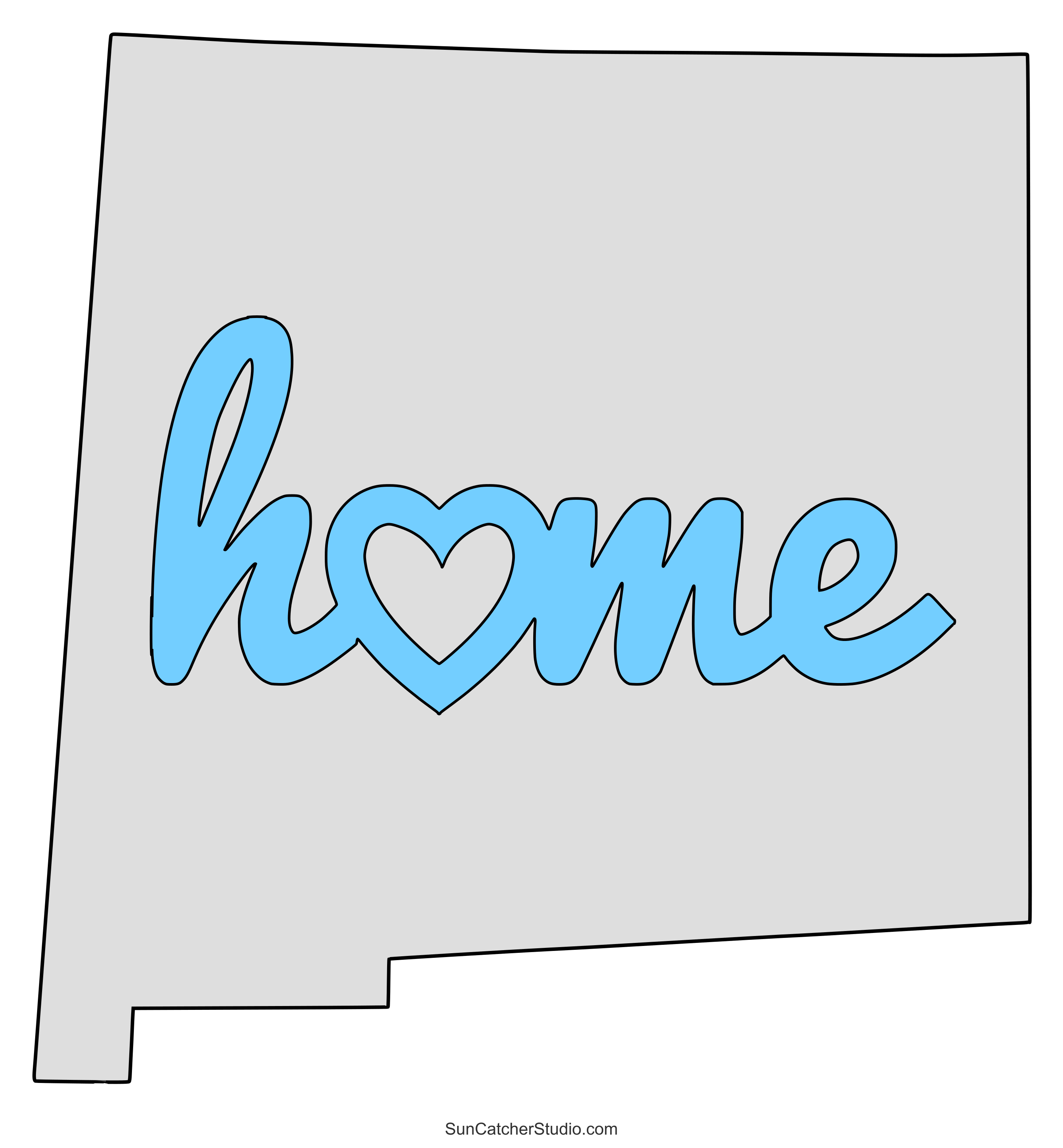 New Mexico home stencil, pattern, shape, state, clip art, outline printable New Mexico template, downloadable,