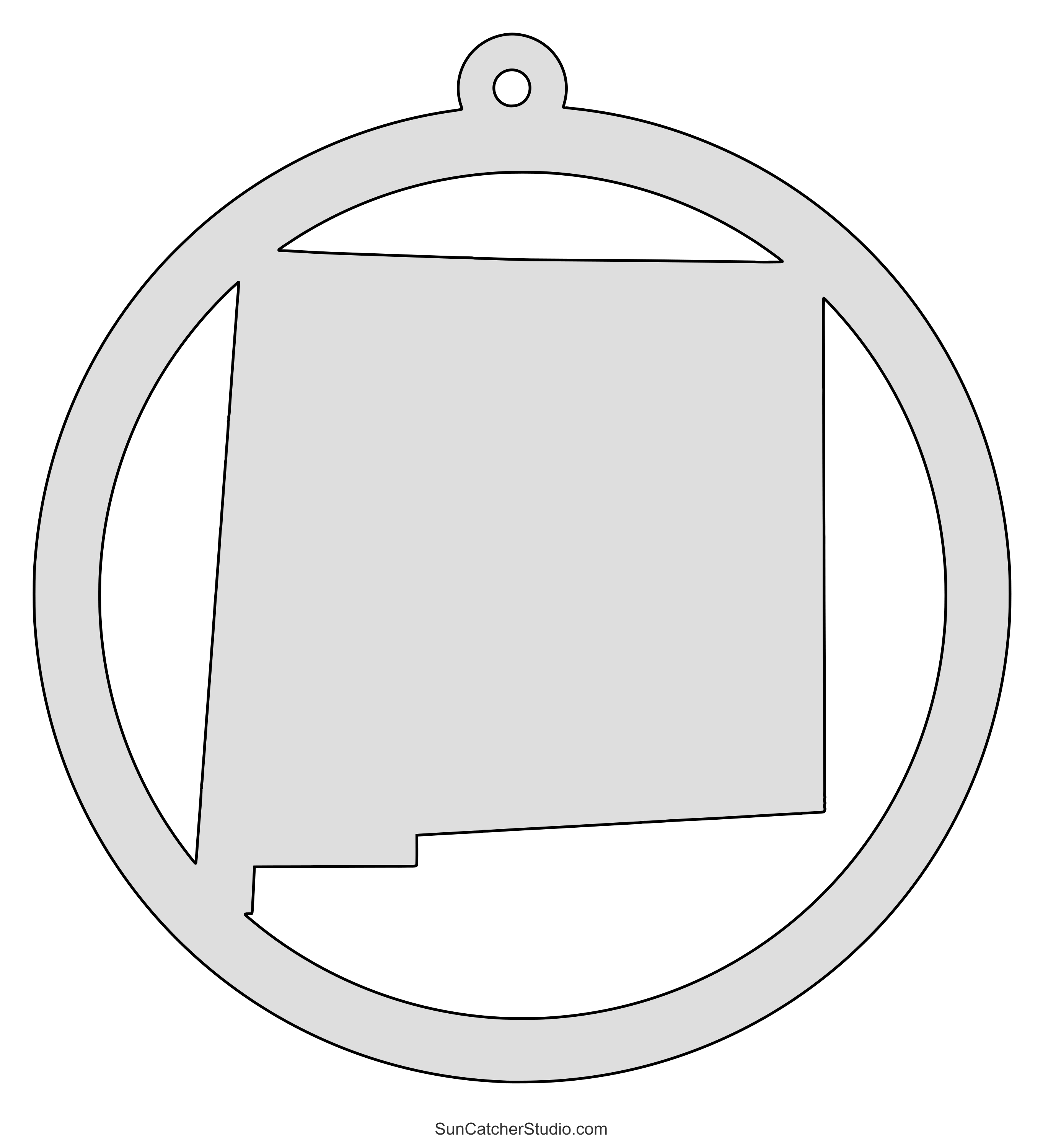 New Mexico map inside circle, state, stencil, clip art, scroll saw pattern, printable downloadable free template, laser cutting, vector graphic, silhouette or cricut design.