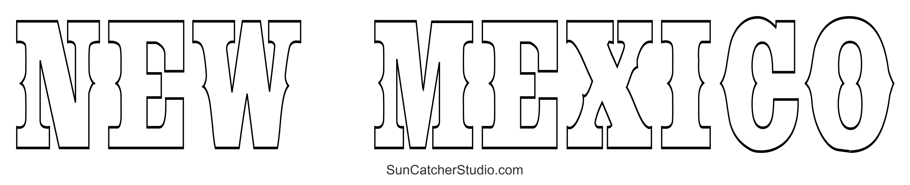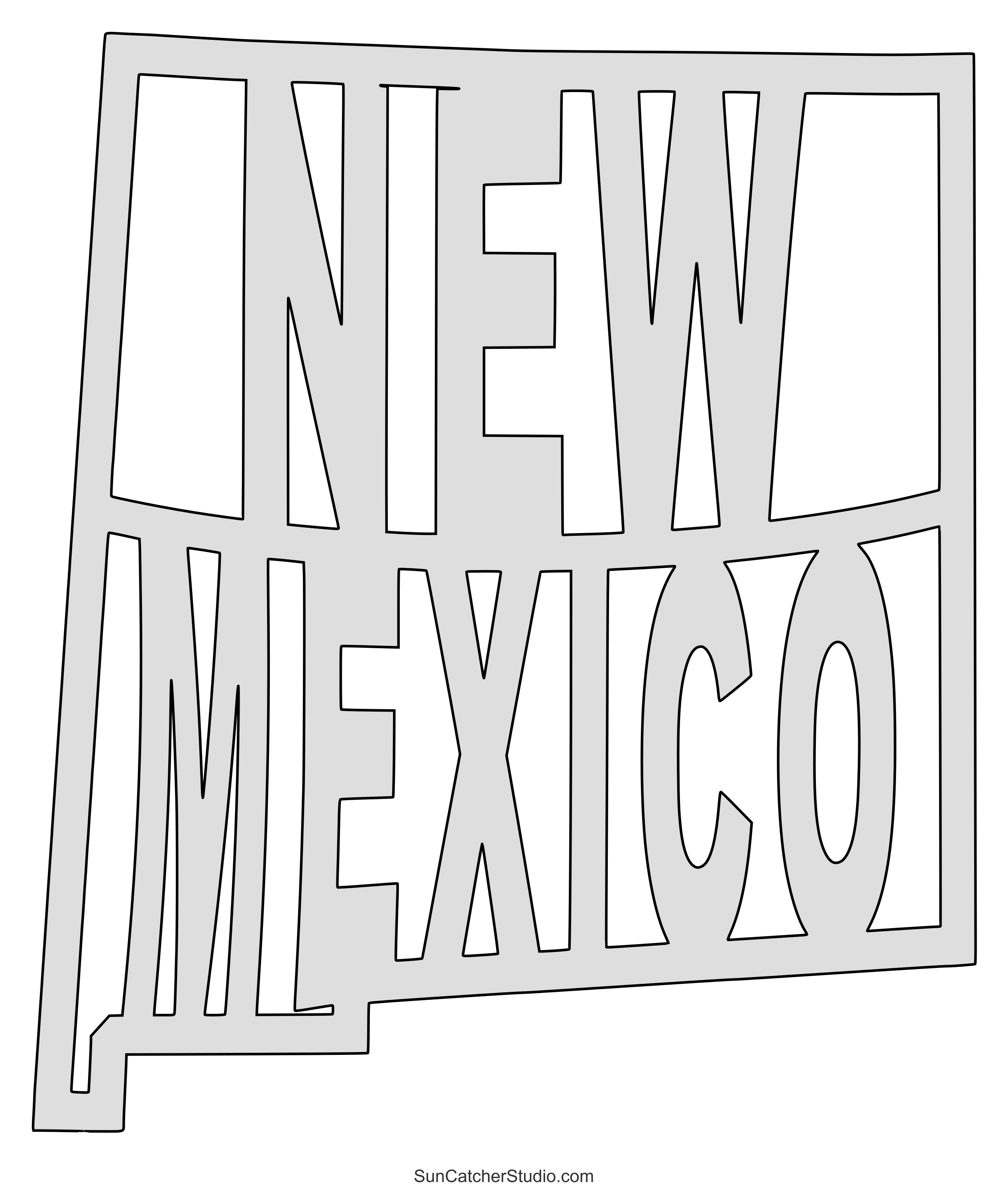 New Mexico map outline shape state stencil clip art scroll saw pattern printable downloadable free template, laser cutting, vector graphic.