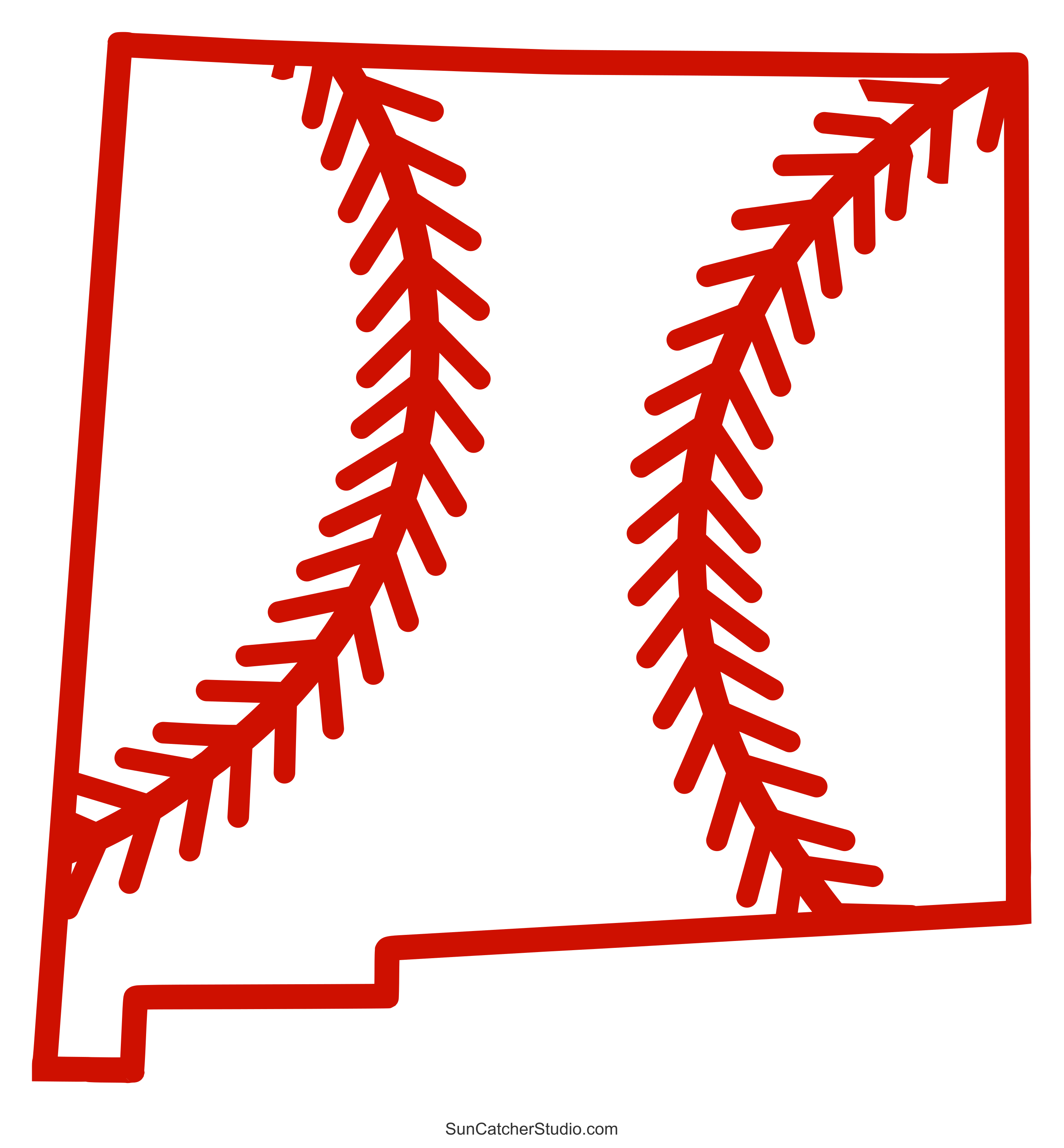 New Mexico outline with baseball stitches or softball stitches, free, printable, cricut or Silhouette design, vector image, pattern, map shape cutting file.