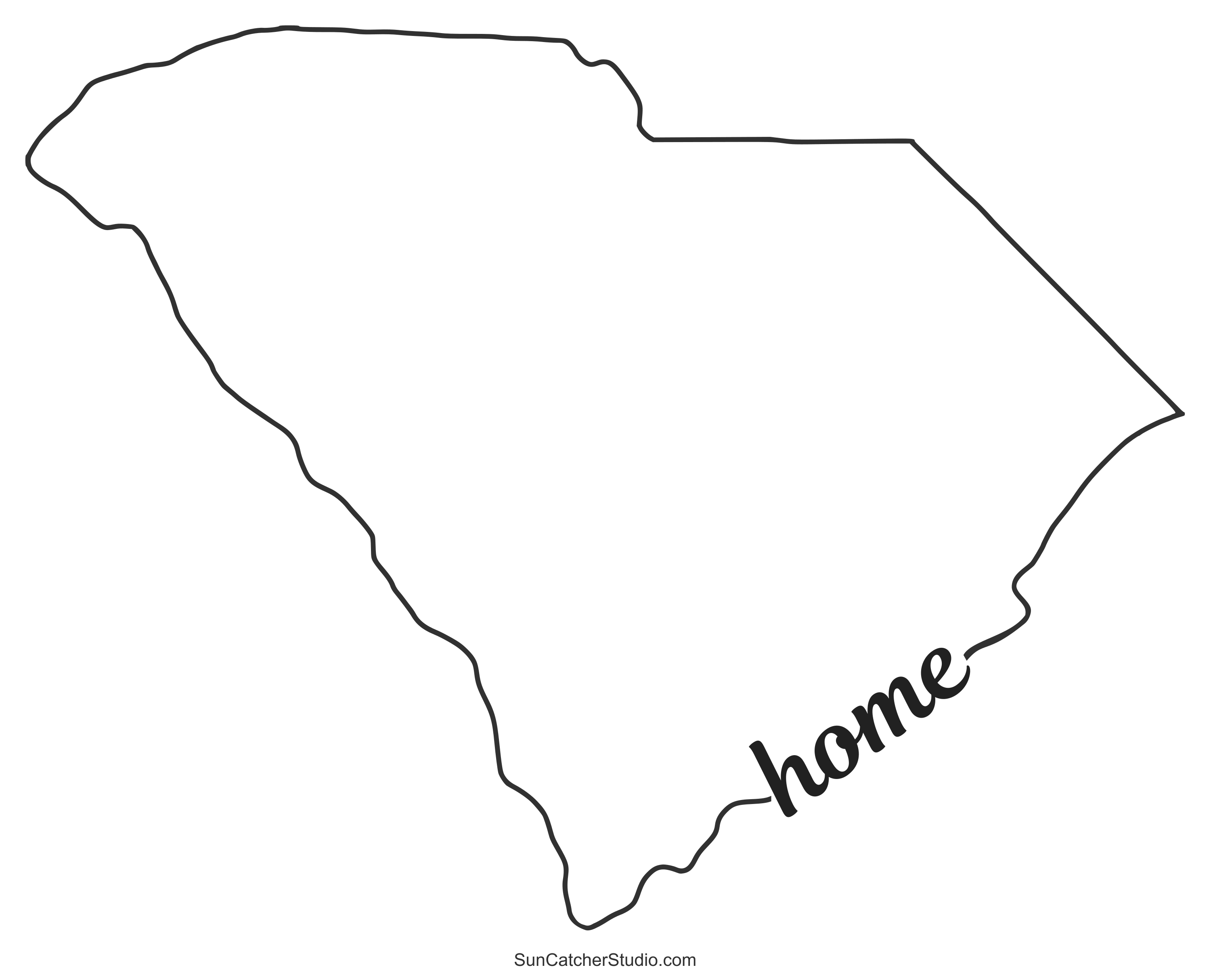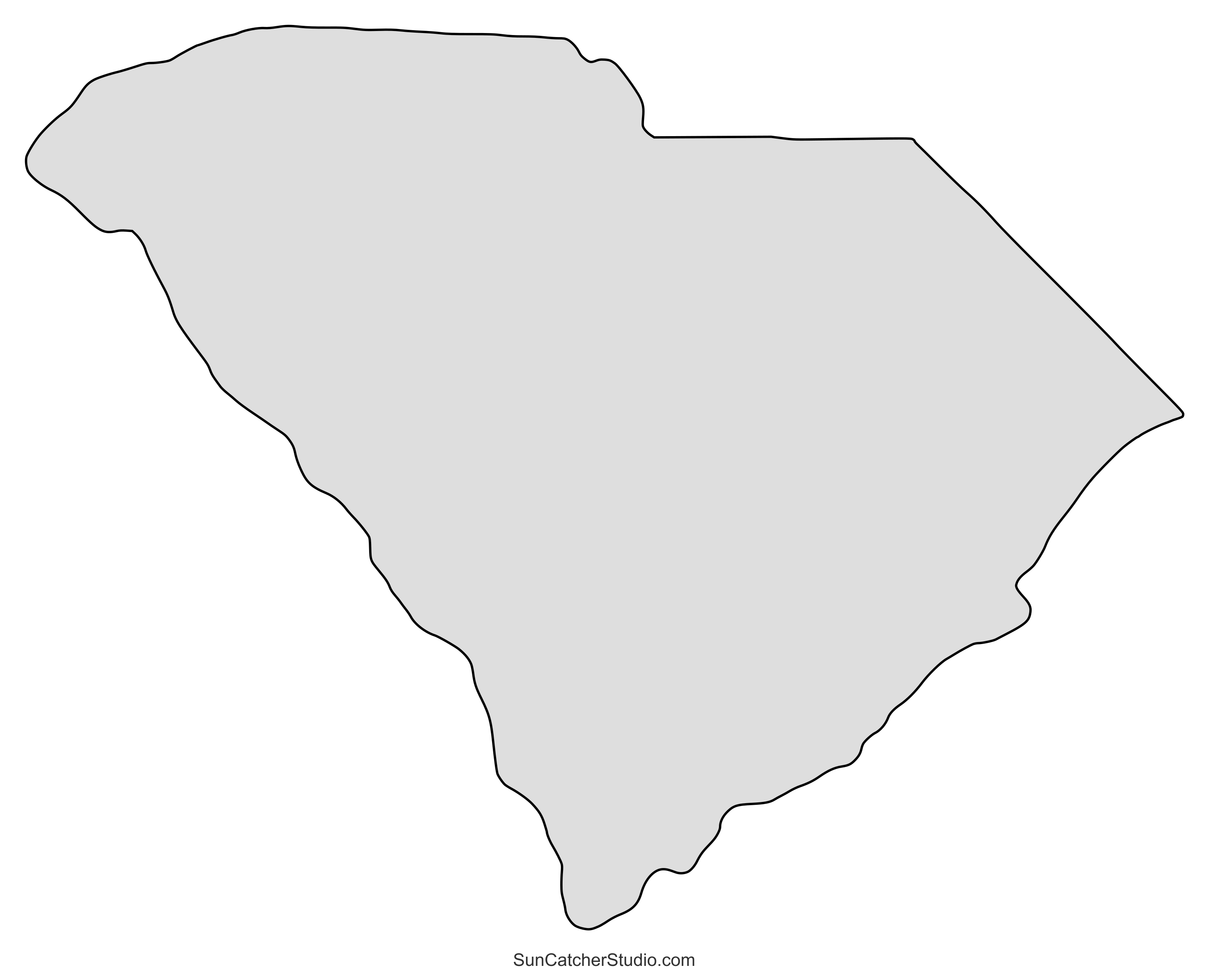 Welcome to the South Carolina Map Outline page. Your free resource for state-shaped templates, stencils, and design patterns. Ideal for crafting, coloring, decorating, or any creative project. Download scalable files in SVG, PNG, and PDF formats. Explore, personalize, and highlight South Carolina in your next DIY or artistic work. Return to Maps of all 50 United States (US) states.