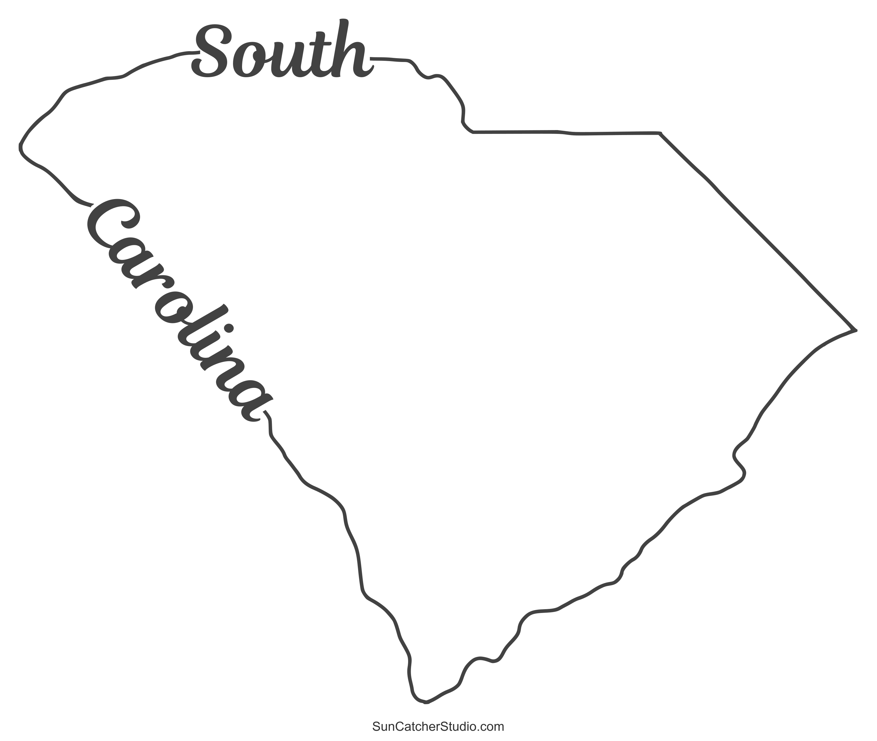 South Carolina – Map Outline, Printable State, Shape, Stencil, Pattern