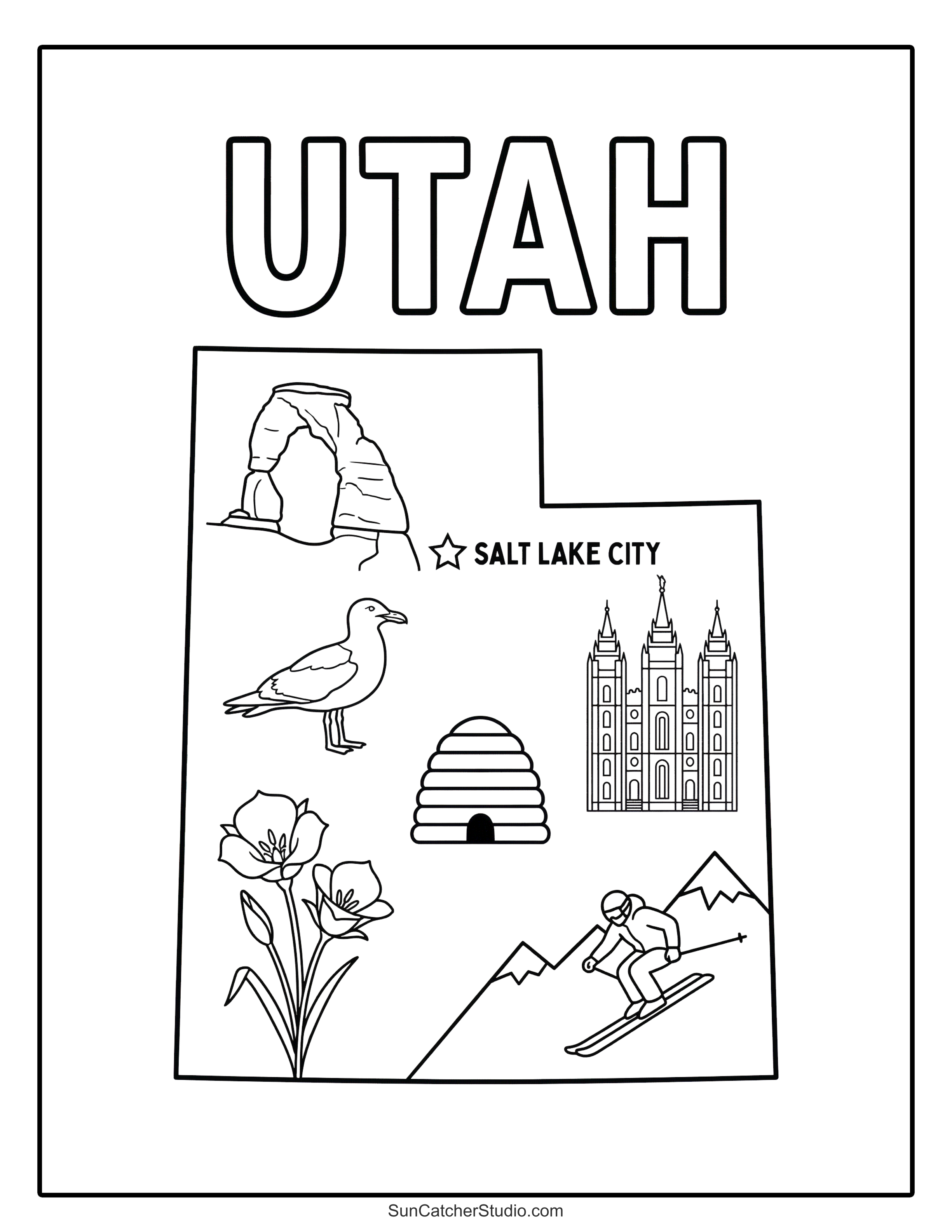 Utah – Map Outline, Printable State, Shape, Stencil, Pattern