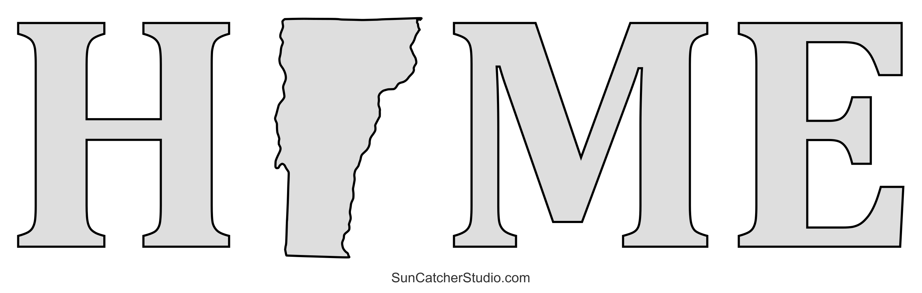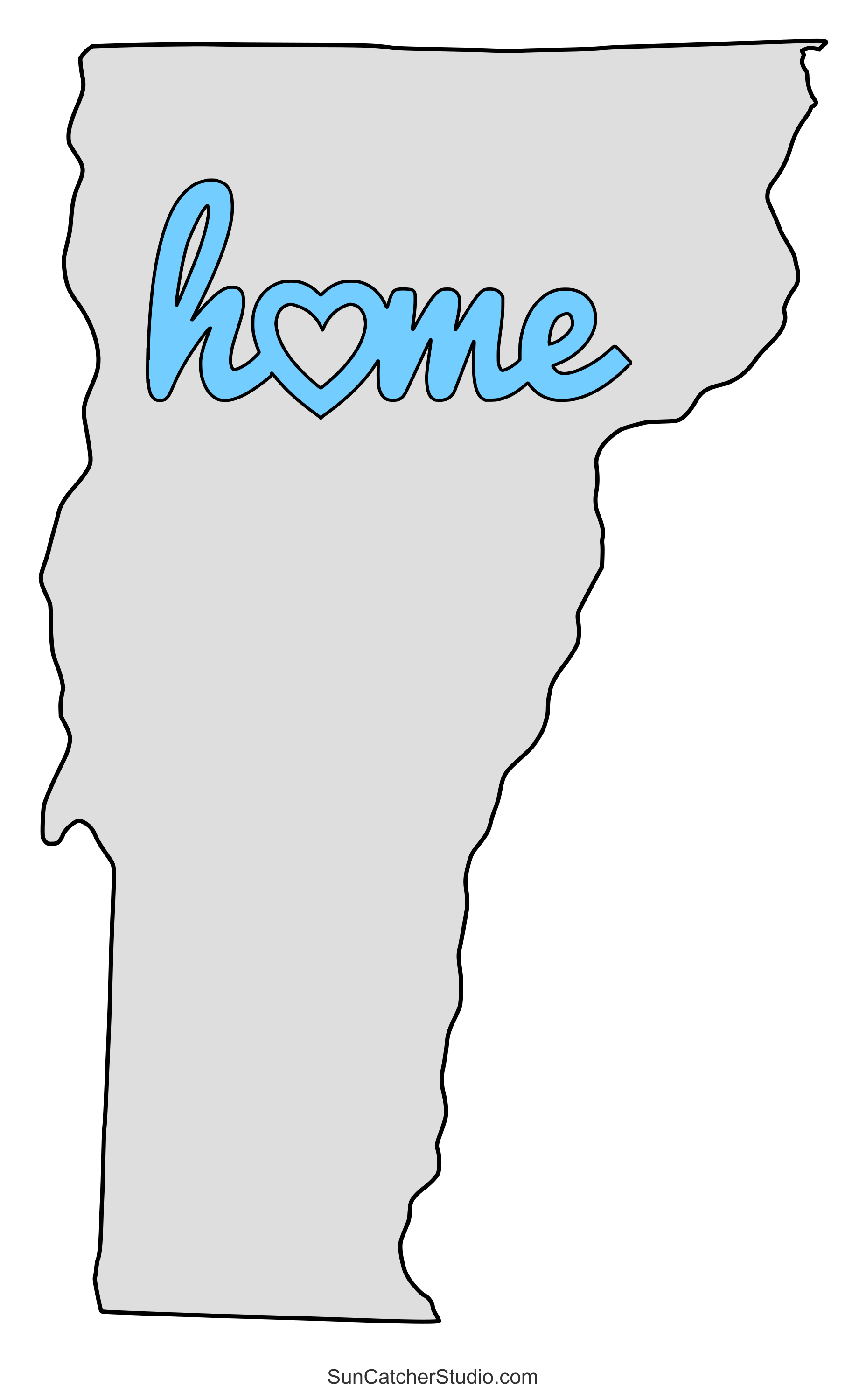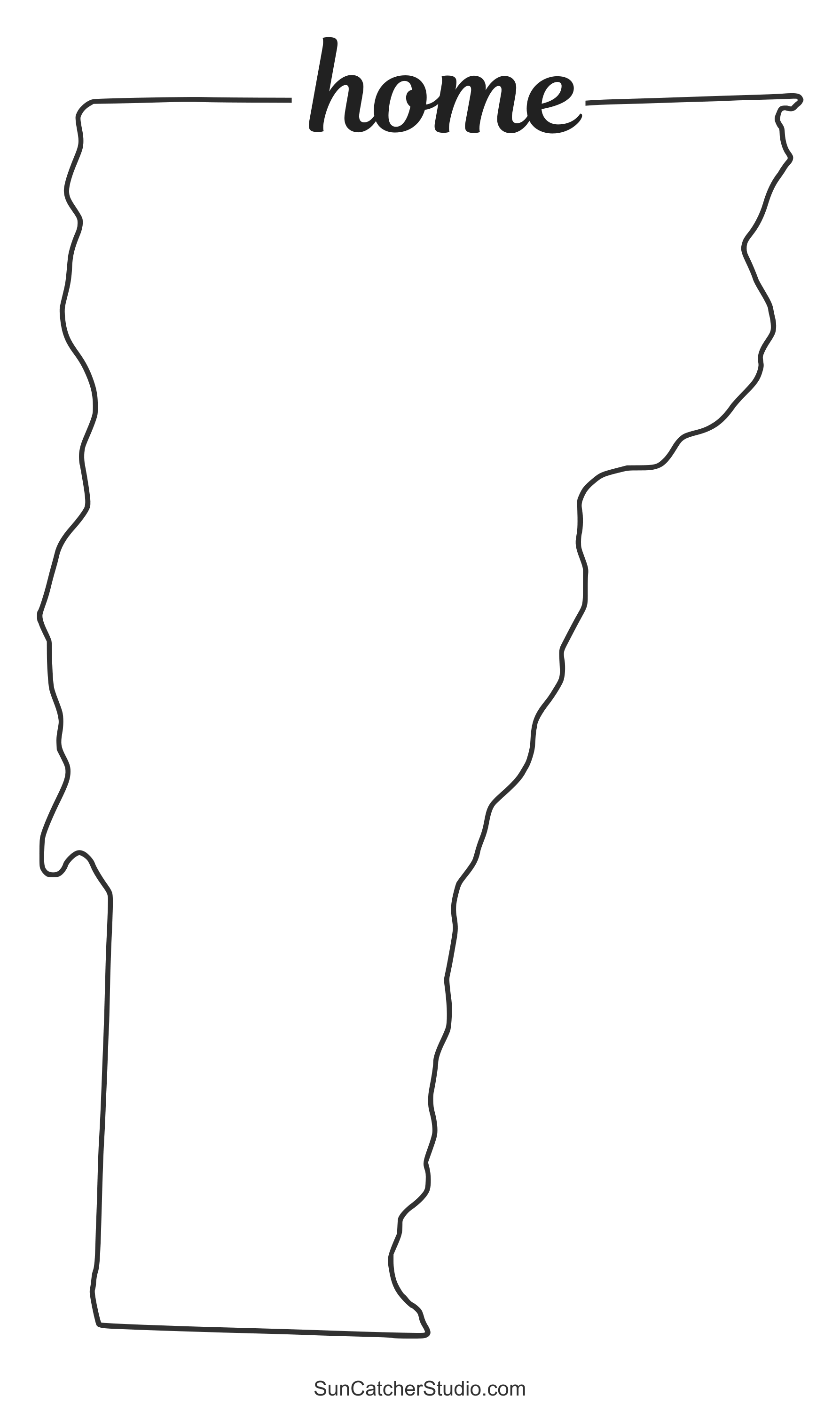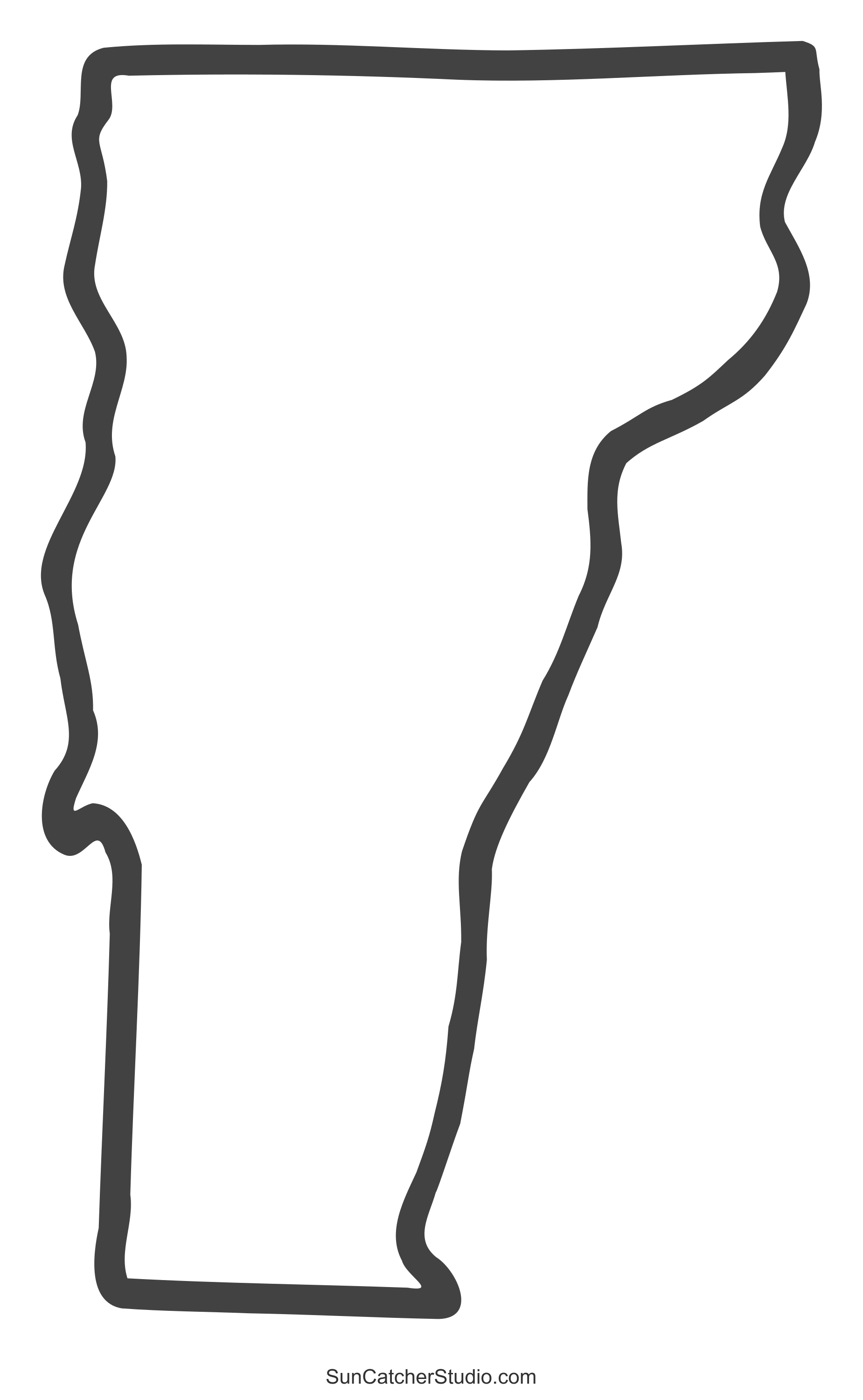 Welcome to the Vermont Map Outline page. Your free resource for state-shaped templates, stencils, and design patterns. Ideal for crafting, coloring, decorating, or any creative project. Download scalable files in SVG, PNG, and PDF formats. Explore, personalize, and highlight Vermont in your next DIY or artistic work. Return to Maps of all 50 United States (US) states.