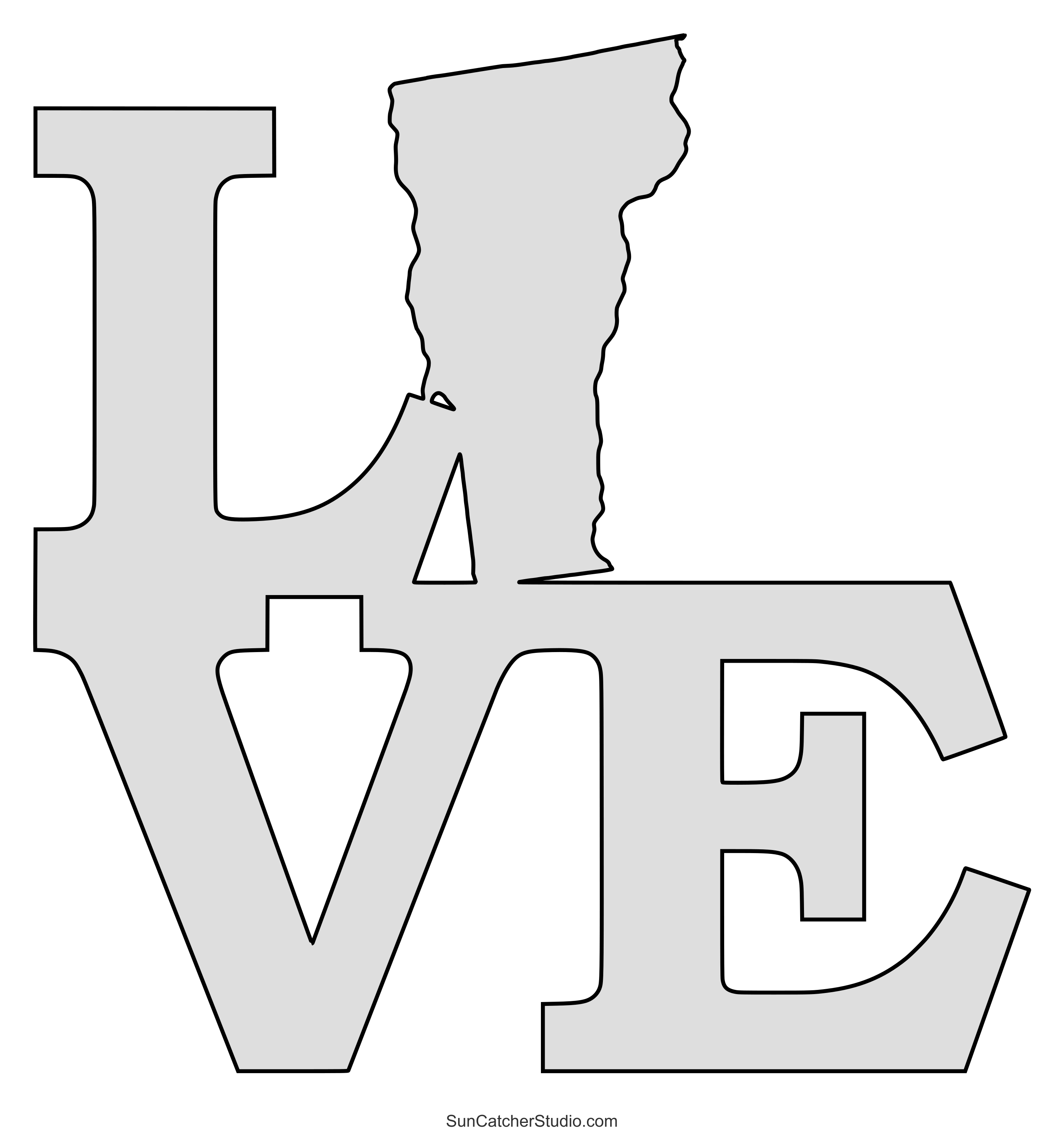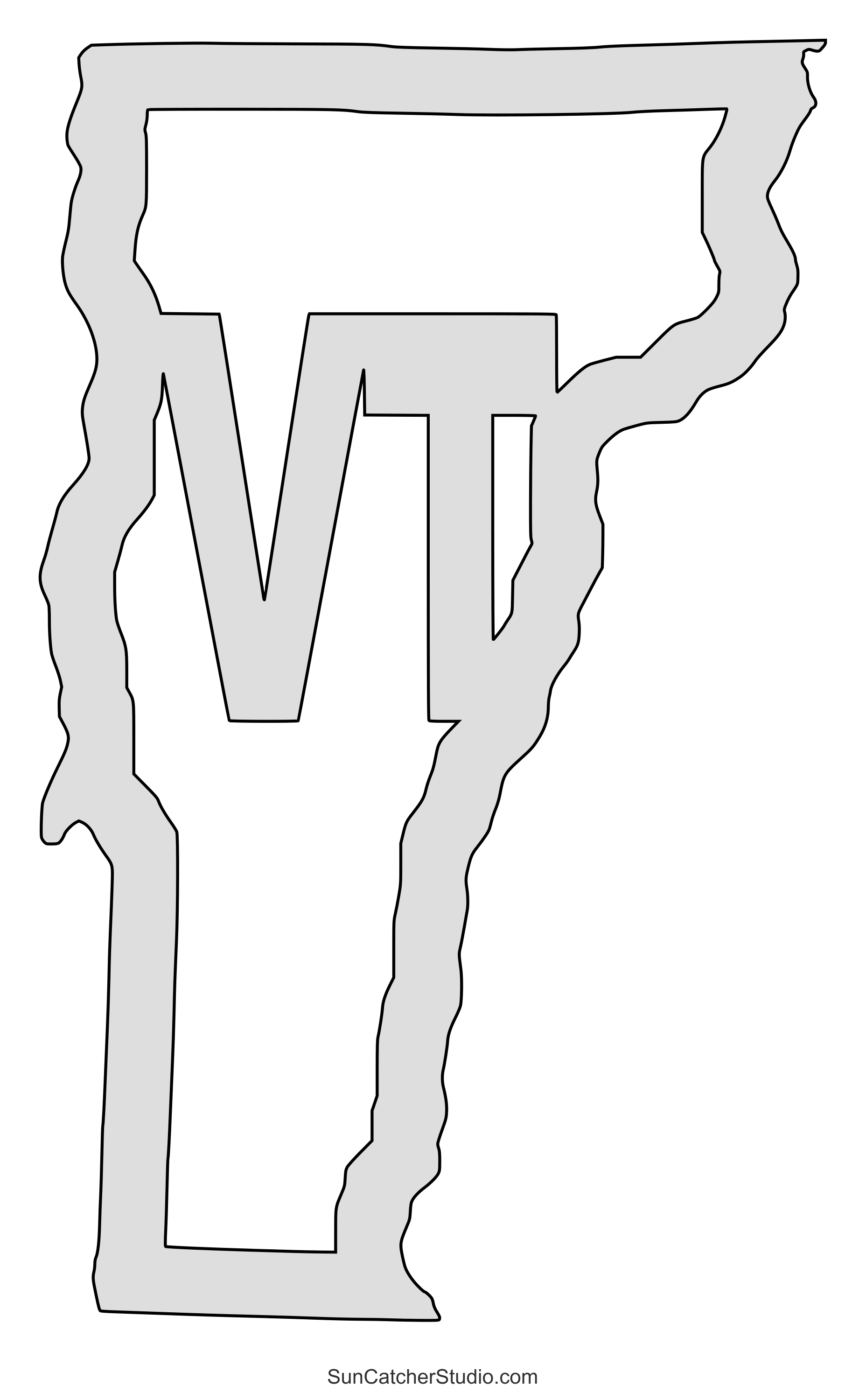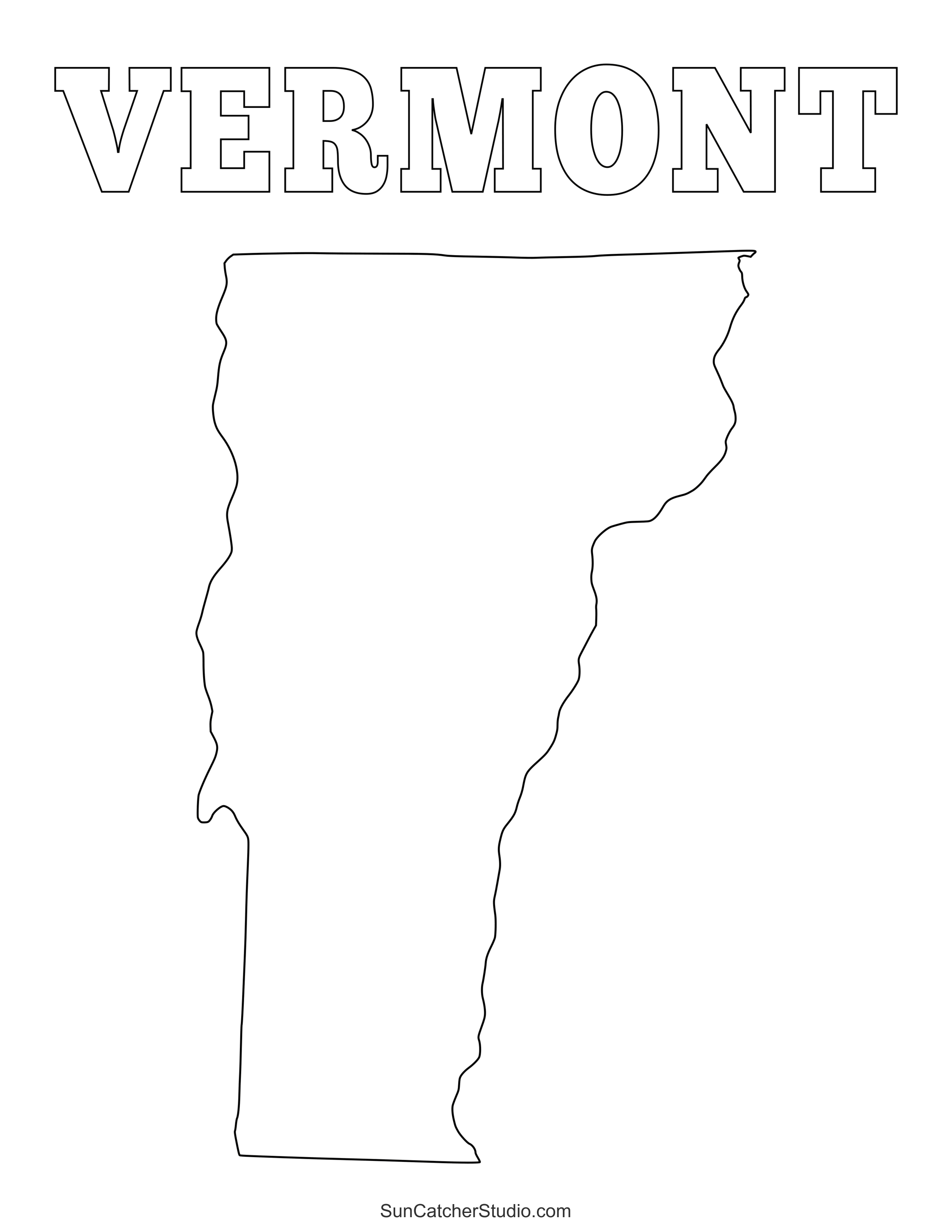 Vermont – Map Outline, Printable State, Shape, Stencil, Pattern