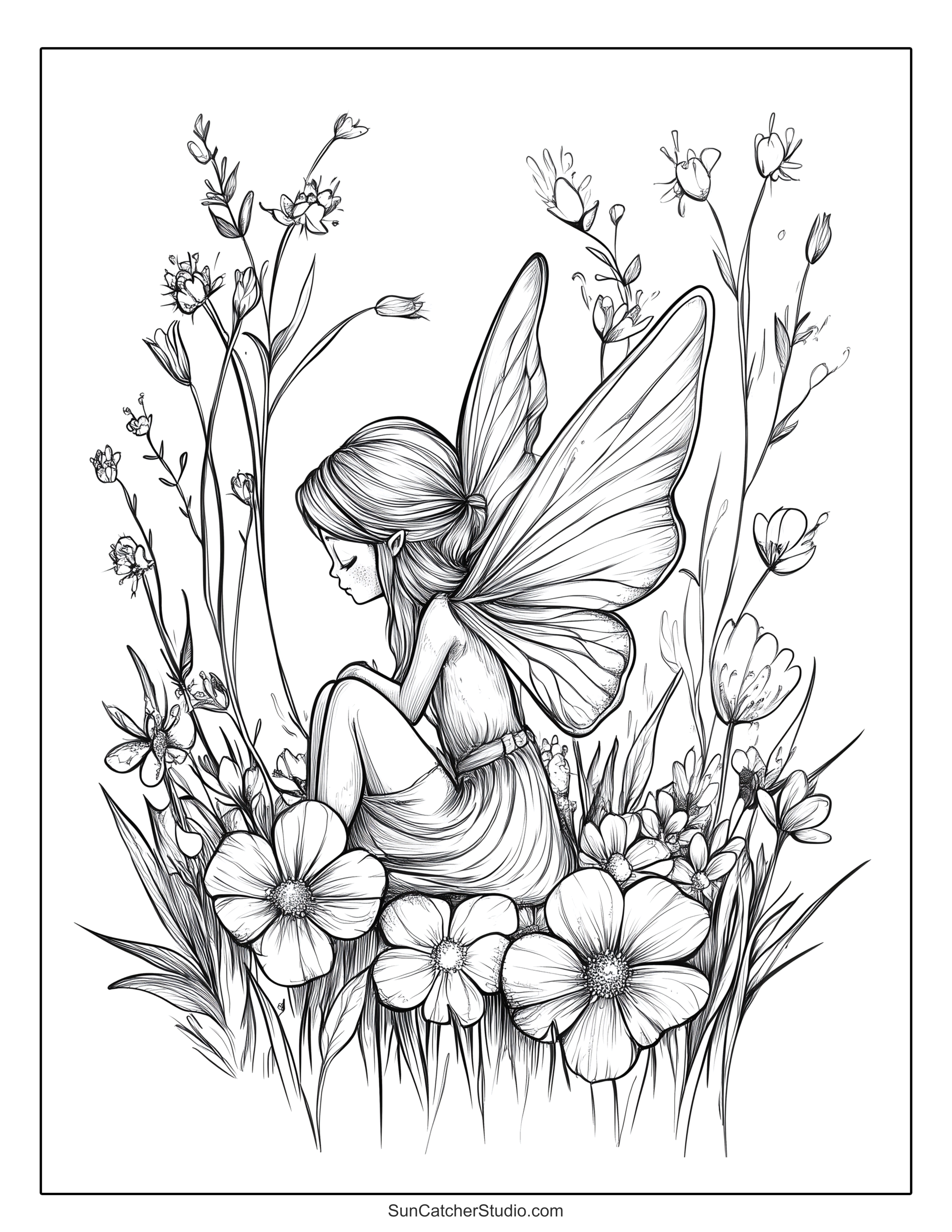 Fairy coloring pages, fairy coloring sheets, color, coloring page, coloring, fairy, fairies, page, DIY, sheet, printable, free, book, pictures to color, easy, children, adult, print, download, pdf.