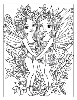 7. Enchanting fairy sisters in a magical garden. Fairy coloring page, fairy coloring sheet, color, coloring page, coloring, page, sheet, fairy, fairies, printable, free, book, pictures to color, easy, children, adult, print, download, pdf.