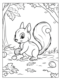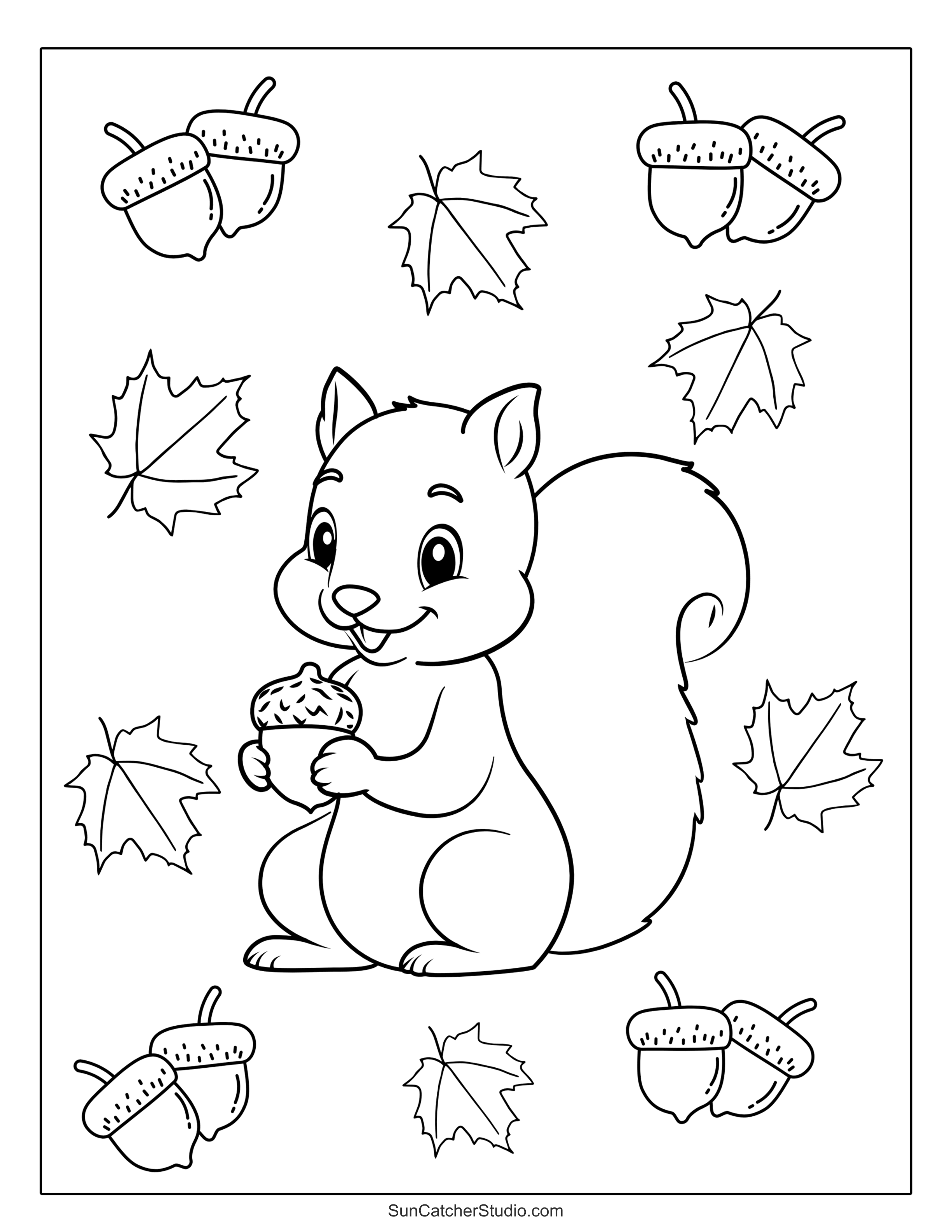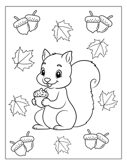 - 3. Printable fall coloring sheet (squirrel with a nut).
