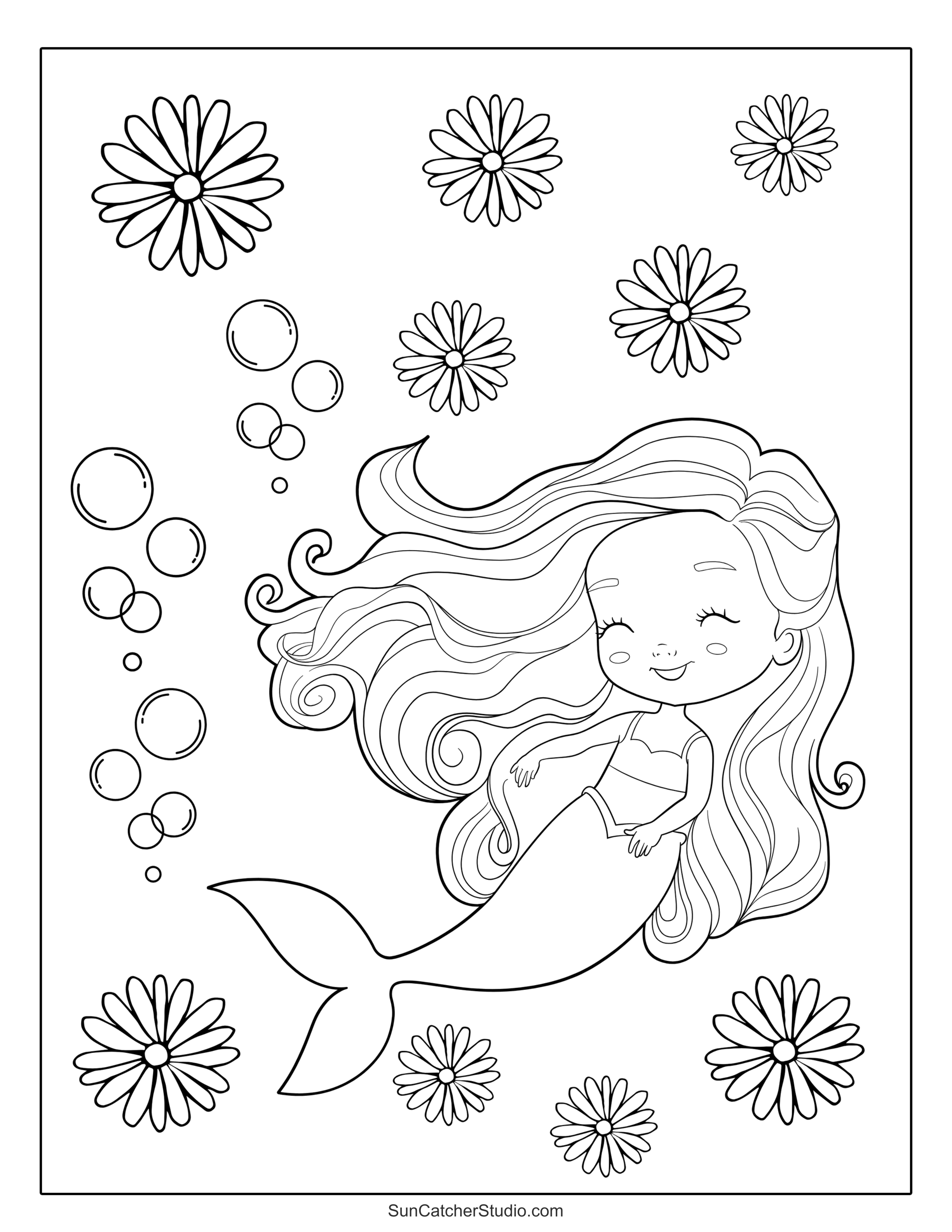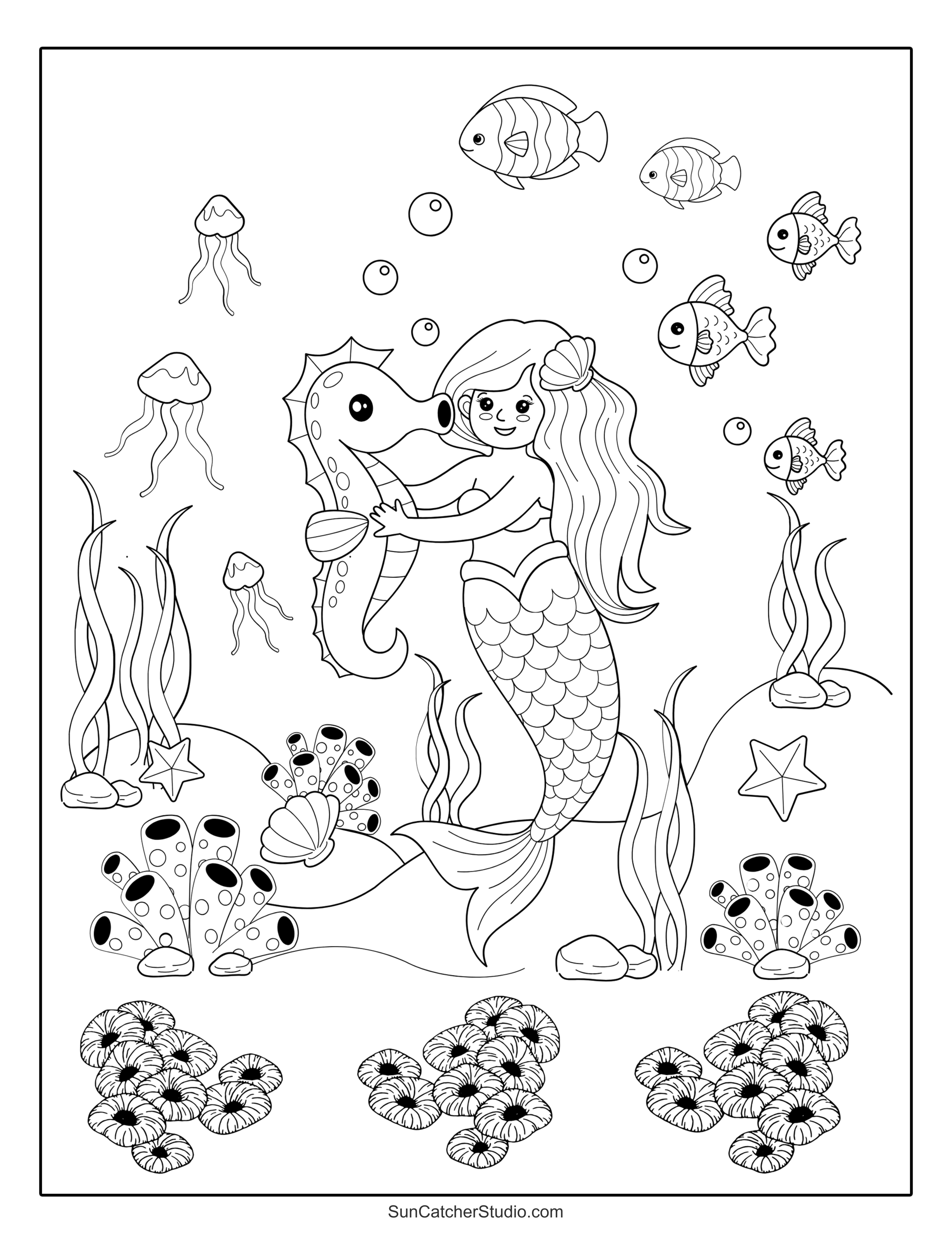 Grab your colored pencils, markers, or crayons, and bring enchanting mermaid scenes to life with your creativity and vibrant colors!