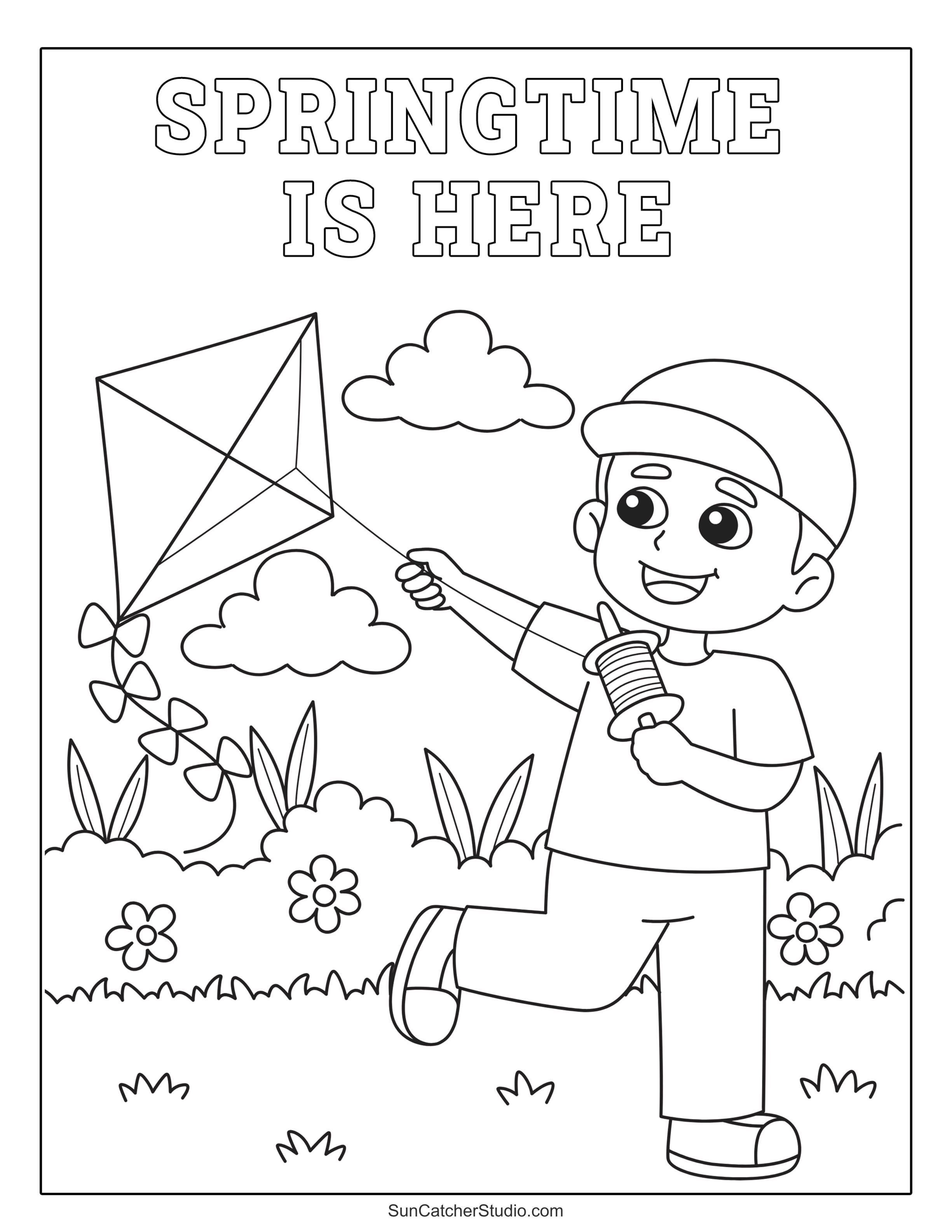 3. Printable "Springtime is here" coloring sheet. Spring coloring page, coloring sheet, color, coloring, page, sheet, printable, free, book, pictures to color, easy, children, adult, print, download, pdf.