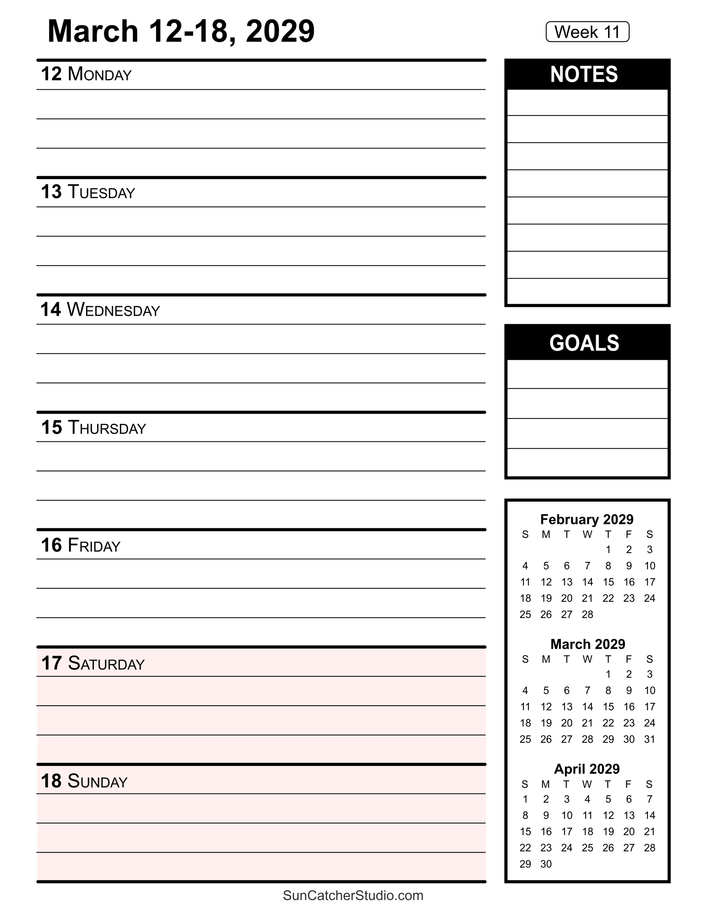 - Week 11: March 12-18, 2029