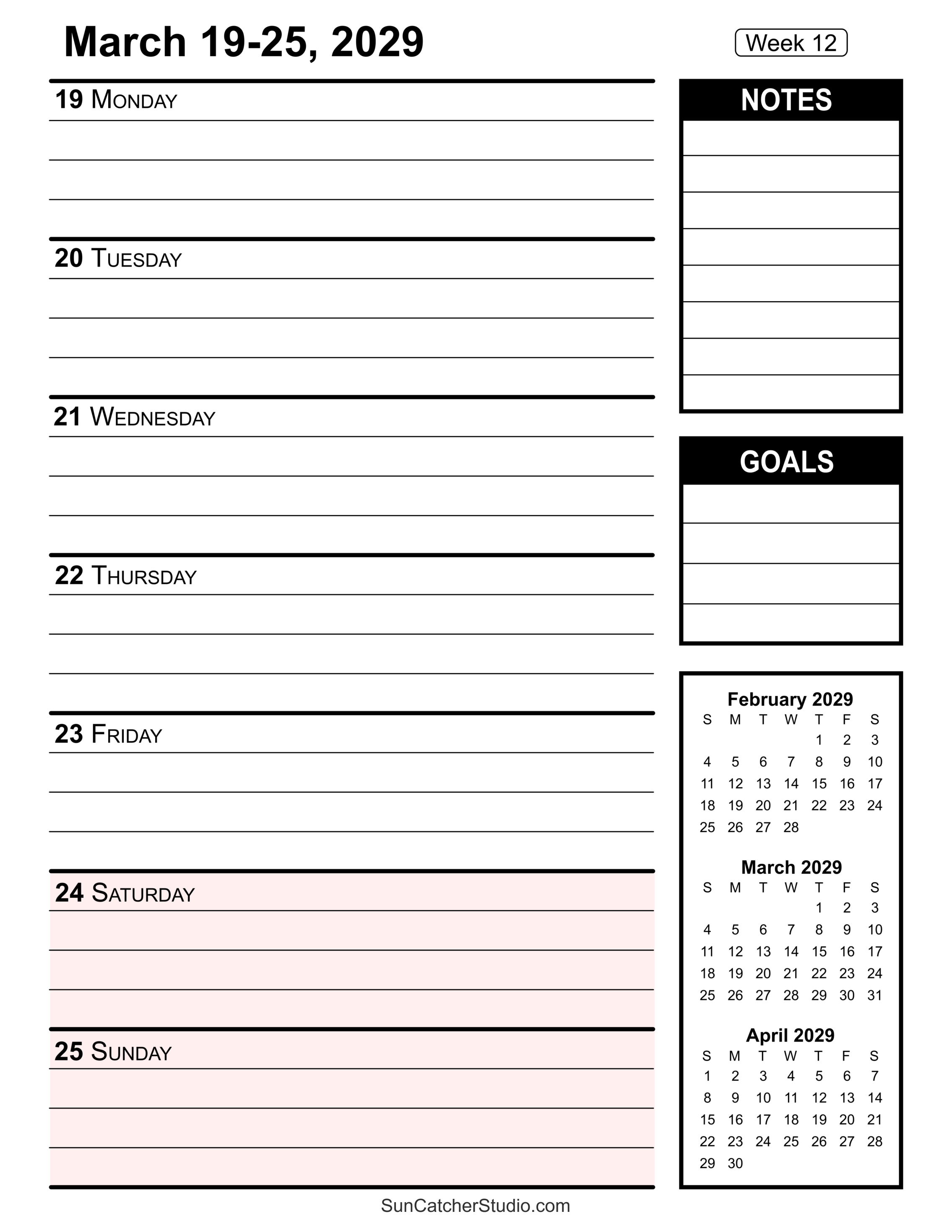 - Week 12: March 19-25, 2029