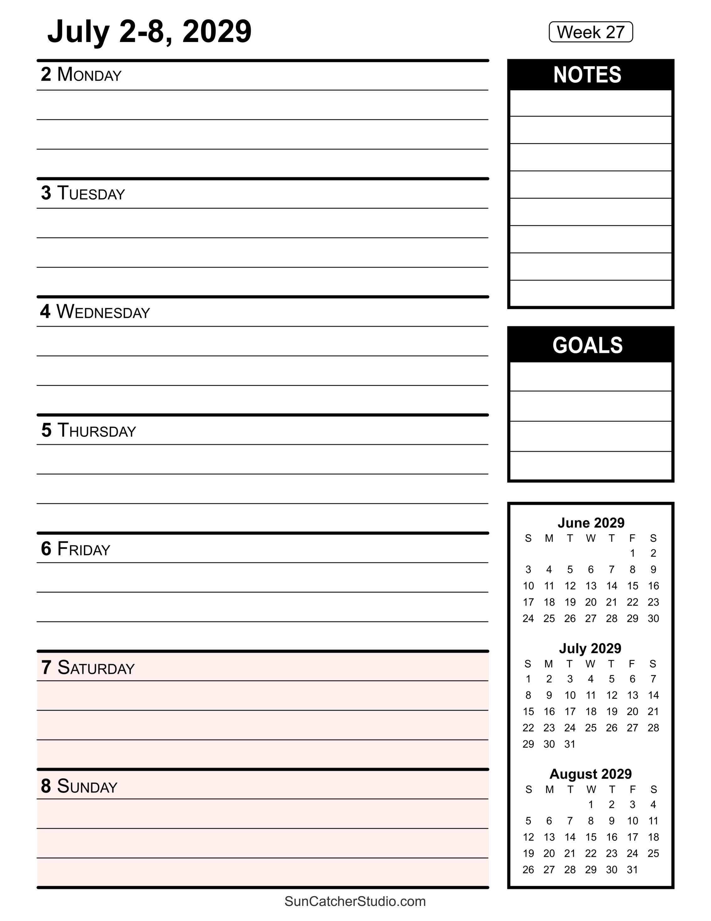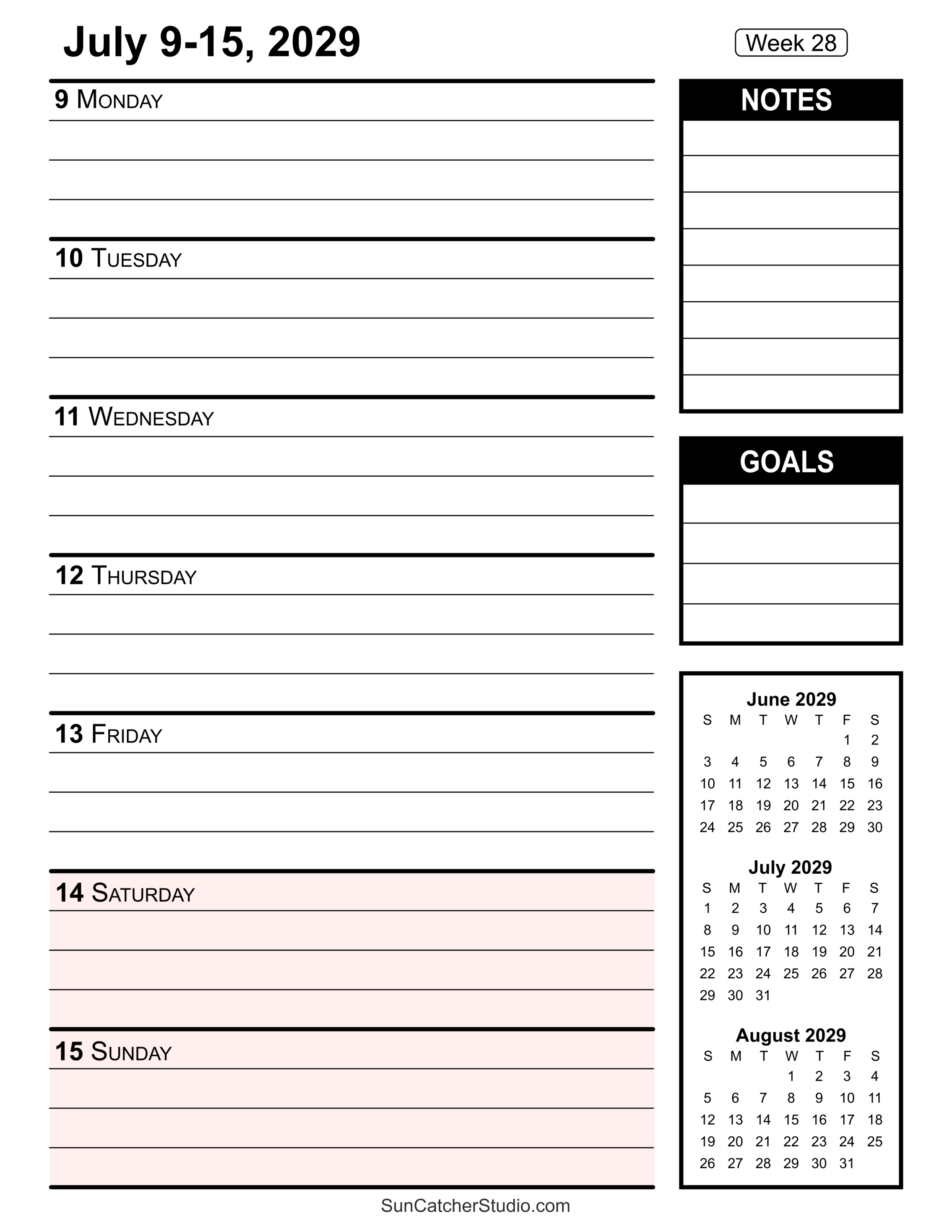 Our free printable 2029 weekly calendars will help you stay organized. Easily plan all your appointments, deadlines, birthdays, projects, and important dates, week by week, using these handy resources. For additional ideas see printable paper and more calendars.