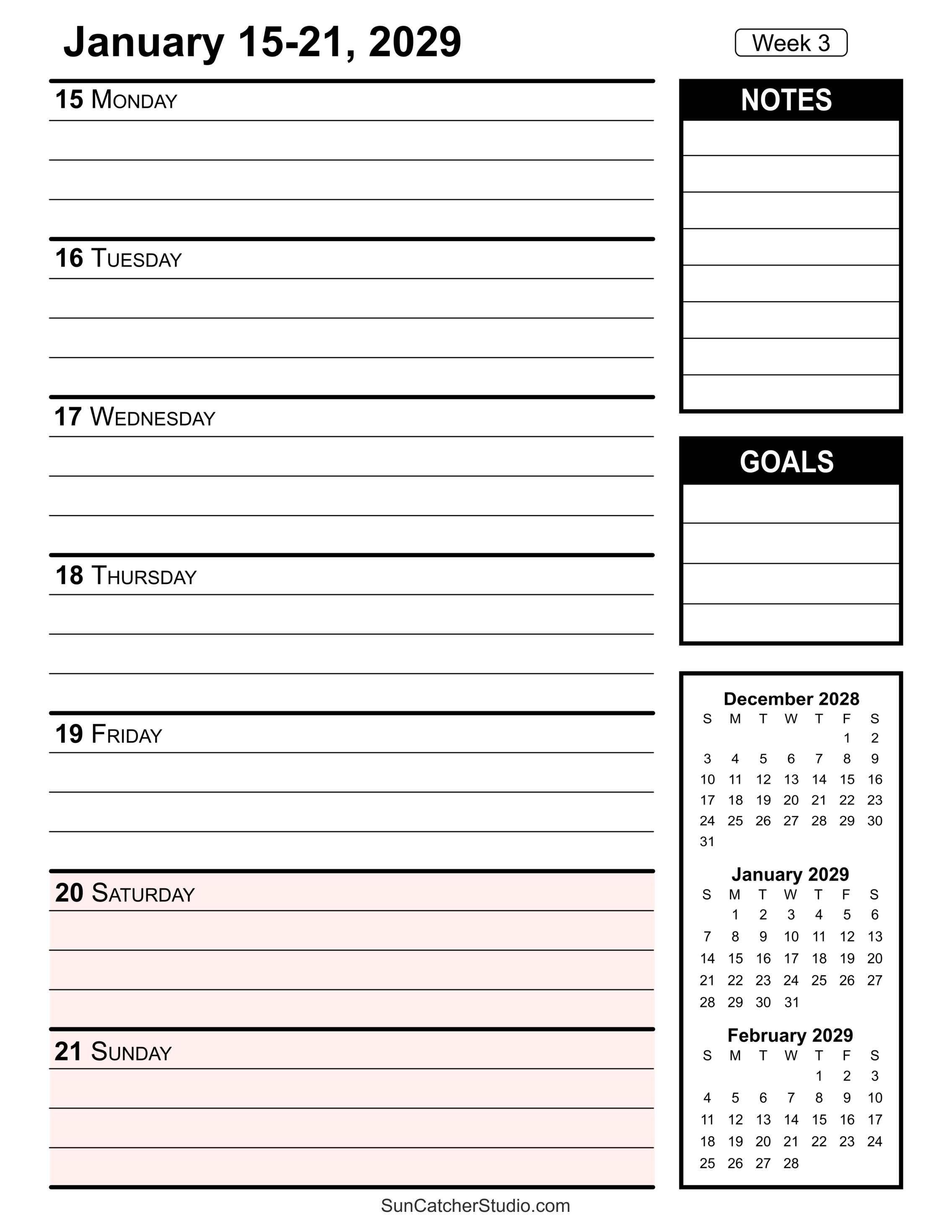 - Week 3: January 15-21, 2029