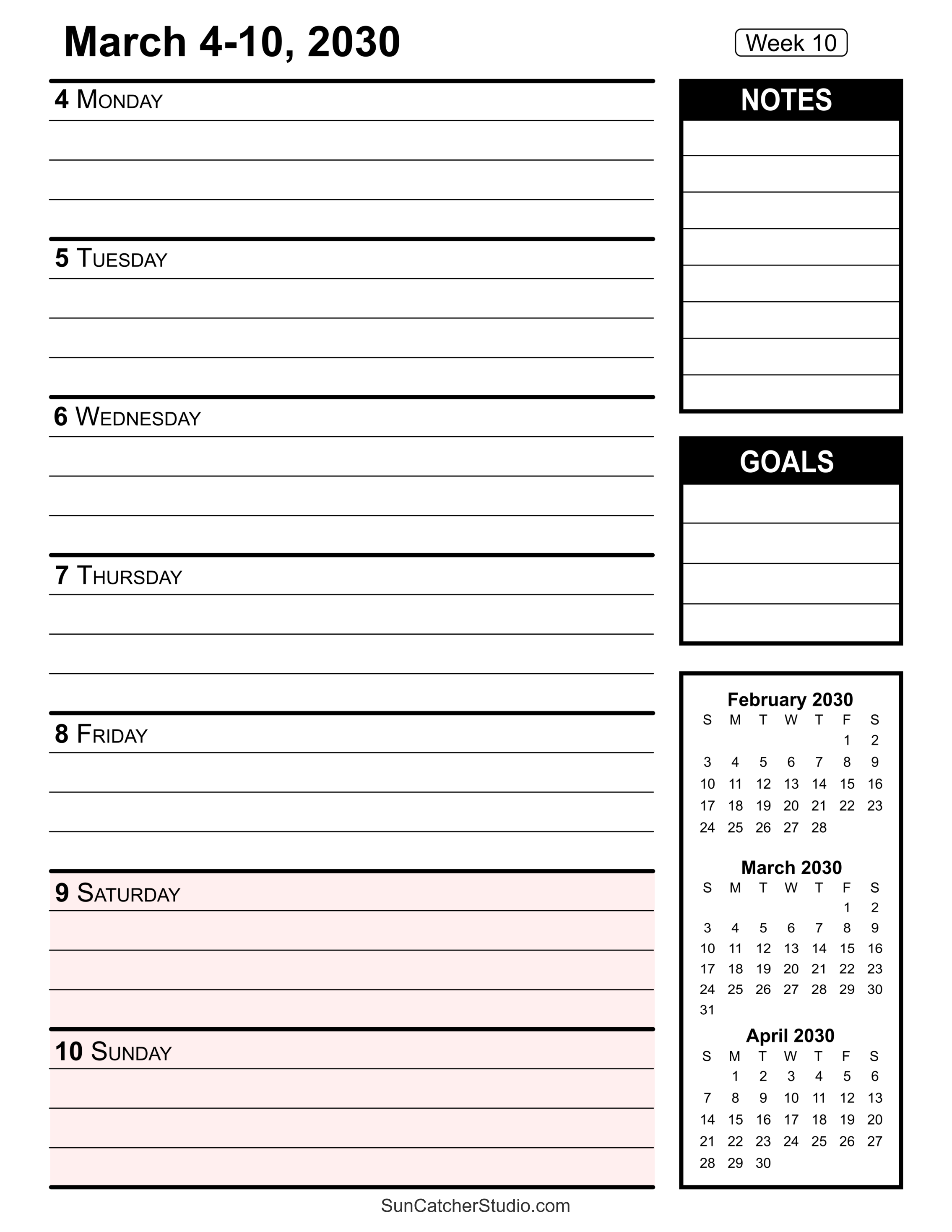 - Week 10: March 4-10, 2030