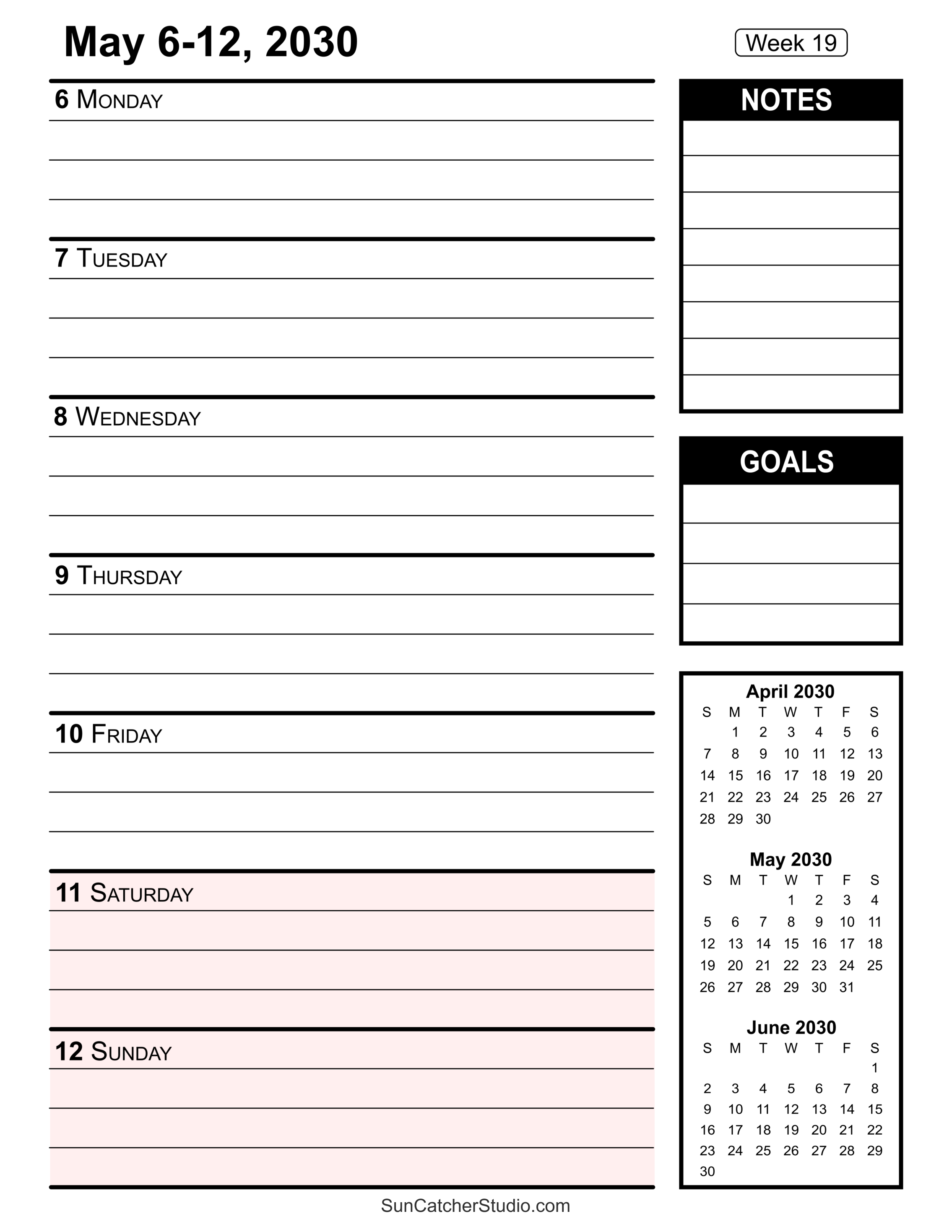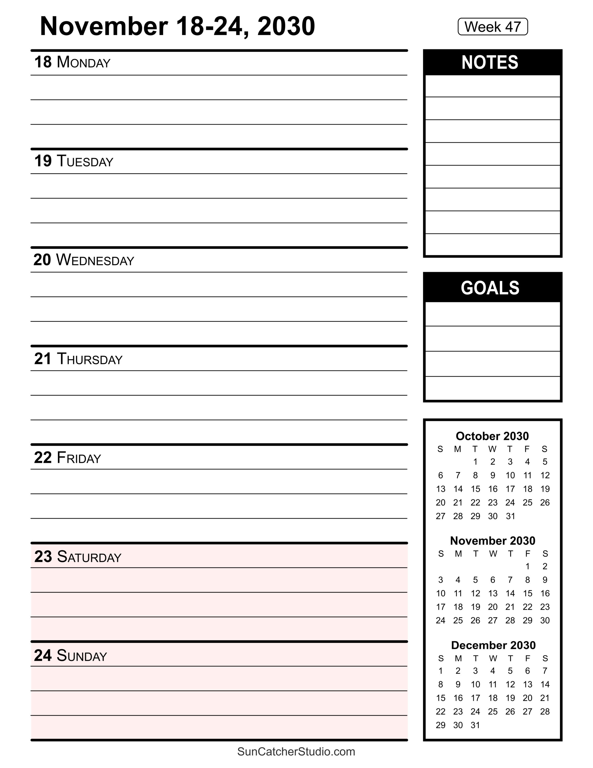 Our free printable 2030 weekly calendars will help you stay organized. Easily plan all your appointments, deadlines, birthdays, projects, and important dates, week by week, using these handy resources. For additional ideas see printable paper and more calendars.