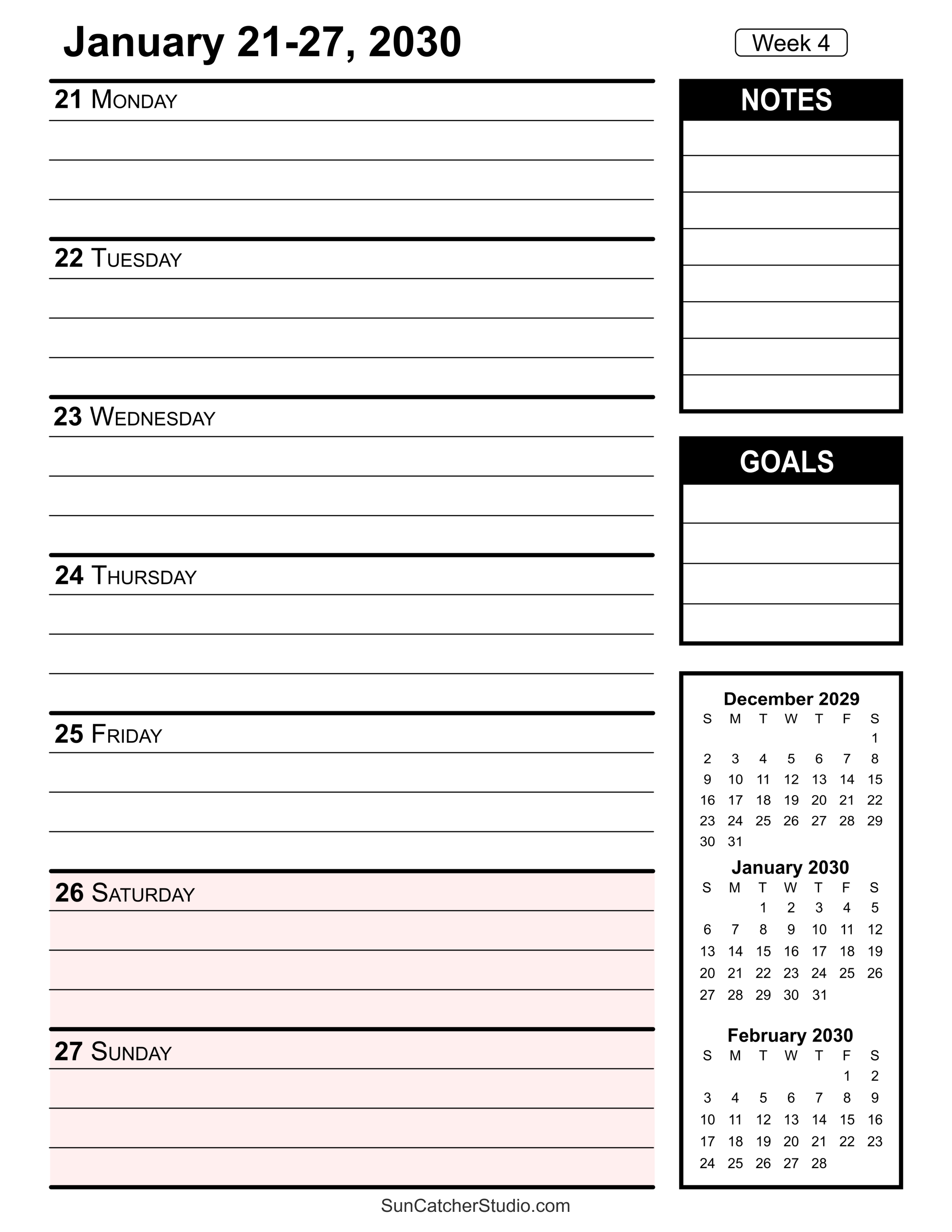 - Week 4: January 21-27, 2030