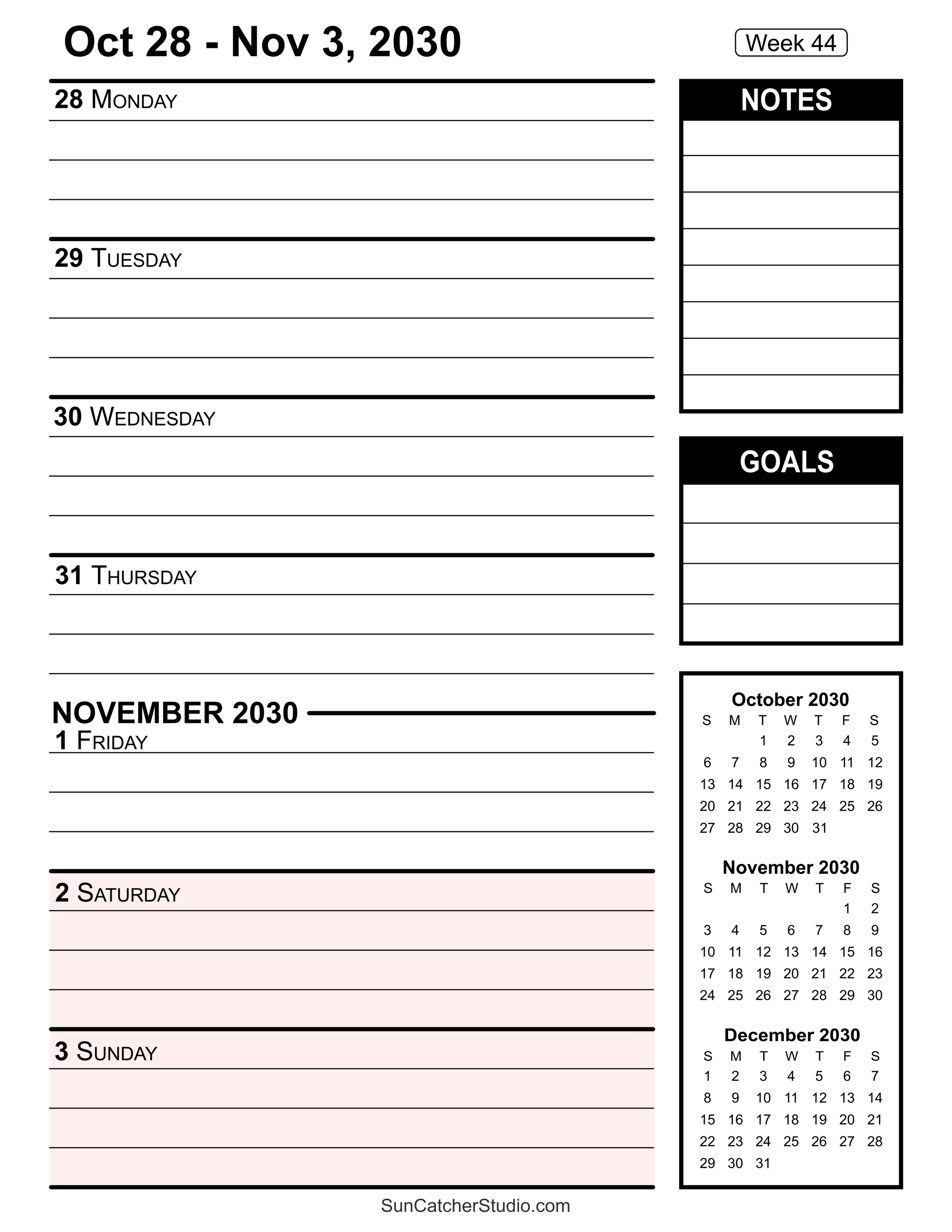 - Week 44: Oct 28 – Nov 3, 2030
