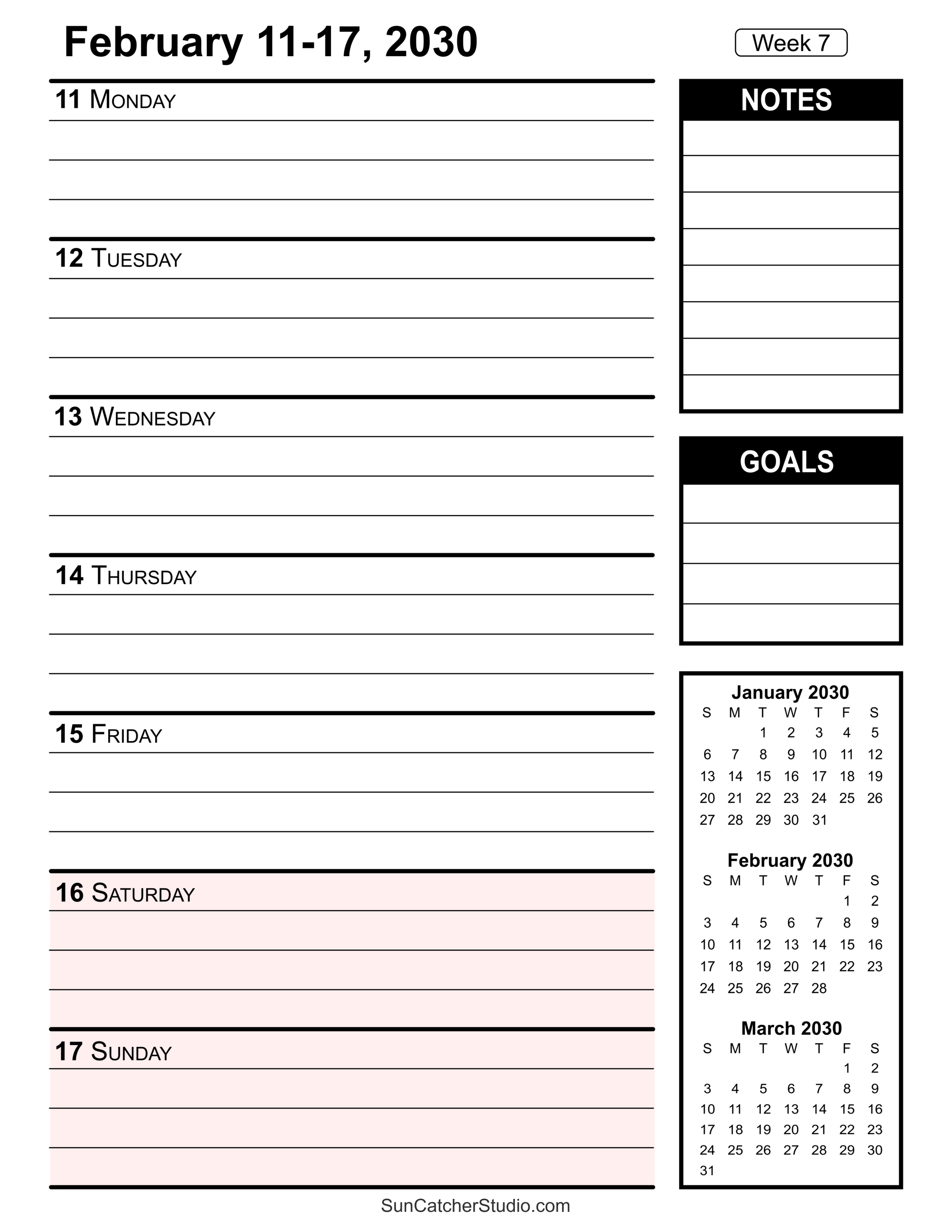Free Printable 2030 Weekly Calendars for Easy Planning