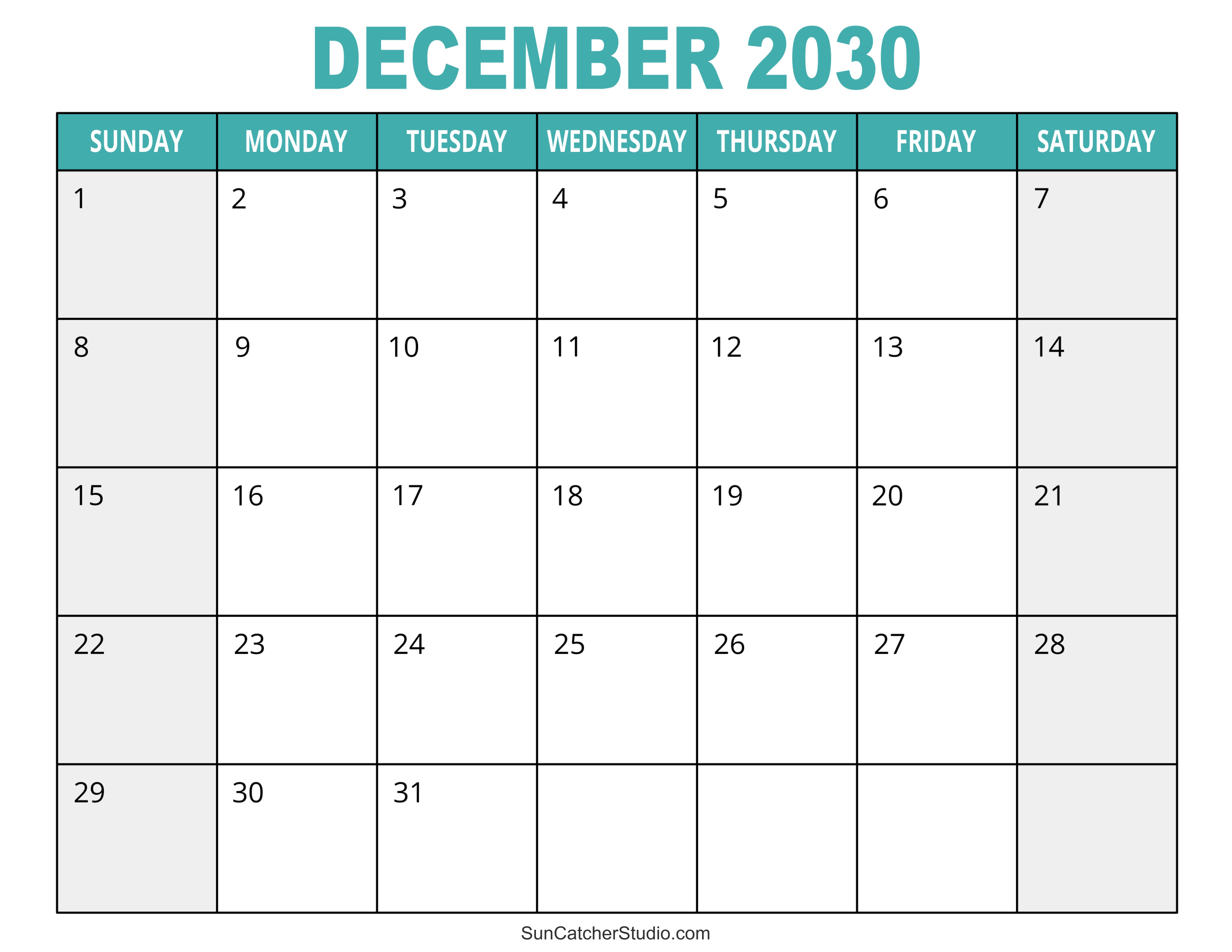 Printable December 2030 Calendar